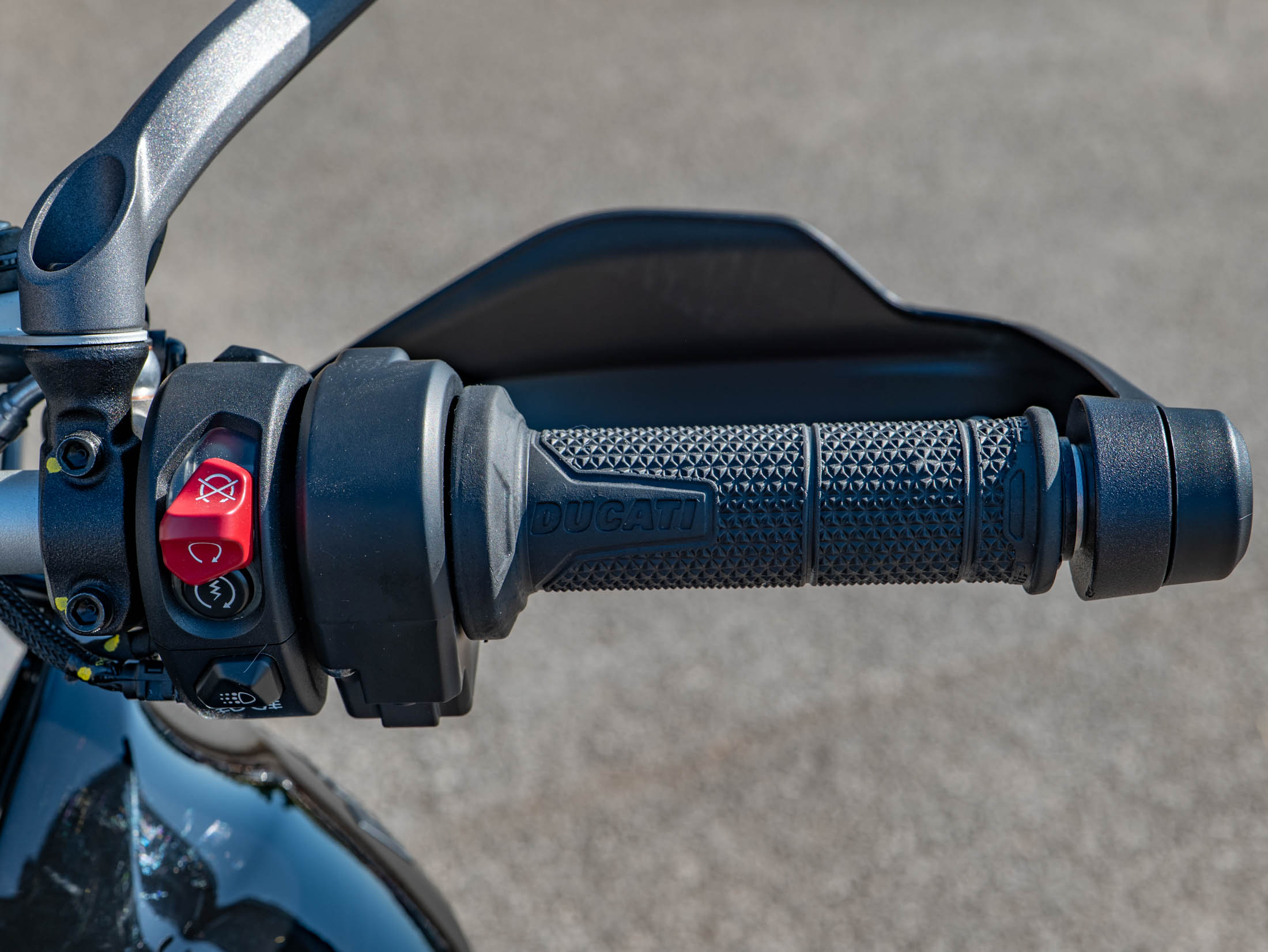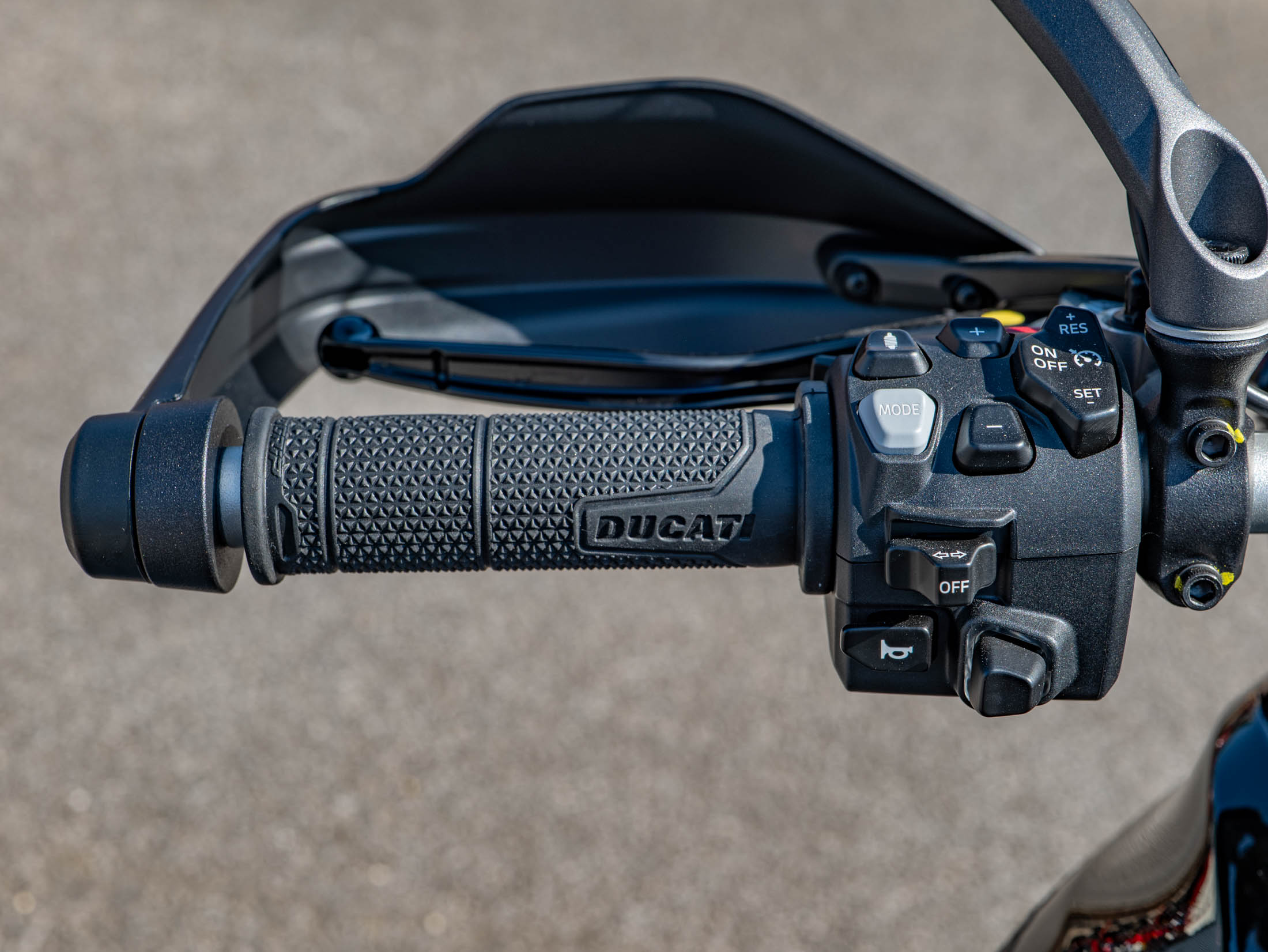 This V4 S is equipped with Ducati's innovative Full Radar system, which includes Adaptive Cruise Control (ACC) for relaxed motorway cruising and enhanced safety, along with Blind Spot Detection (BSD) for increased awareness in traffic. As an "S" model, it boasts top-tier features for supreme comfort and control, benefiting from Ducati Skyhook Suspension (DSS) EVO semi-active electronic suspension, which automatically adjusts damping for an optimal ride across varied surfaces. Seamless gear changes are handled by the Ducati Quick Shift (DQS) up/down system.