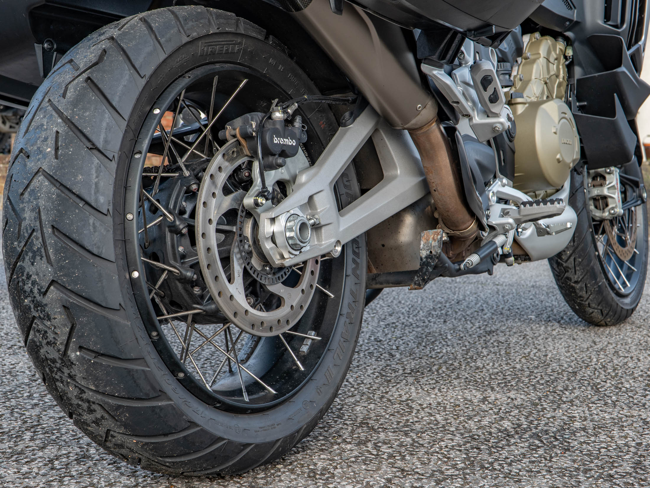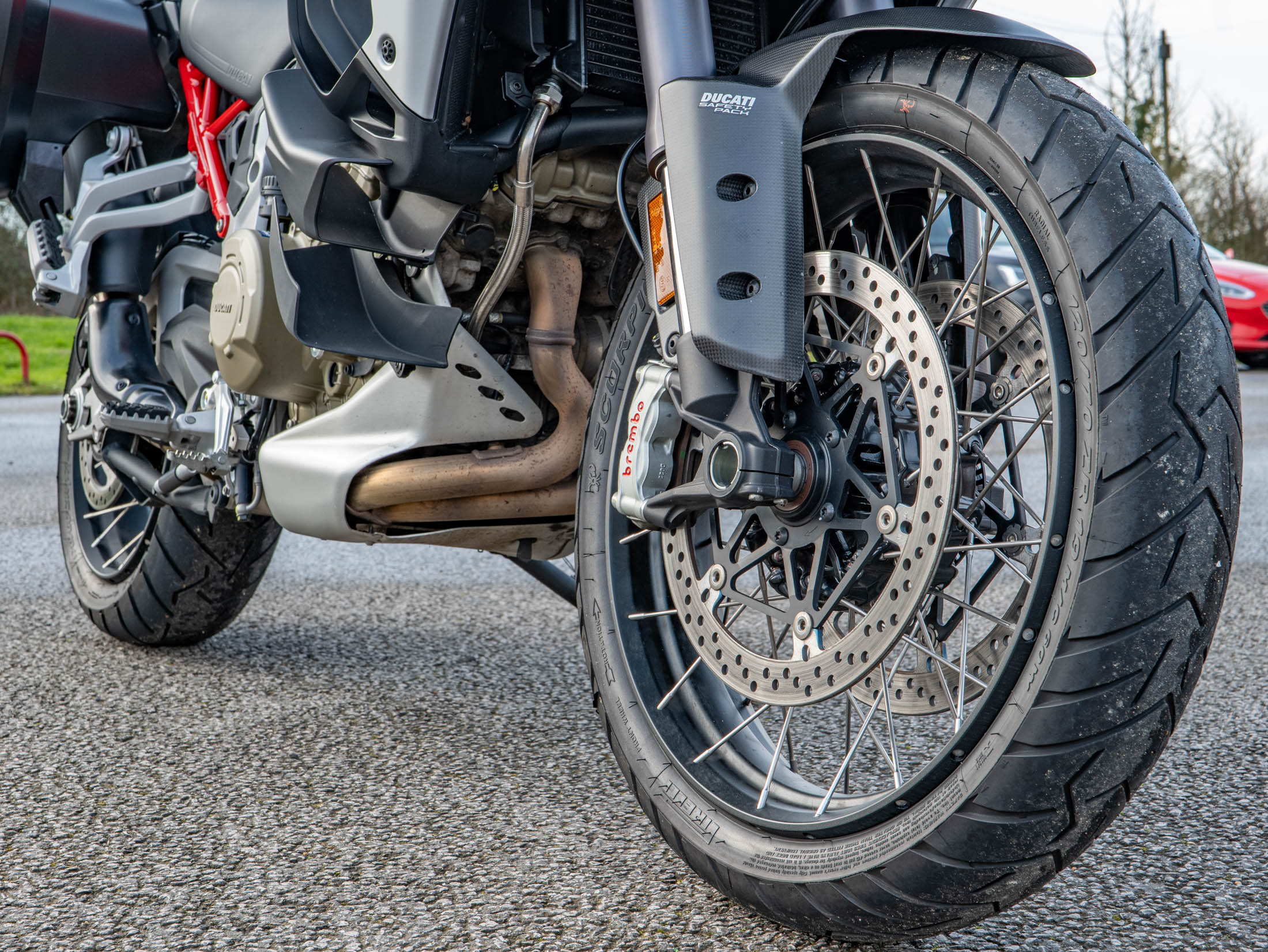 Experience the exhilarating power of the 1158cc V4 Granturismo engine, which delivers a smooth and sophisticated 170 hp. This powerplant is designed to be versatile, offering a docile nature for urban riding while providing superbike-derived performance when the road opens up. The Sport Full specification includes the road-legal Akrapovic titanium and carbon silencer, which provides a soulful mechanical bark without being intrusive on long journeys. The riding experience is defined by the semi-active Ducati Skyhook Suspension, which adjusts in real-time to road conditions and luggage loads, ensuring a plush yet controlled ride through any mountain pass or motorway stretch.