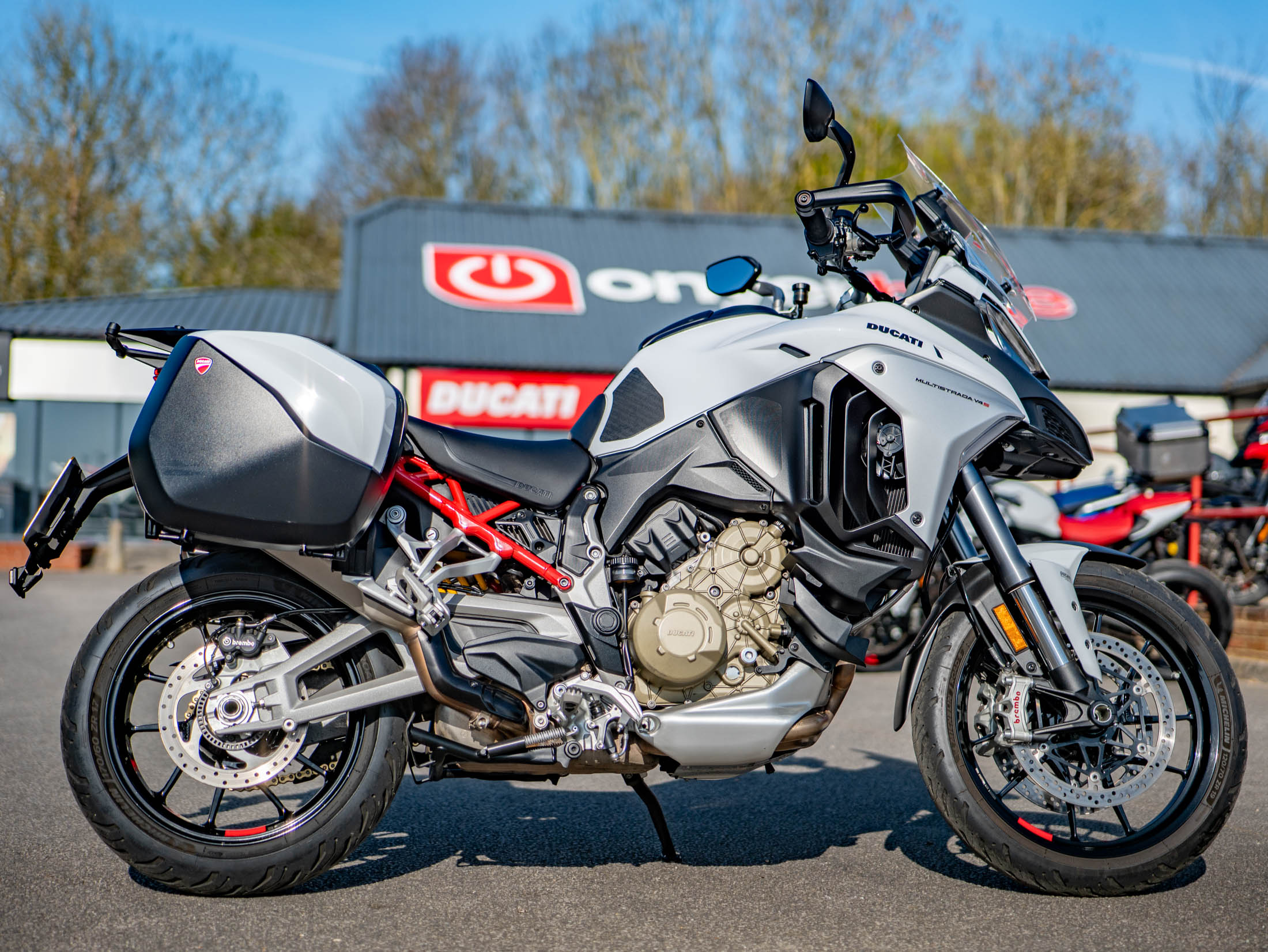 Located near Aylesbury, On Yer Bike / Ducati Aylesbury provides this Multistrada V4 S with a comprehensive pre-delivery inspection. We offer professional, secure delivery to any mainland UK address and a range of competitive finance packages. This 170 hp V4 S is a great example of Ducati’s flagship tourer. Contact our team today to arrange a viewing.