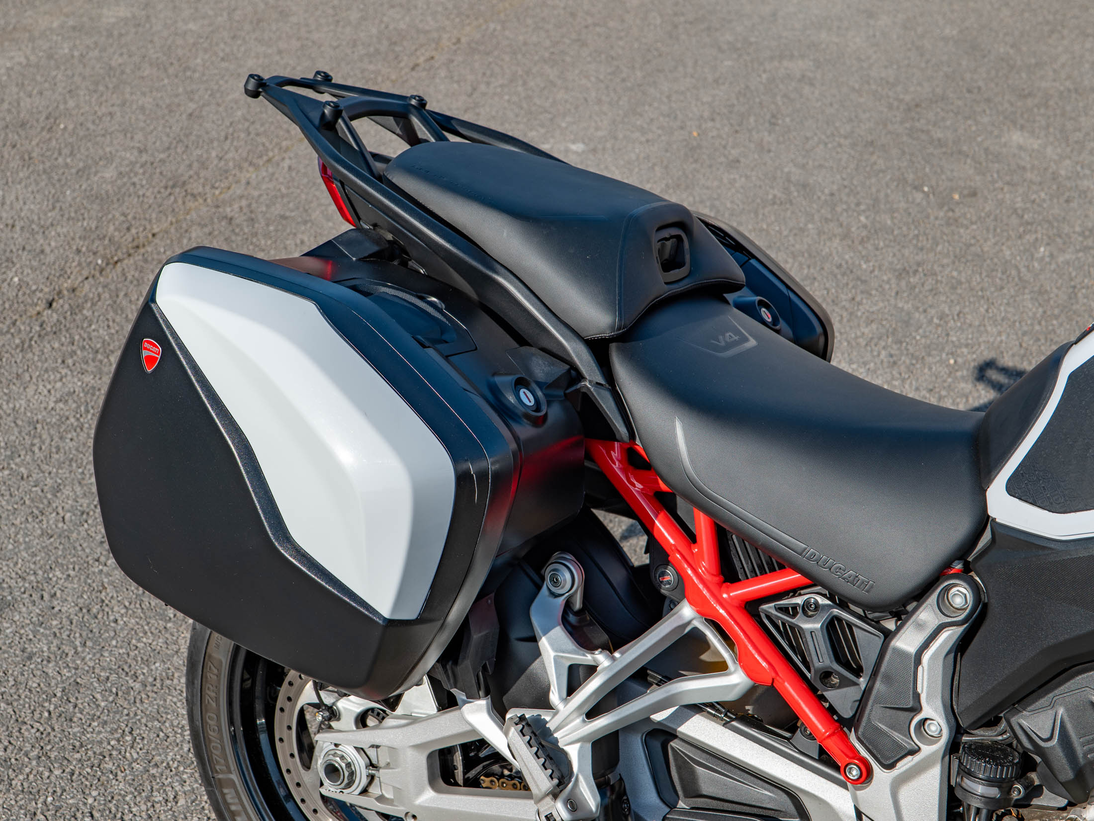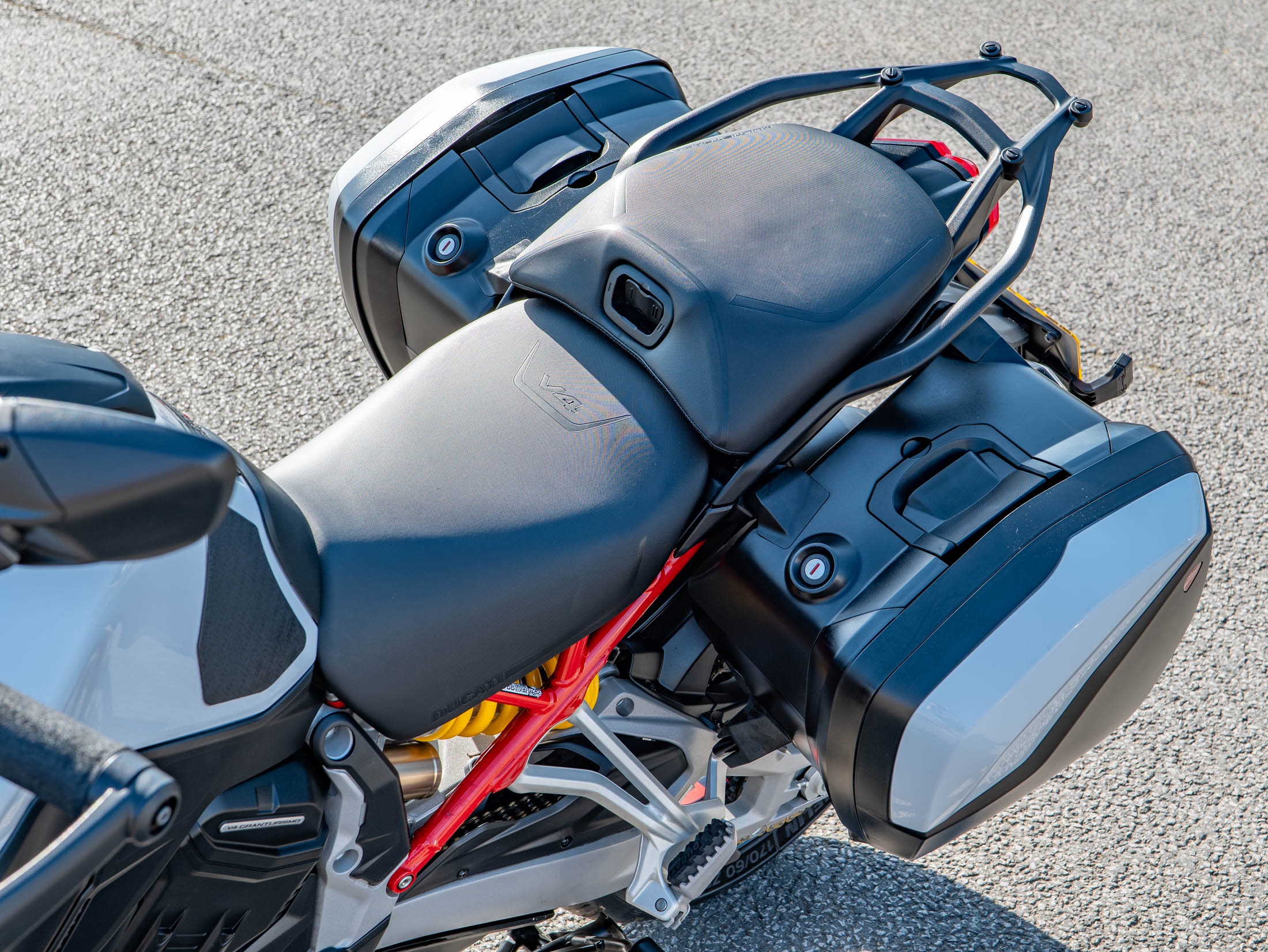 The heart of this continent-crosser is the revolutionary 1,158cc V4 Granturismo engine, delivering a class-leading 170 hp. Known for its smooth power delivery and massive 60,000 km valve clearance intervals, this 170 hp powerplant makes the V4 S as practical as it is exhilarating. The "Travel & Radar" package equips the bike with factory-fitted front and rear radar sensors, enabling Adaptive Cruise Control and Blind Spot Detection, ensuring you stay safe and relaxed on the longest journeys.