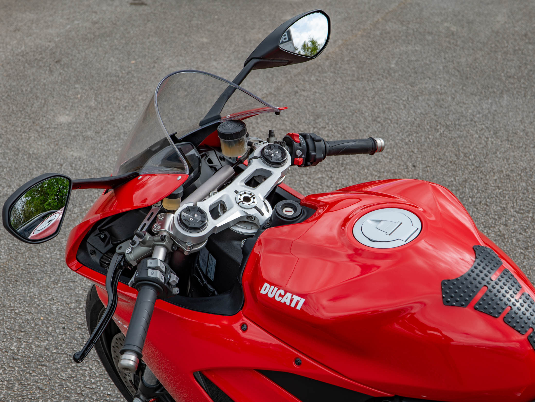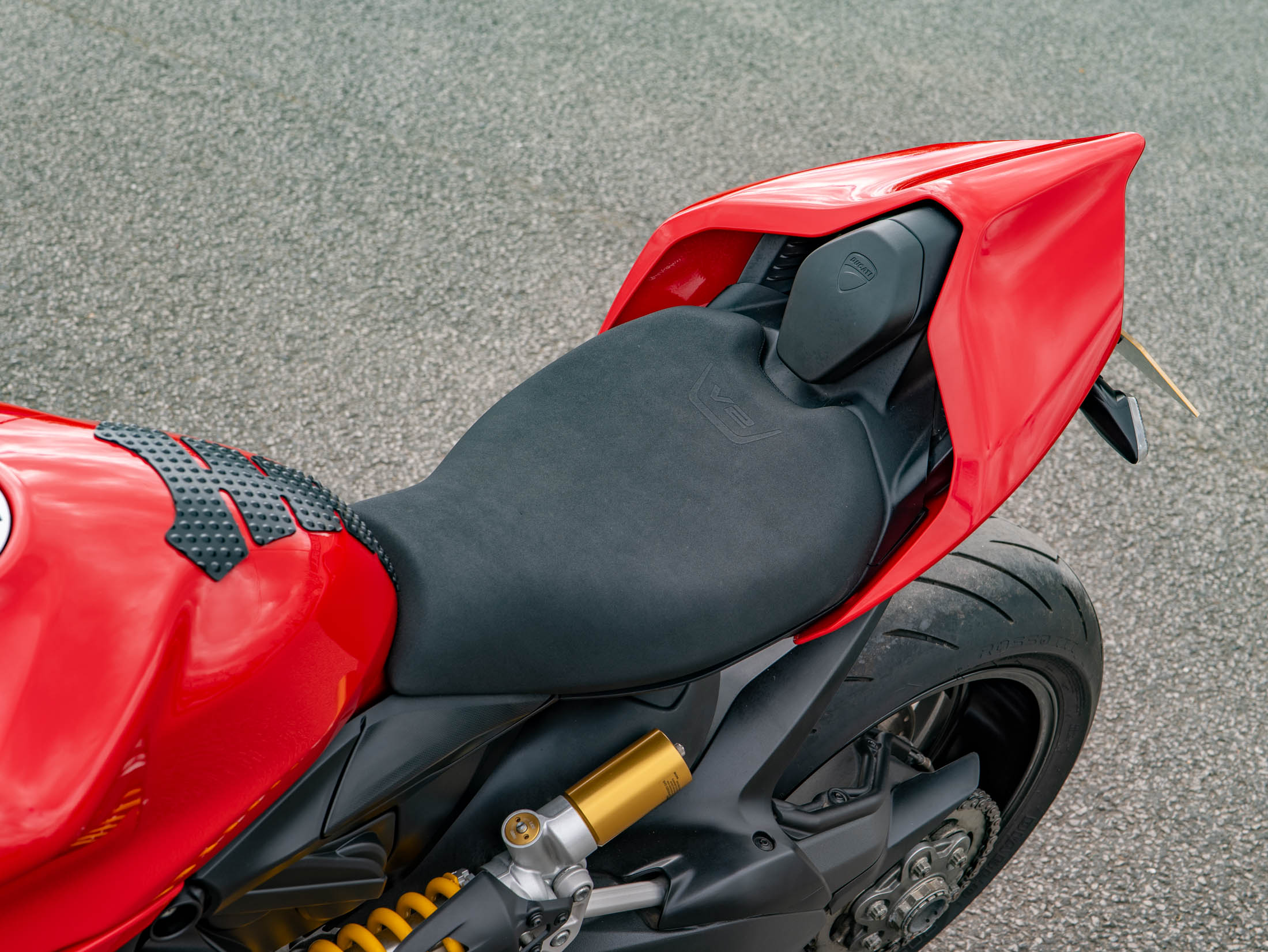 The technology on this 2020 Ducati Panigale V2 is extensive, featuring a 6-axis IMU that manages cornering ABS, traction control, and wheelie control. This specific example comes fitted with a bi-directional quickshifter for lightning-fast gear changes and a factory steering damper for added stability at speed. Practical additions like a tank pad and a sleek seat cowl enhance both the protection and the aggressive silhouette of the 155 hp machine.