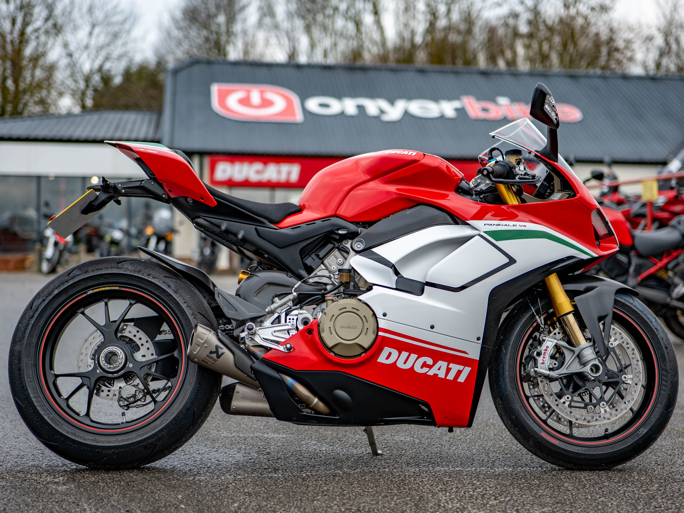 Now available is this truly stunning and highly collectible 2019 Ducati Panigale V4 Speciale, a limited-edition model of which only 1,500 were produced worldwide. This exceptional machine is officially numbered 1141 of 1500 and is finished in the distinctive Tricolore Livery, a blend of Ducati Red, White, and Green. It is further enhanced by a desirable Private Registration Plate (Y19PAN). This is a superb example of one of the most significant superbikes of the decade.
