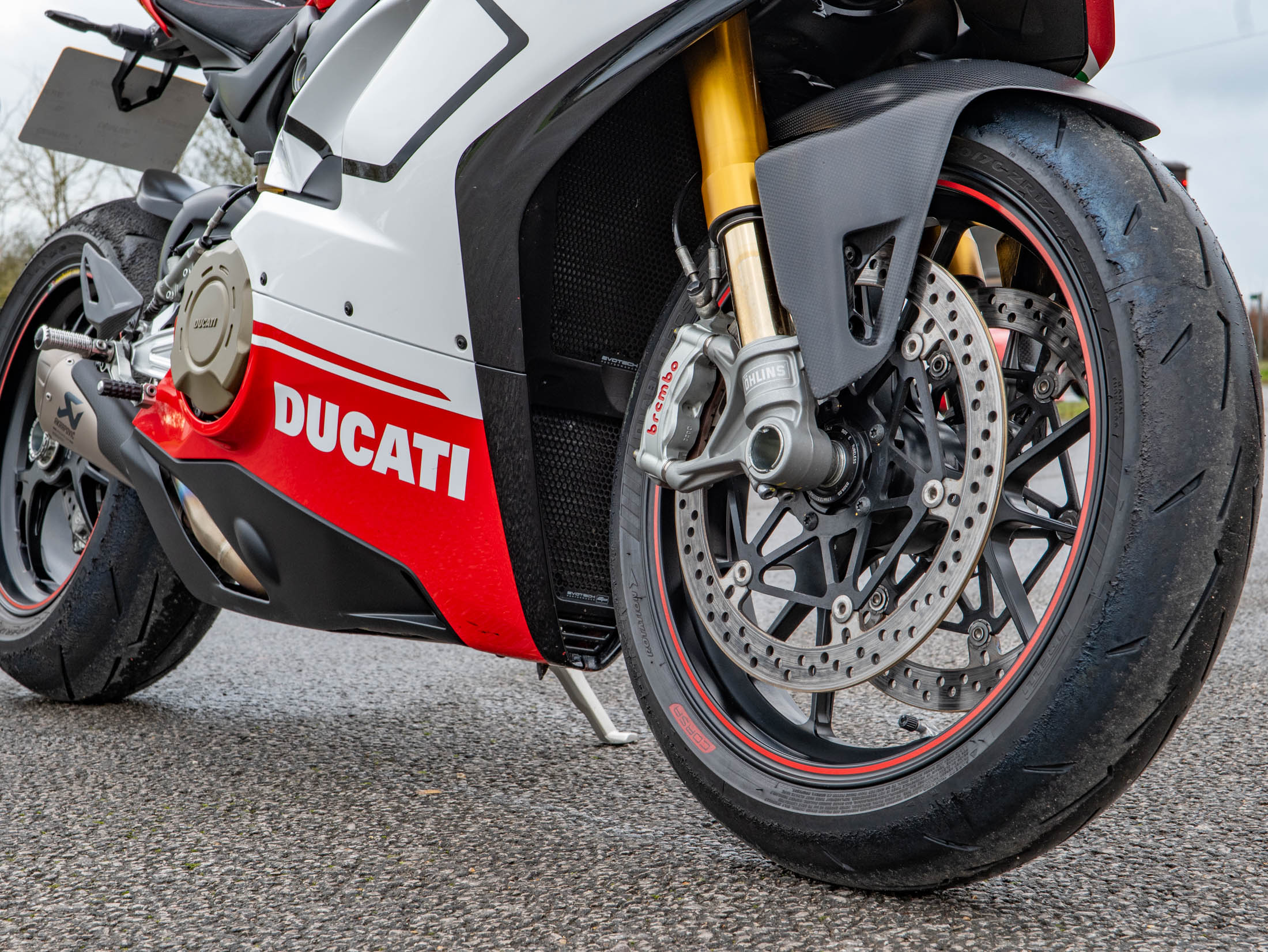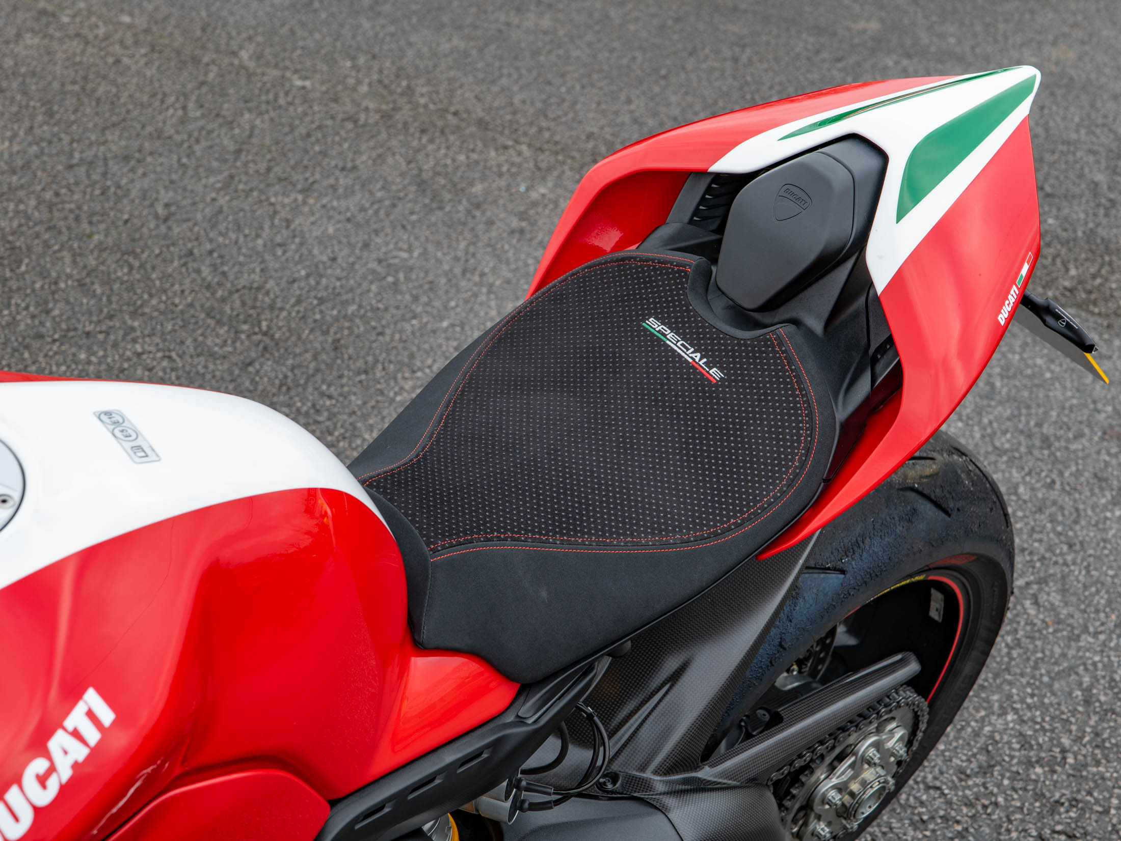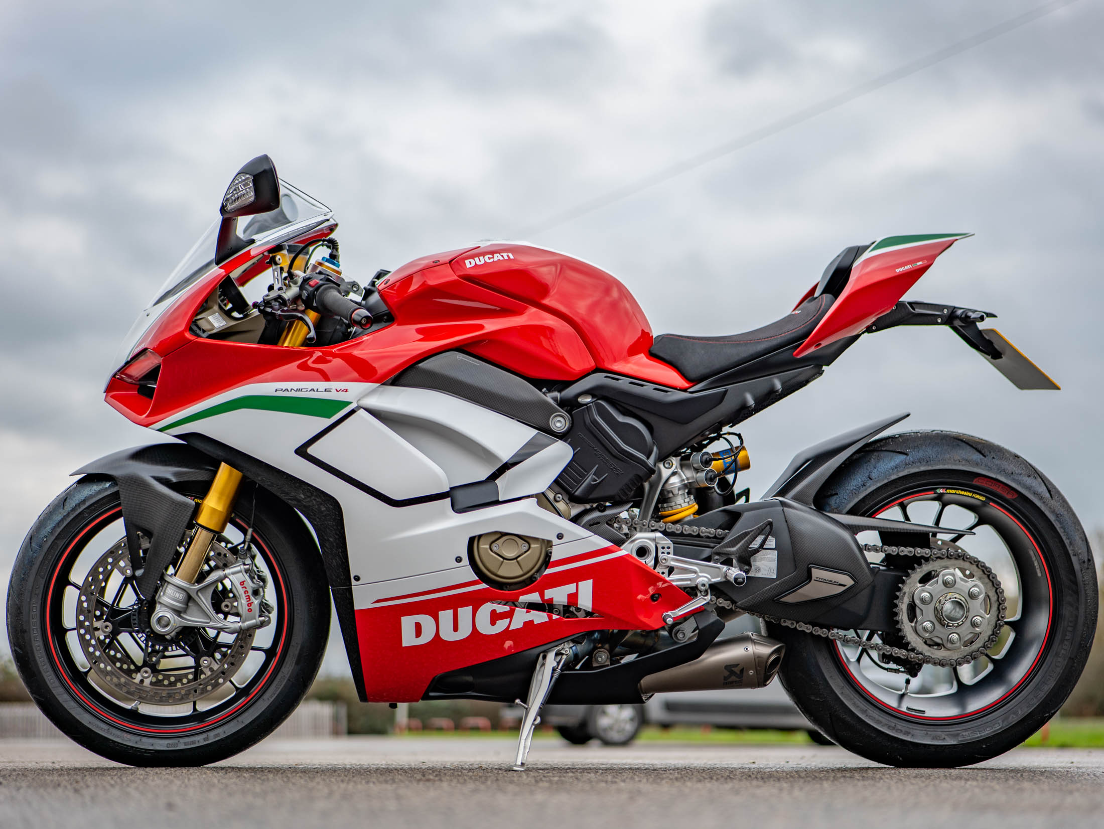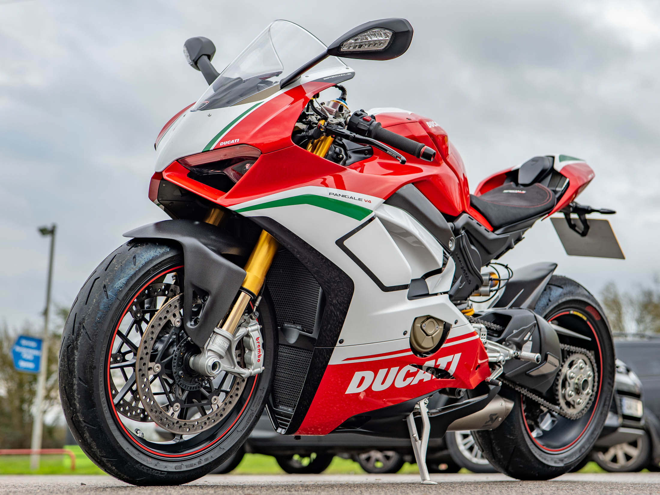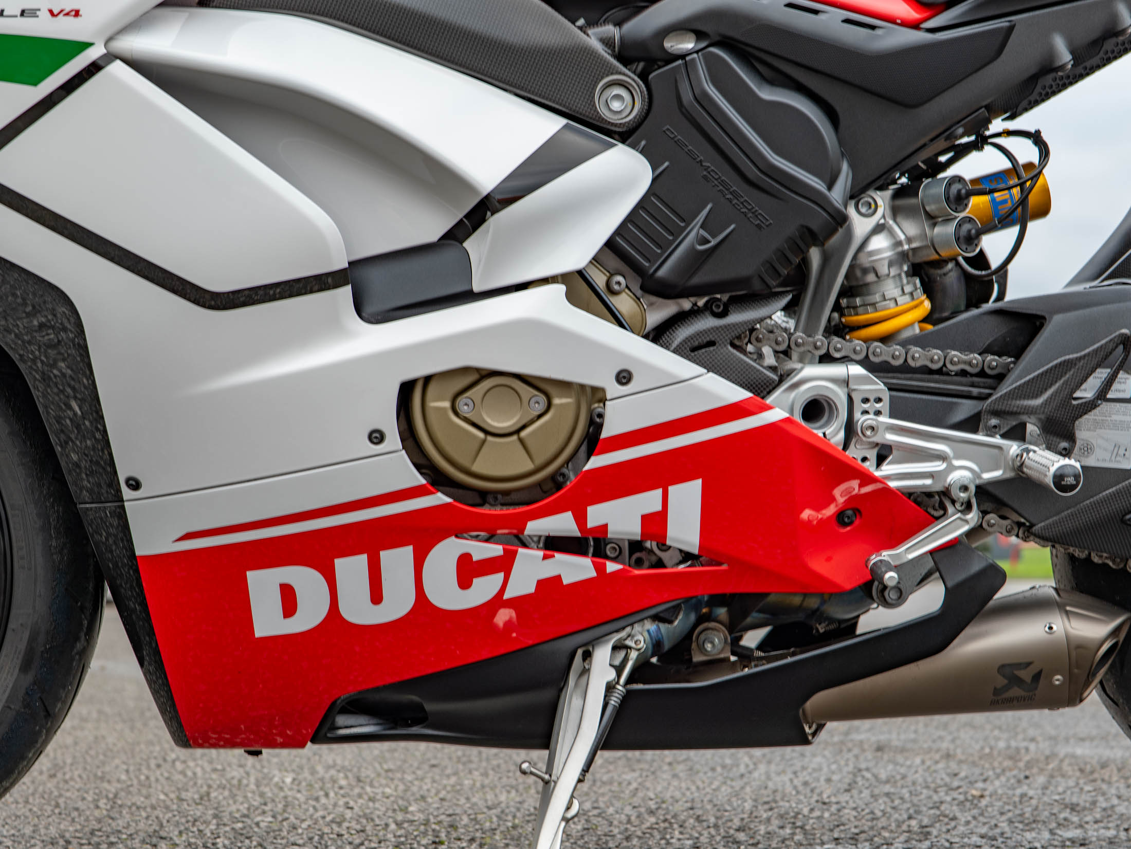 The heart of this machine is the potent 1103 cc Desmosedici Stradale V4 engine. Fitted as standard on the Speciale, the Akrapovič Full Titanium Performance Exhaust system releases the engine's full potential, delivering a breathtaking 226 hp and an intoxicating soundtrack. The Speciale specification includes Öhlins electronic suspension, and the full suite of Ducati's advanced electronics, including Cornering ABS, Traction Control (DTC) EVO, and Wheelie Control (DWC) EVO.