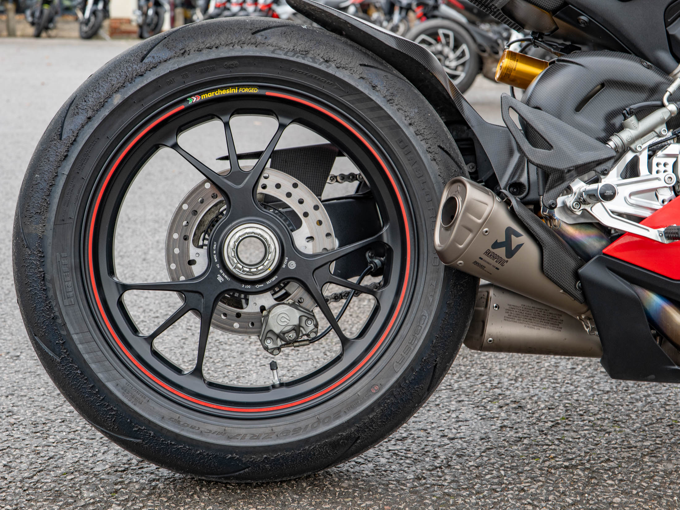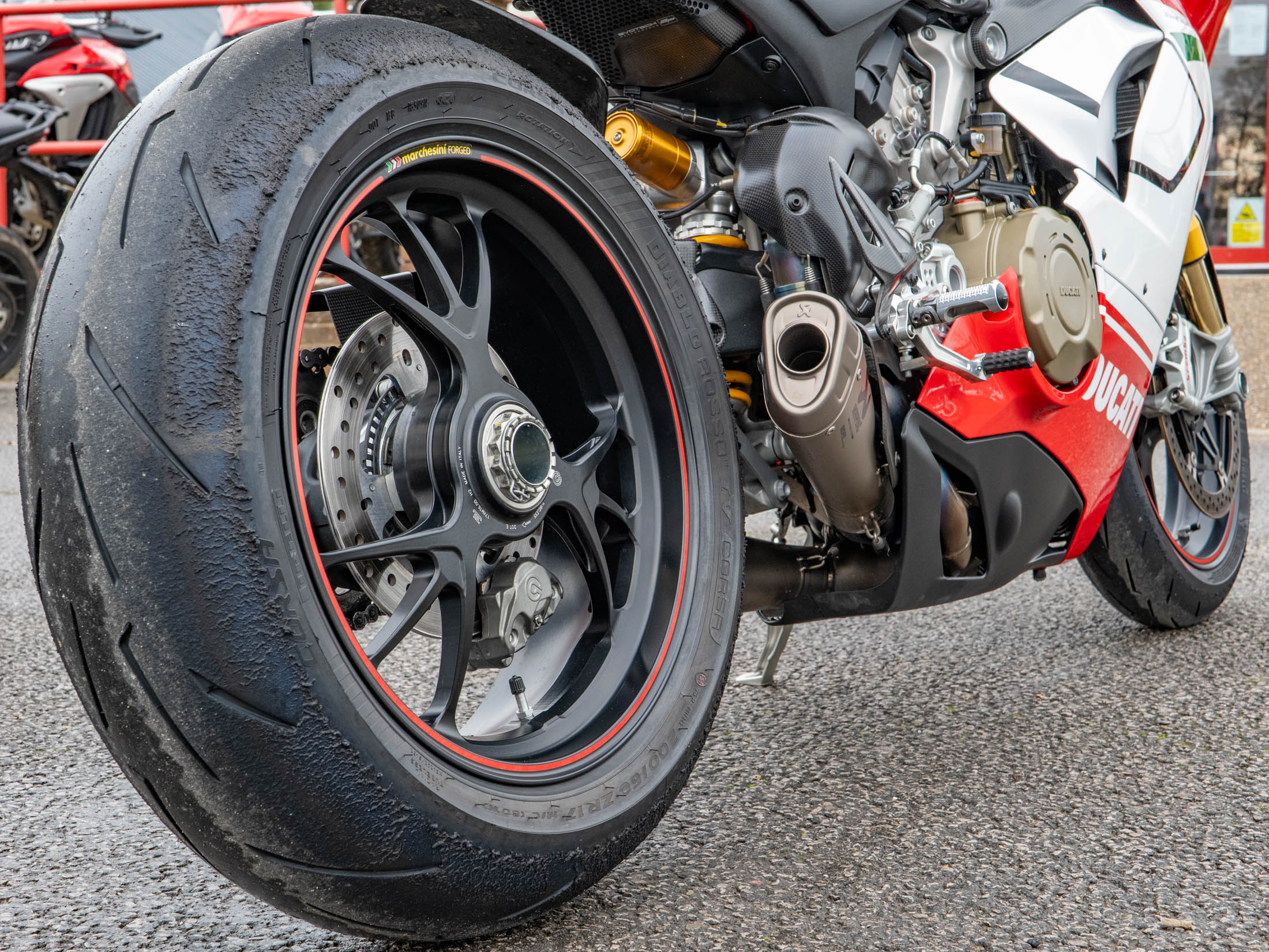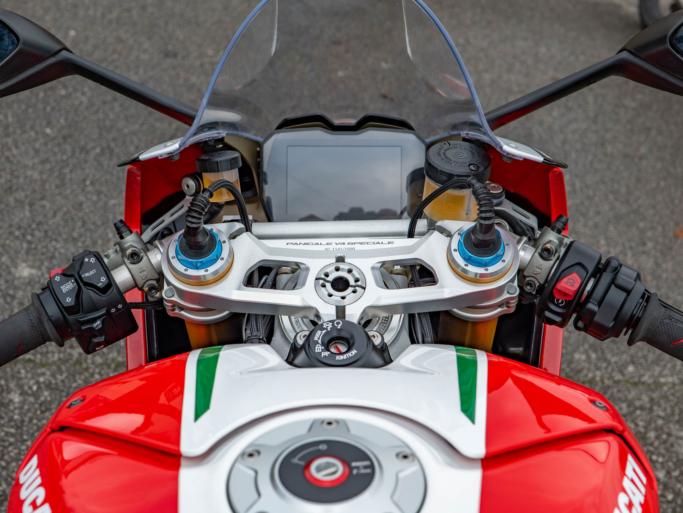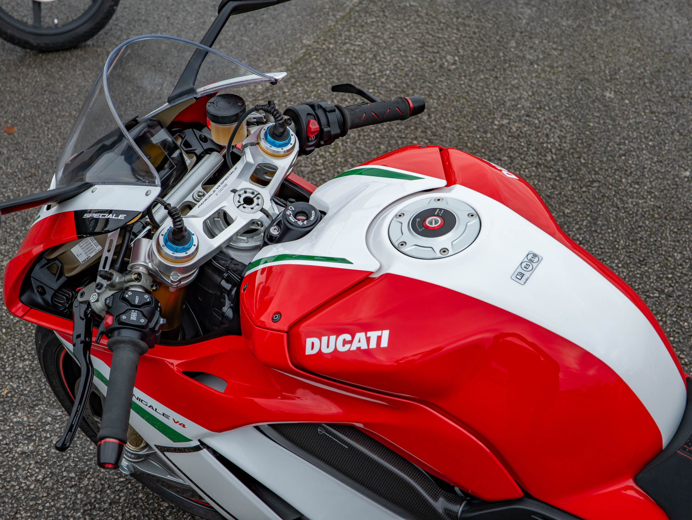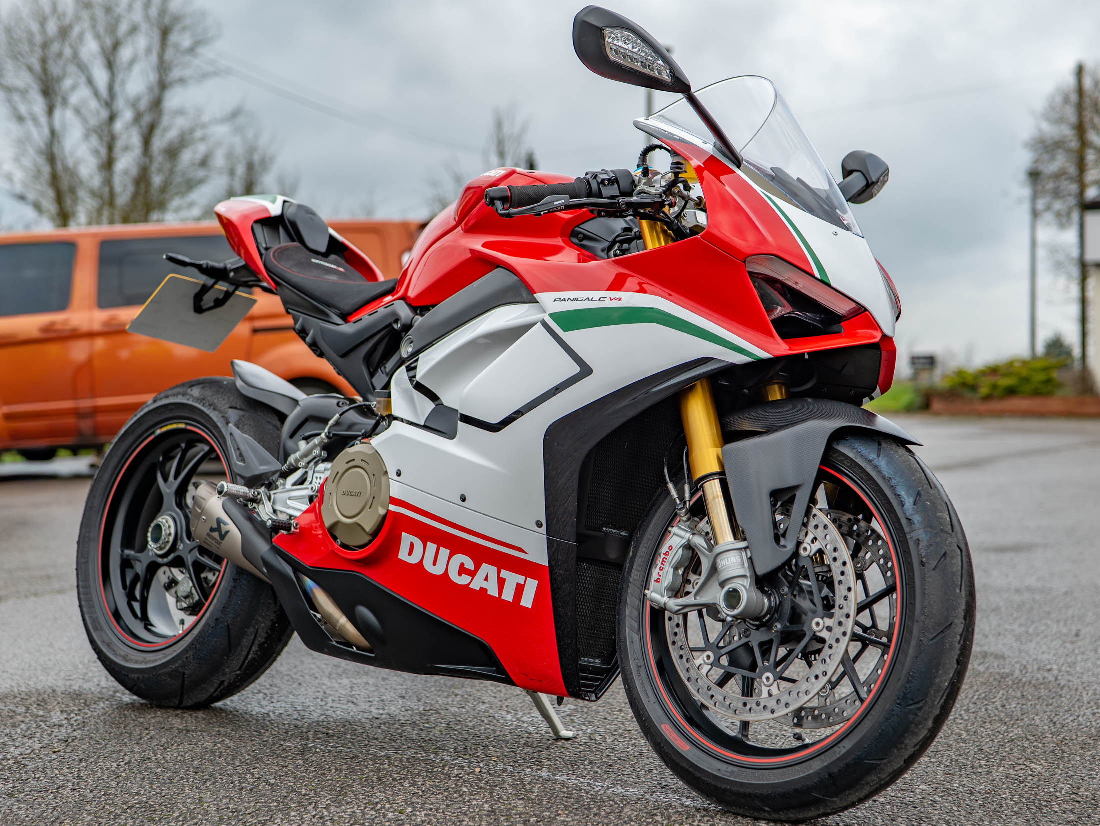 The heart of this machine is the potent 1103 cc Desmosedici Stradale V4 engine. Fitted as standard on the Speciale, the Akrapovič Full Titanium Performance Exhaust system releases the engine's full potential, delivering a breathtaking 226 hp and an intoxicating soundtrack. The Speciale specification includes Öhlins electronic suspension, and the full suite of Ducati's advanced electronics, including Cornering ABS, Traction Control (DTC) EVO, and Wheelie Control (DWC) EVO.