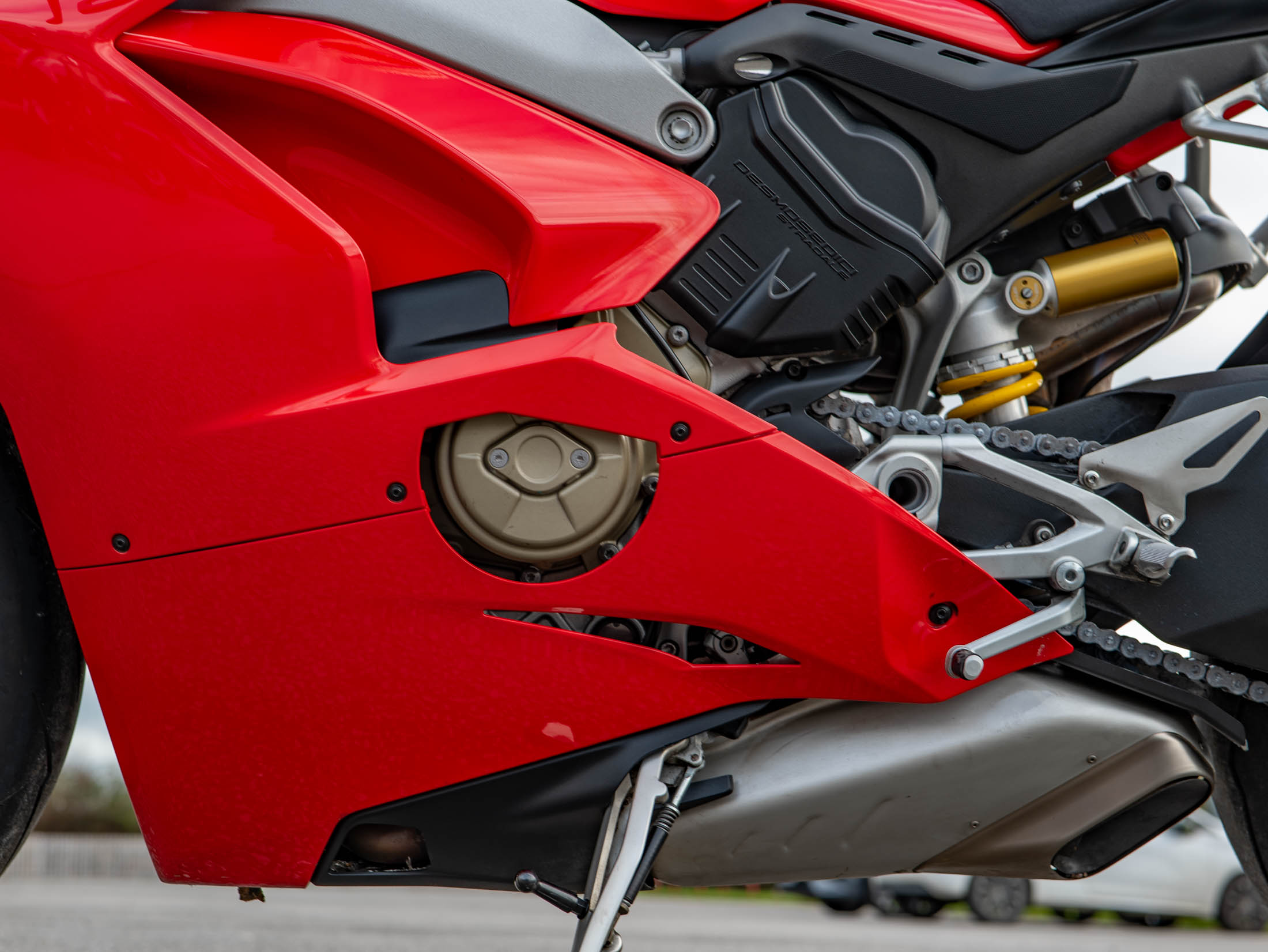 The Panigale V4 is propelled by the exhilarating, liquid-cooled 1103cc Desmosedici Stradale V4 engine, which unleashes a devastating 214 hp through a precise six-speed manual transmission. This engine is renowned for its incredible sound, immense torque, and race-bred performance, making it one of the most capable and visceral superbikes on the road. The bike features a full suite of cutting-edge electronics, including Cornering ABS, multi-level Traction Control (DTC EVO), multiple selectable Riding Modes, and the lightning-fast bi-directional Quickshifter (DQS EVO).