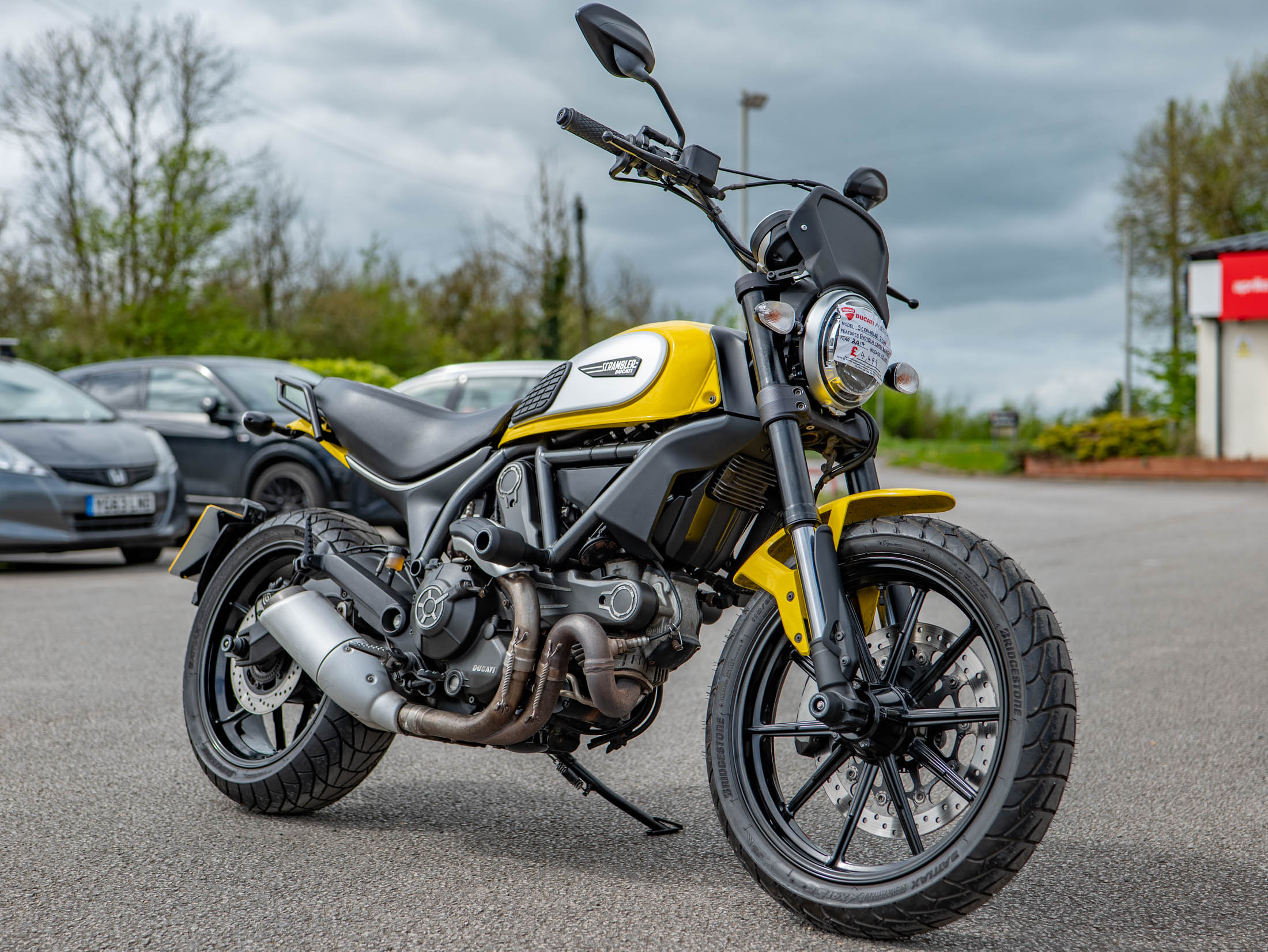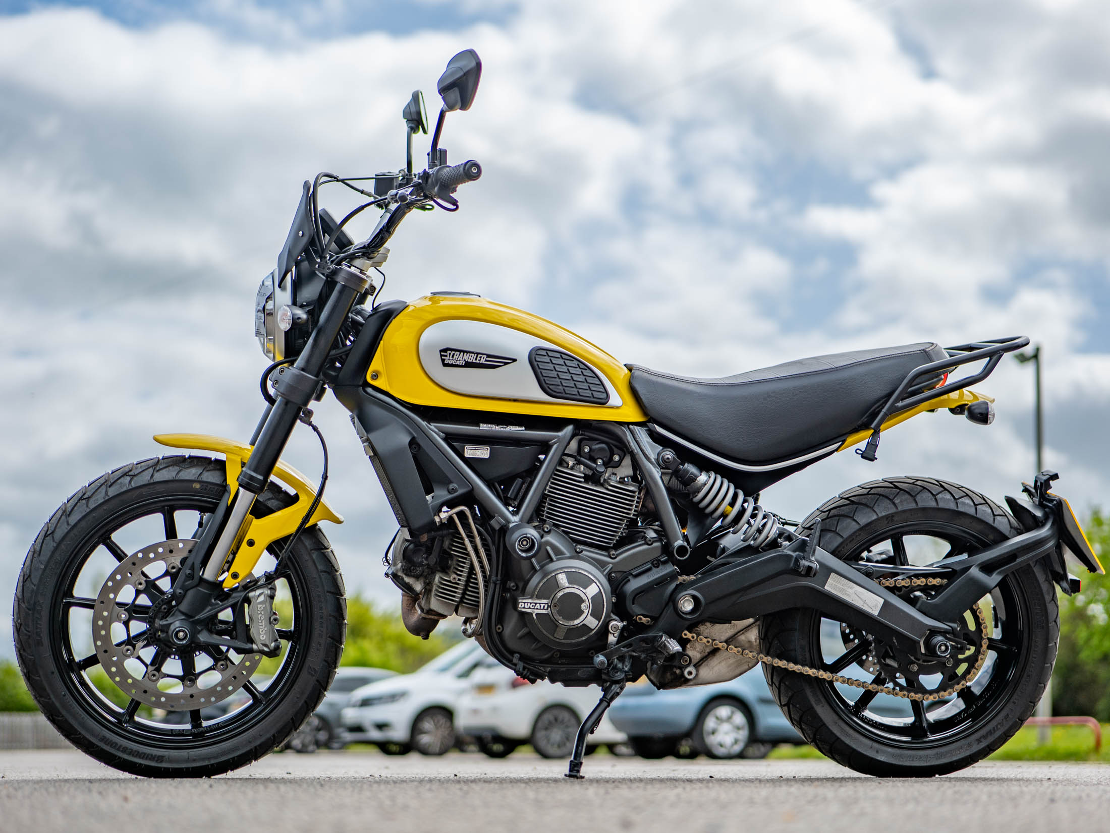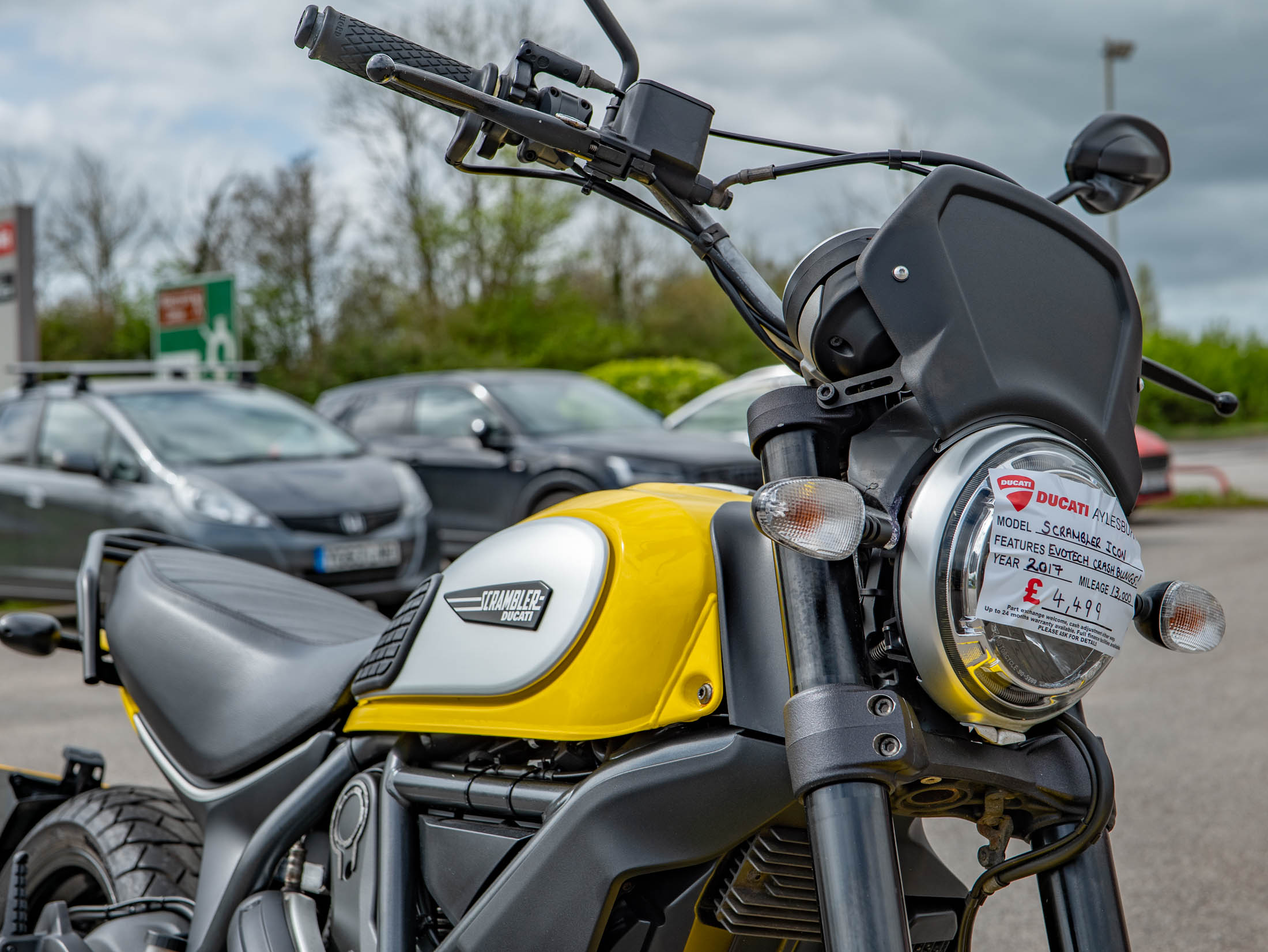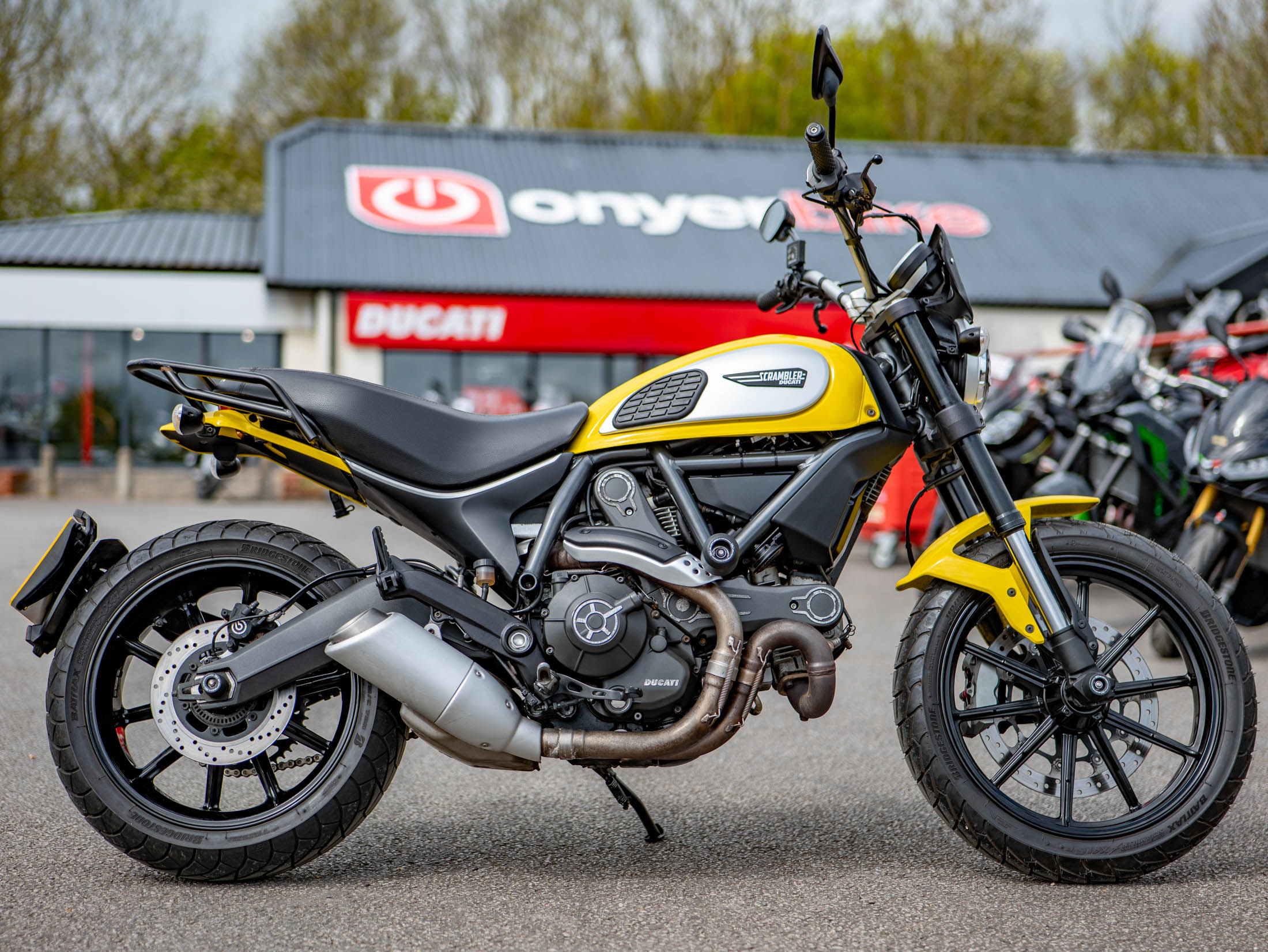The 2017 Ducati Scrambler Icon delivers a punchy 73 hp at On Yer Bike / Ducati Aylesbury. This 803cc air-cooled engine is famous for its smooth power delivery and iconic desmodromic sound, providing 73 hp that feels urgent and engaging across the rev range. This particular example has been well-equipped for the practical rider, featuring multi-stage heated grips for year-round comfort and a subtle fly screen to improve wind protection during motorway stints.
