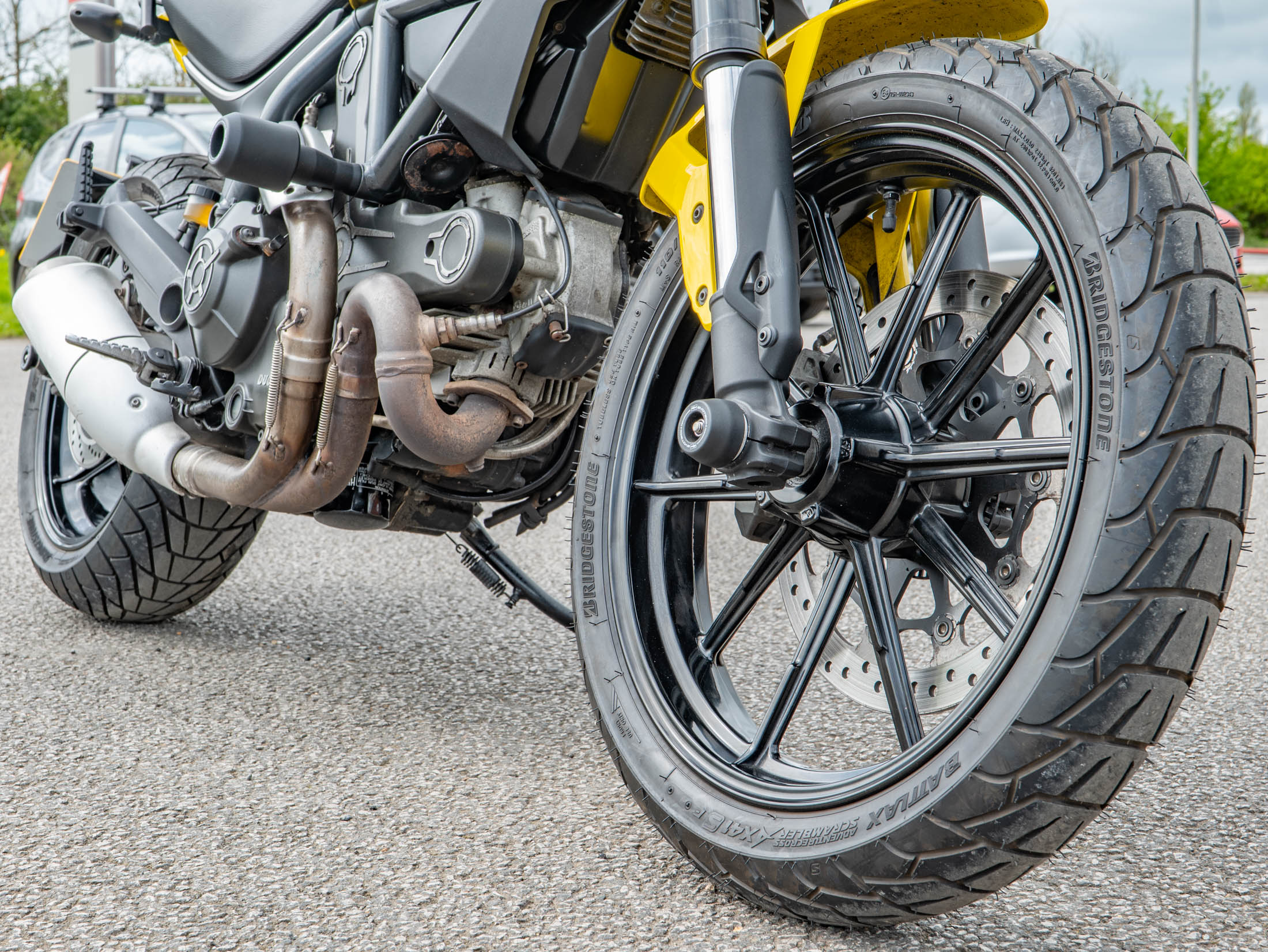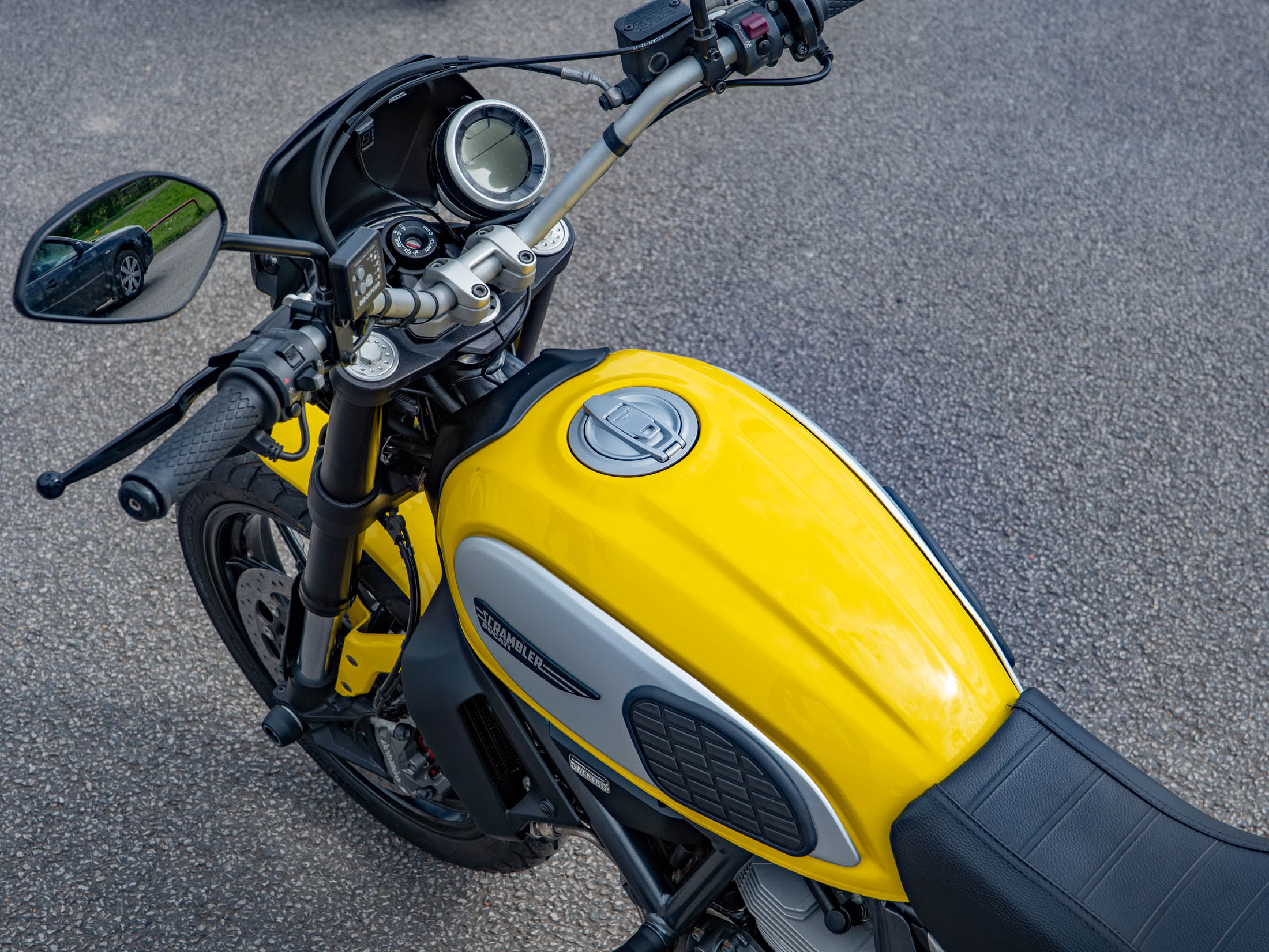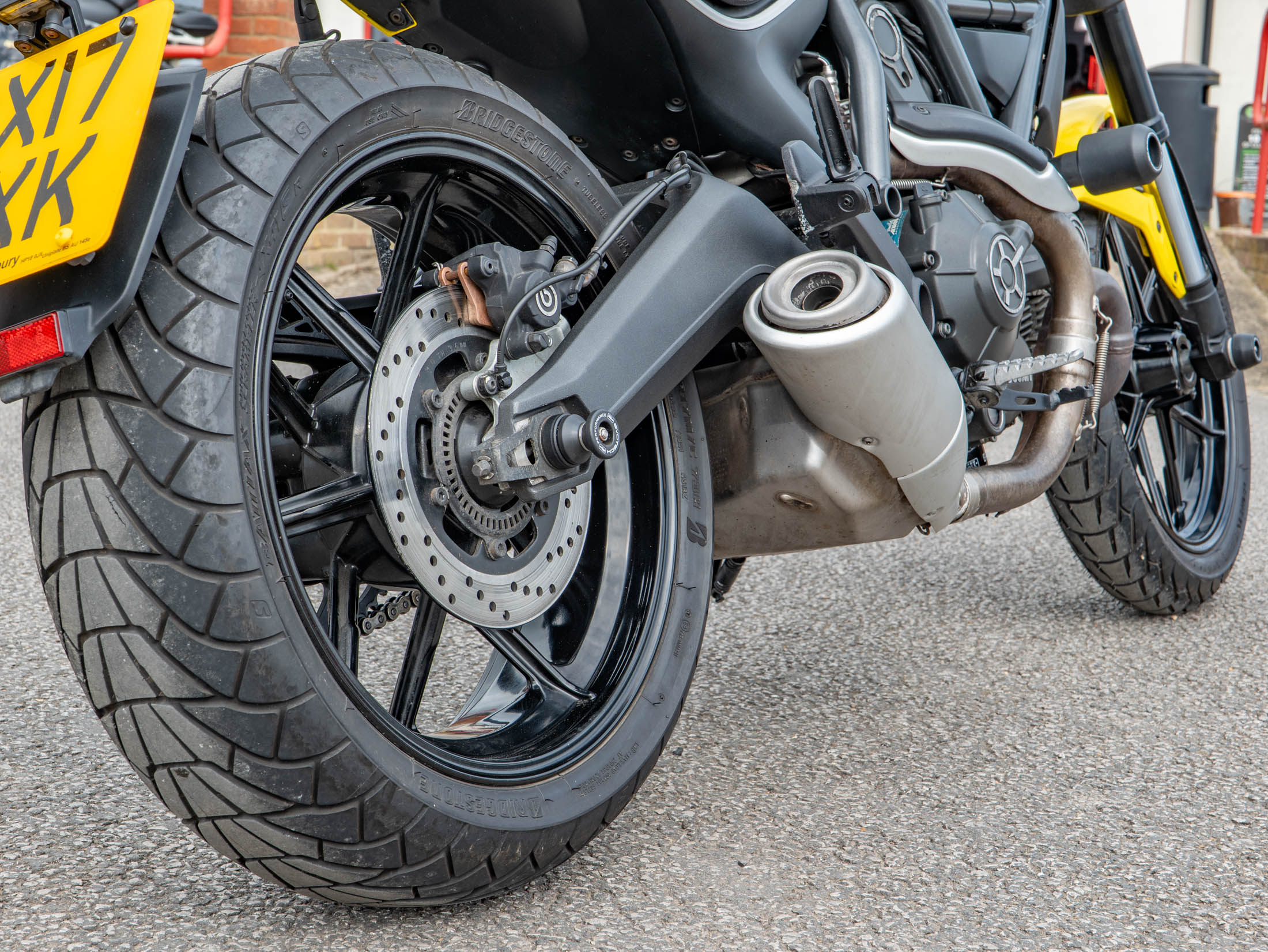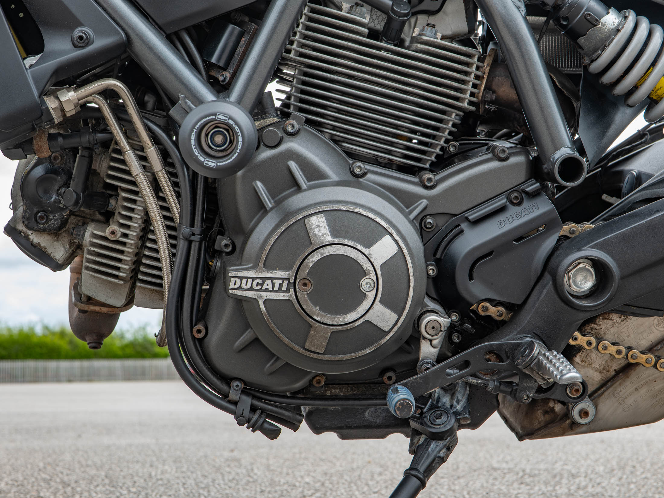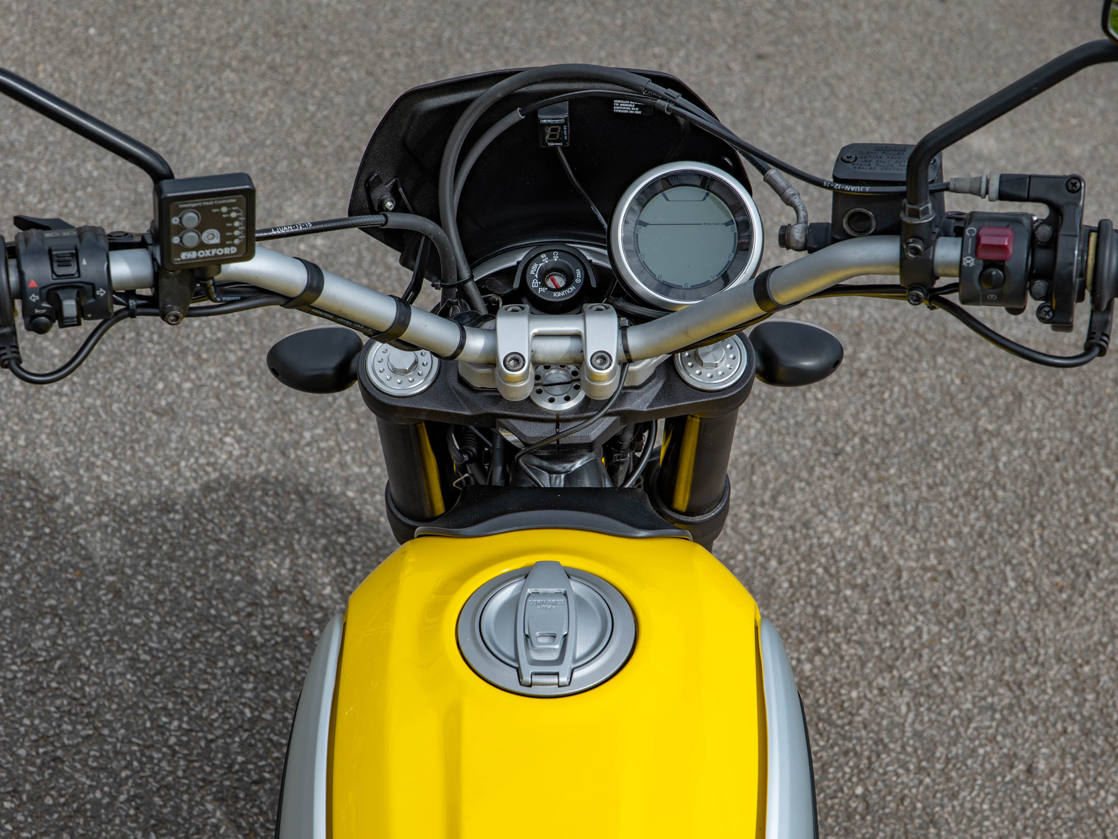 The 2017 Ducati Scrambler Icon delivers a punchy 73 hp at On Yer Bike / Ducati Aylesbury. This 803cc air-cooled engine is famous for its smooth power delivery and iconic desmodromic sound, providing 73 hp that feels urgent and engaging across the rev range. This particular example has been well-equipped for the practical rider, featuring multi-stage heated grips for year-round comfort and a subtle fly screen to improve wind protection during motorway stints.