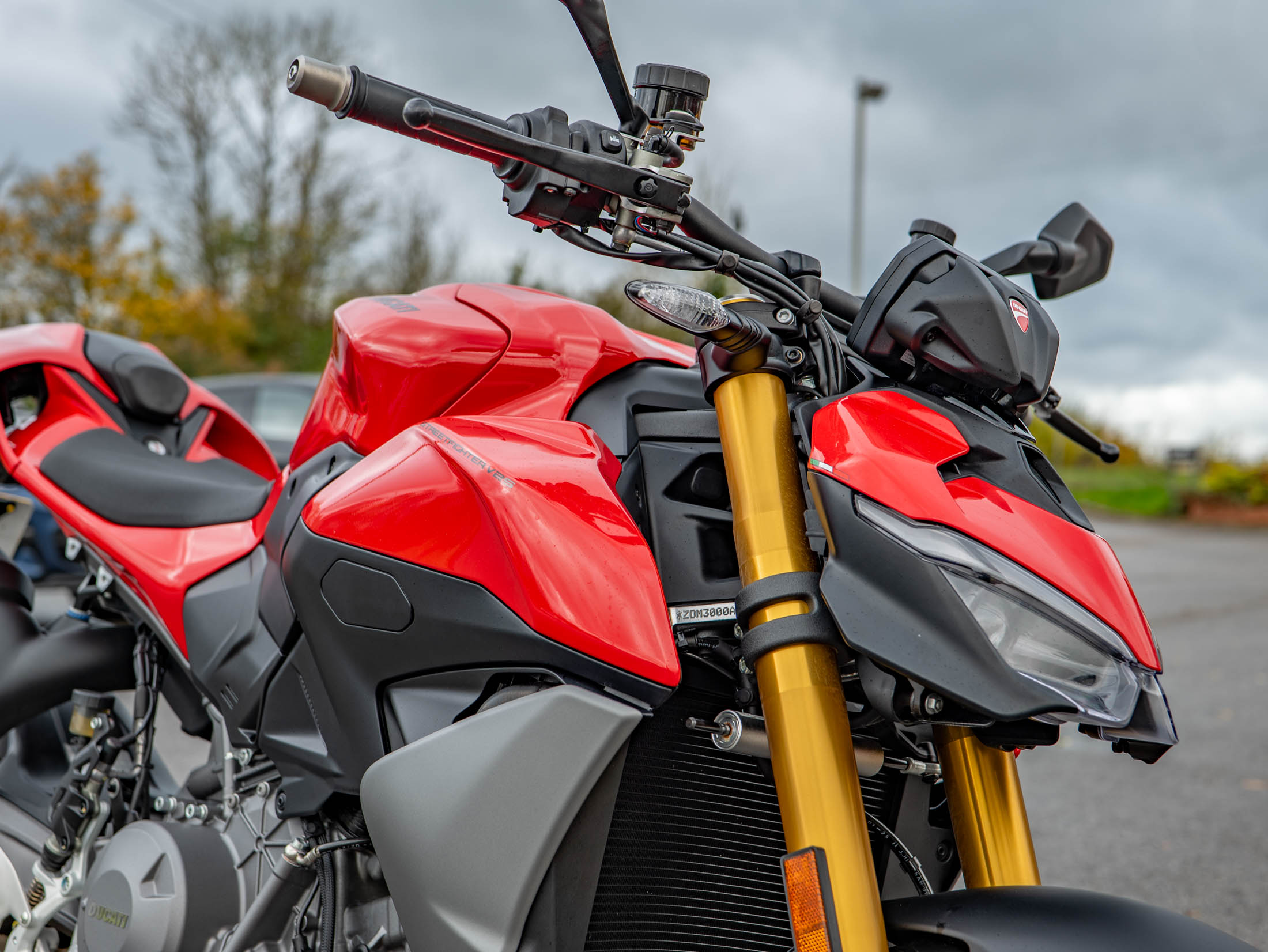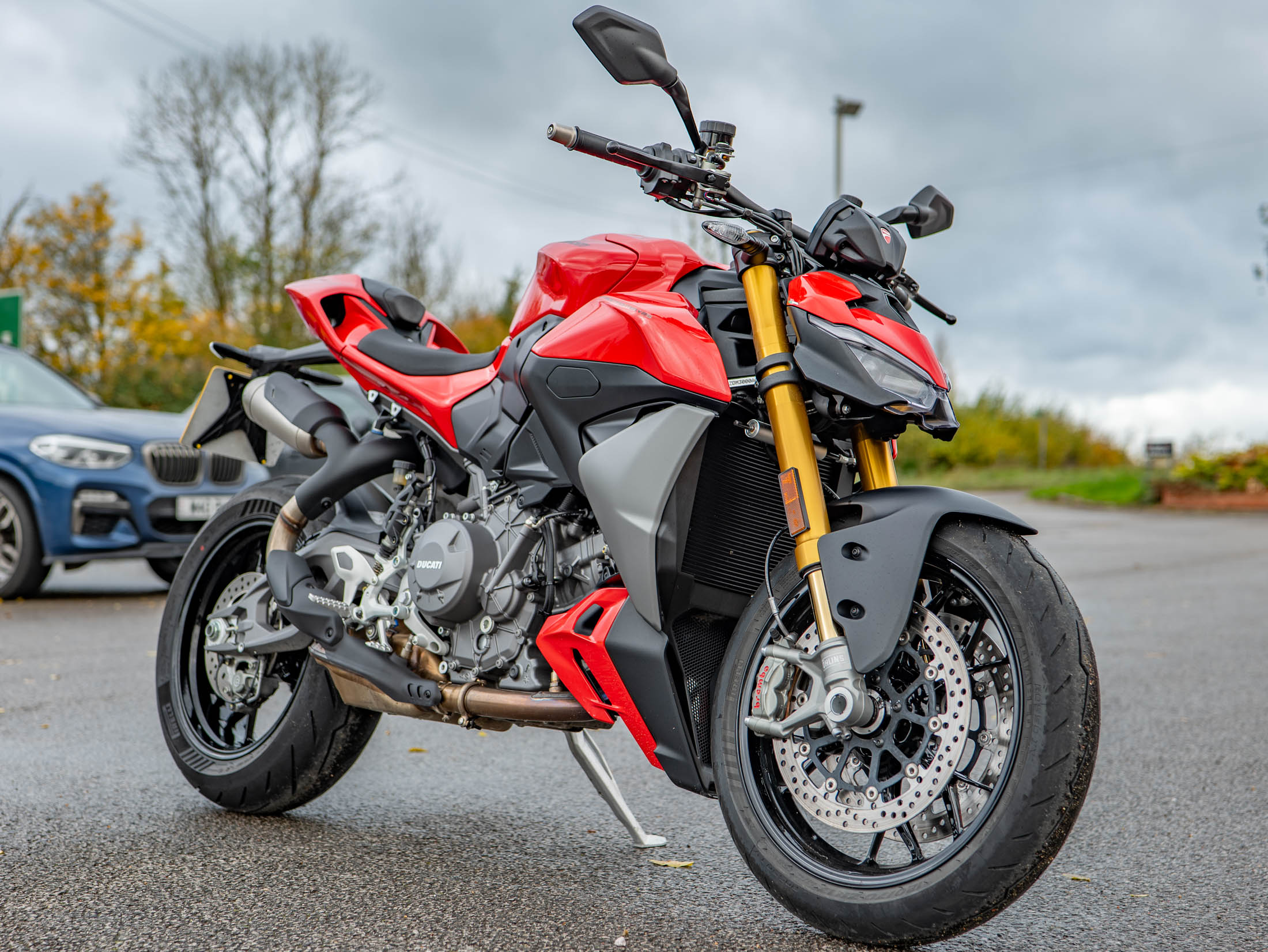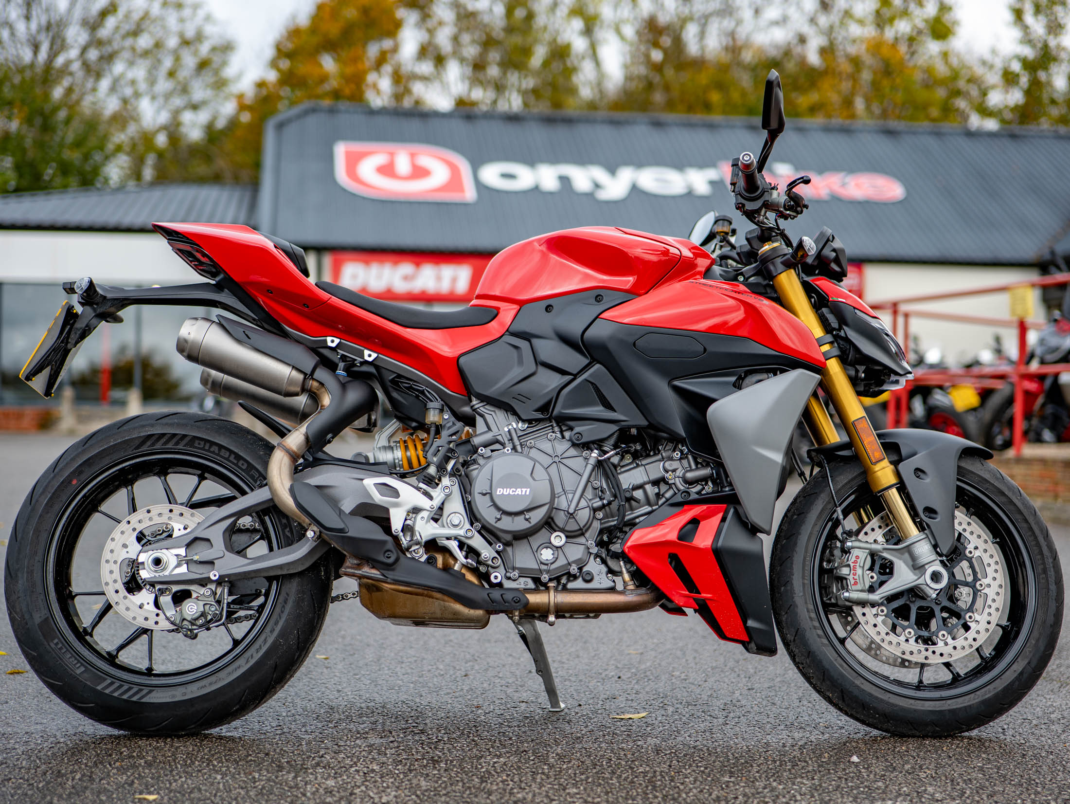 This is an exceptional opportunity to acquire a barely used, high-specification EX-DEMO Ducati Streetfighter V2 S. This potent 2025 '25 Reg machine, finished in the iconic Ducati Red, perfectly embodies the "Fight Formula" with its aggressive, stripped-back styling and the heart of a Panigale V2.... READ MORE