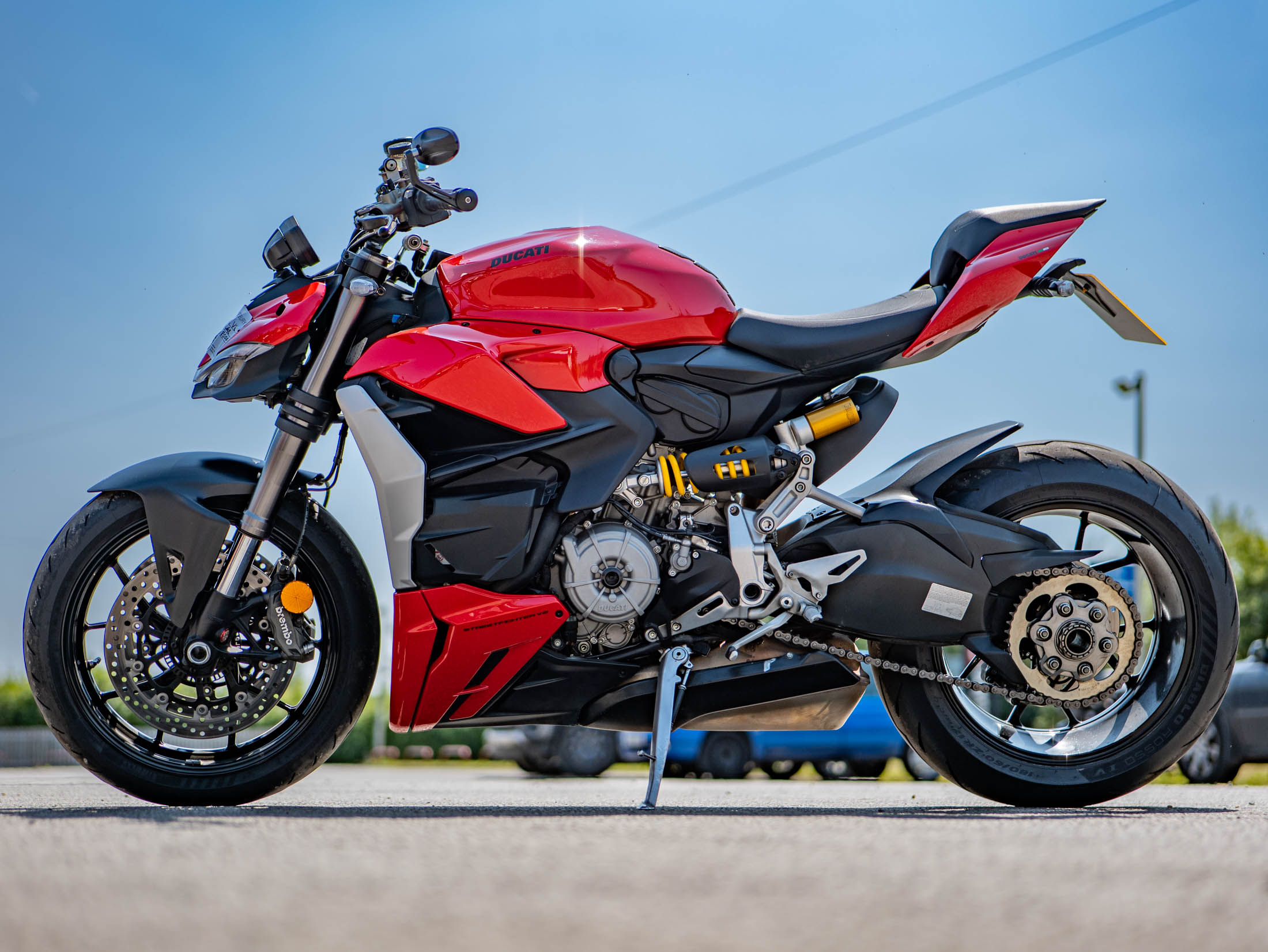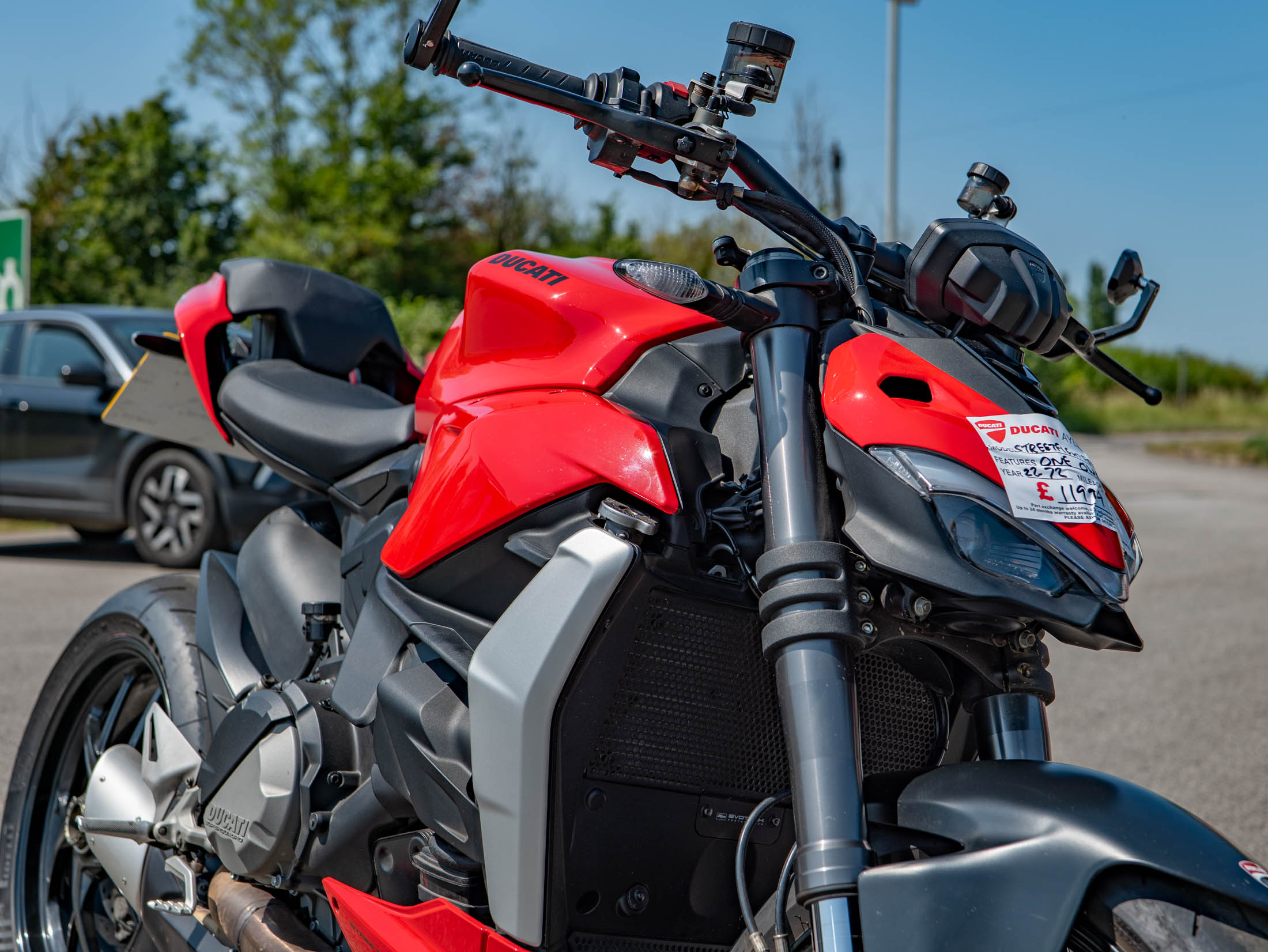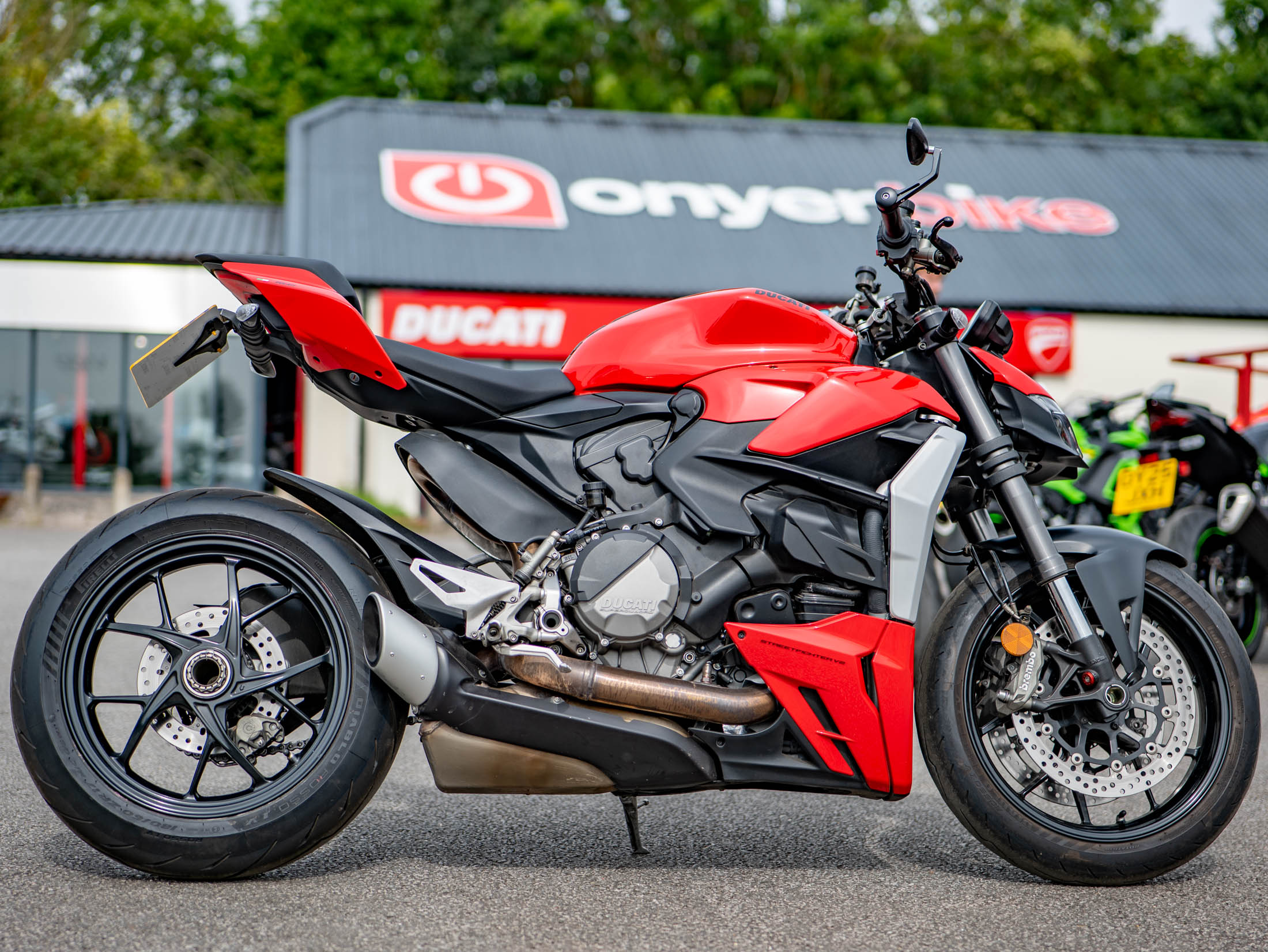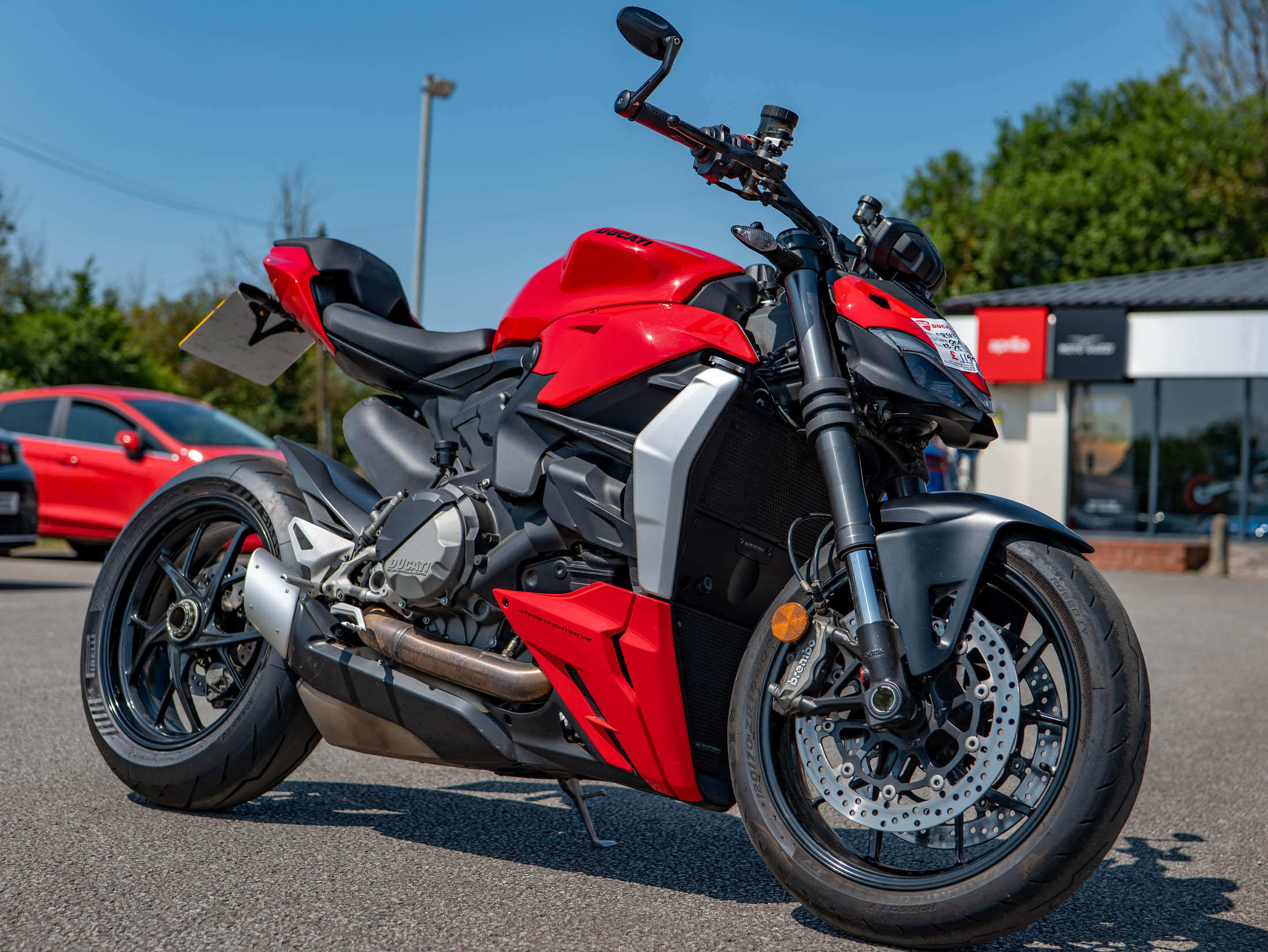 Unleash the "Fight Formula" on the road with this striking used 2022 (72 Reg) Ducati Streetfighter V2, presented in its iconic Ducati Red finish. Having covered 8,000 miles, this super naked offers an exhilarating blend of Panigale V2 performance with the aggressive attitude of the Streetfighter, perfect for spirited rides and urban adventures.