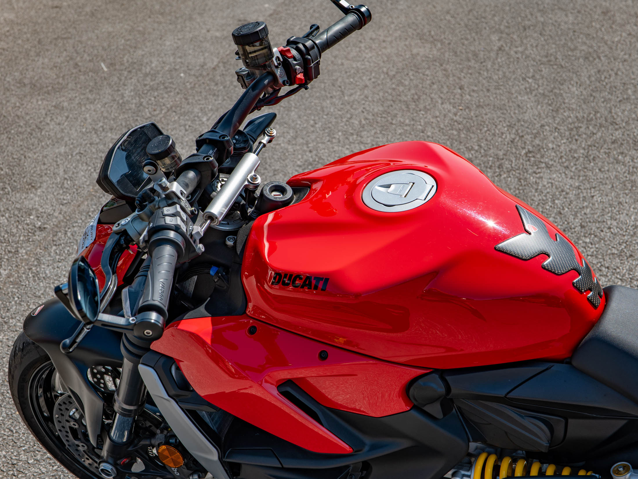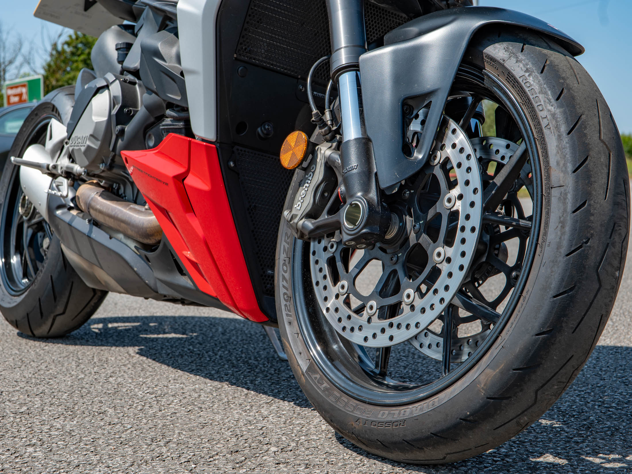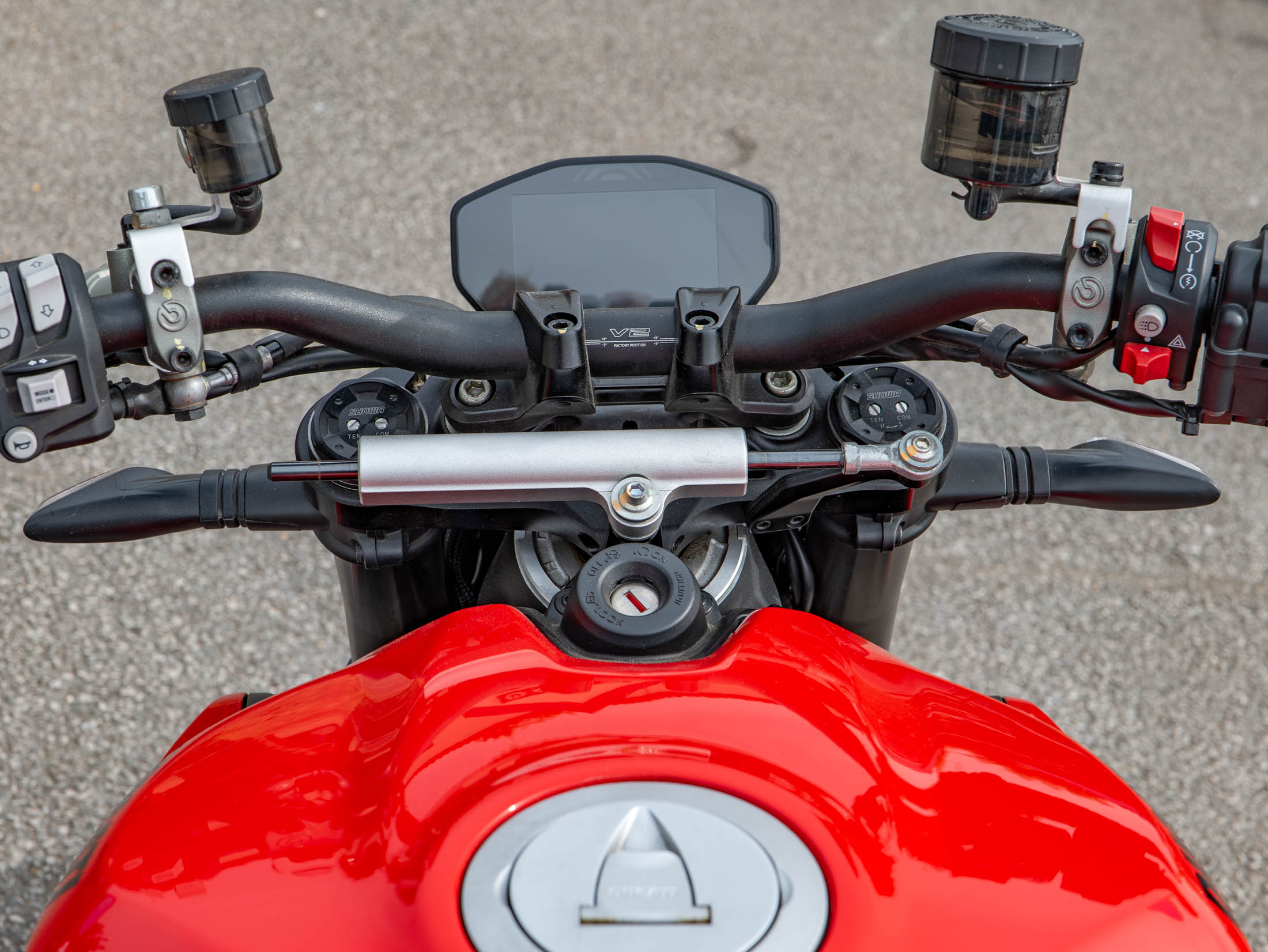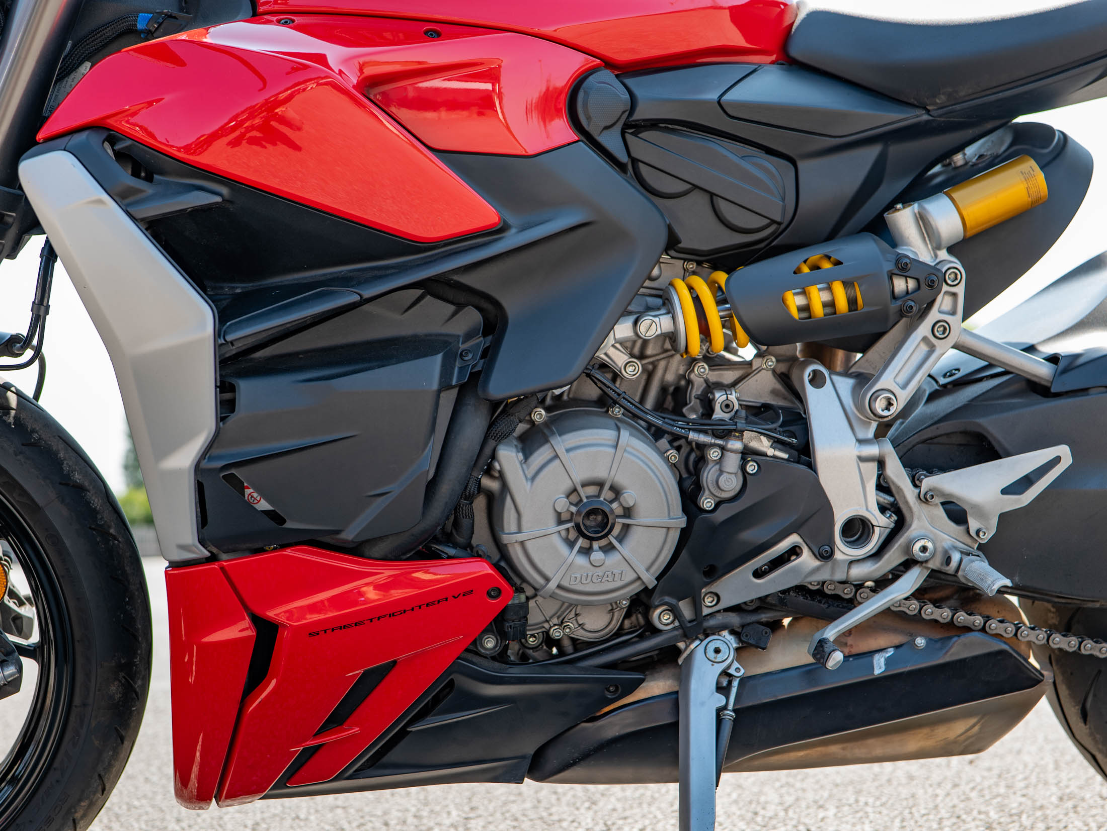 This Streetfighter V2 is equipped with a comprehensive suite of Ducati's advanced electronics. It features Cornering ABS EVO for exceptional braking control, along with lean-sensitive Ducati Traction Control (DTC) EVO 2 and Ducati Wheelie Control (DWC) EVO for maximum grip and stability. Riders can tailor the bike's character through three Riding Modes (Sport, Road, and Wet), each with optimised power delivery and electronic intervention levels. A standard Sachs steering damper enhances stability at speed.