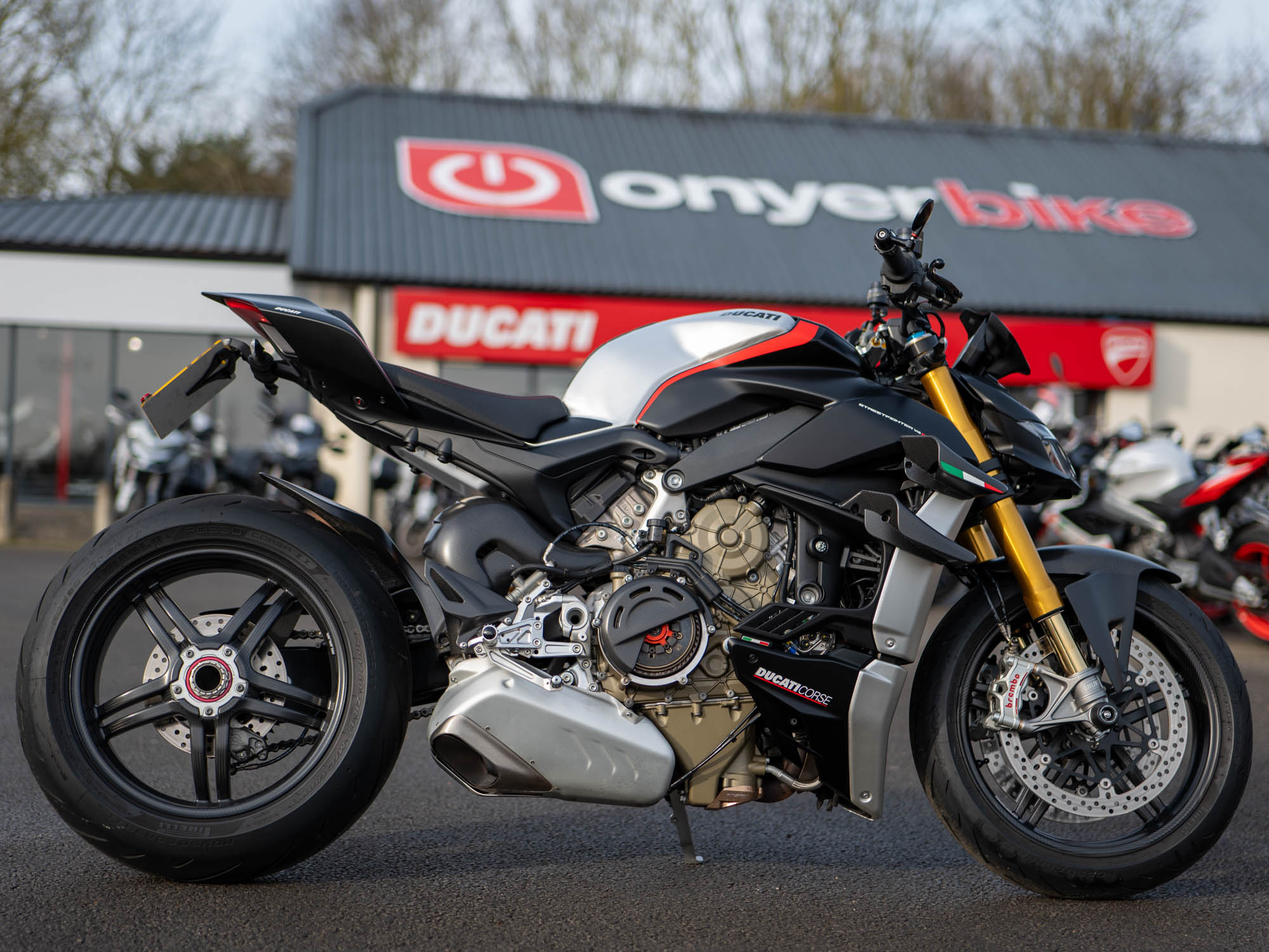 This highly desirable 2022 Ducati Streetfighter V4 SP is available now at On Yer Bike in Aylesbury.