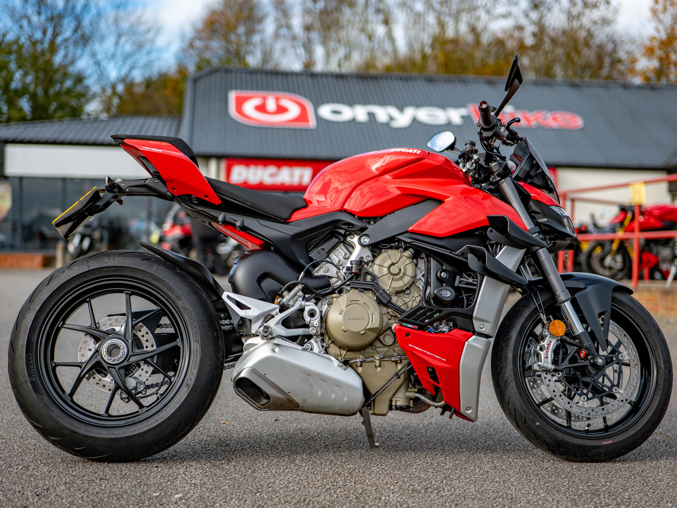 This sensational, low-mileage supernaked is available to view at On Yer Bike / Ducati Aylesbury, your official dealer for Ducati, Kawasaki, Aprilia, and Moto Guzzi, located near Aylesbury, UK. This used machine is supplied with our warranty of three months or 1,000 miles, whichever comes first, giving you confidence in your purchase. Contact our specialist sales team today to secure this incredible Streetfighter V4, and we can arrange competitive and secure delivery service across mainland UK.