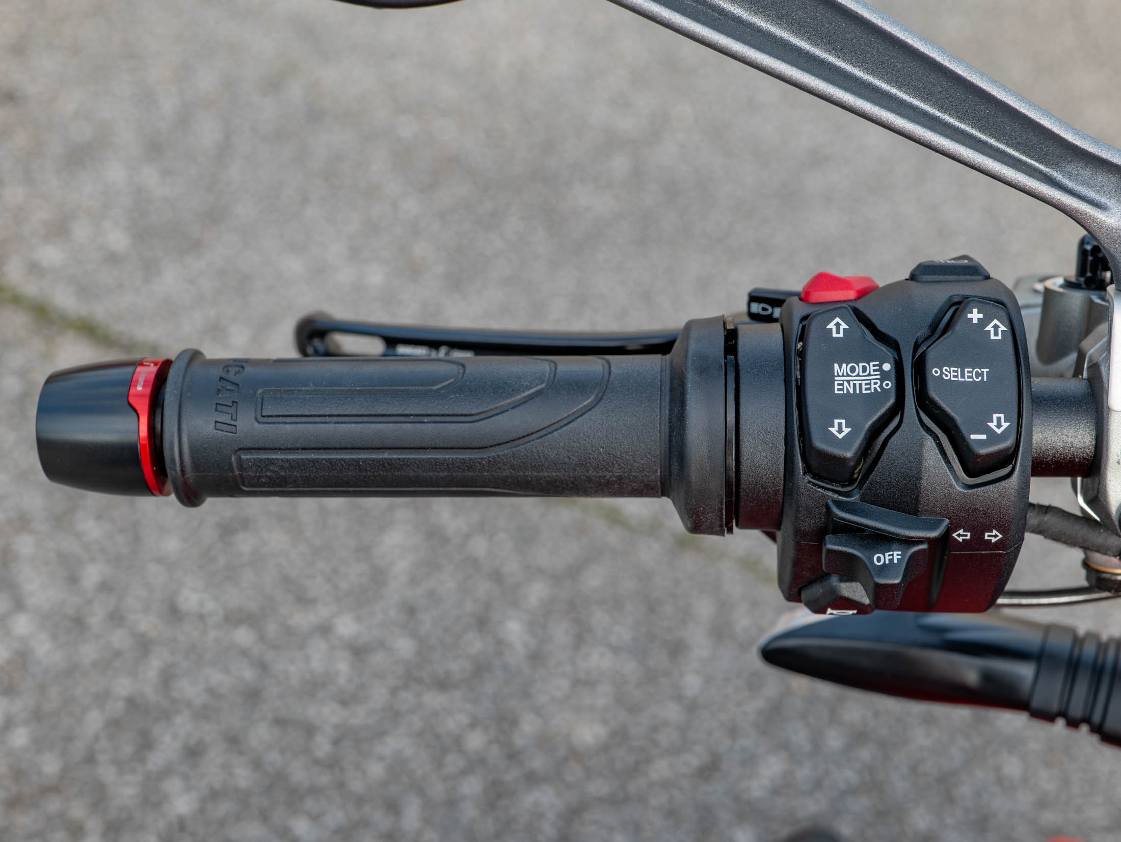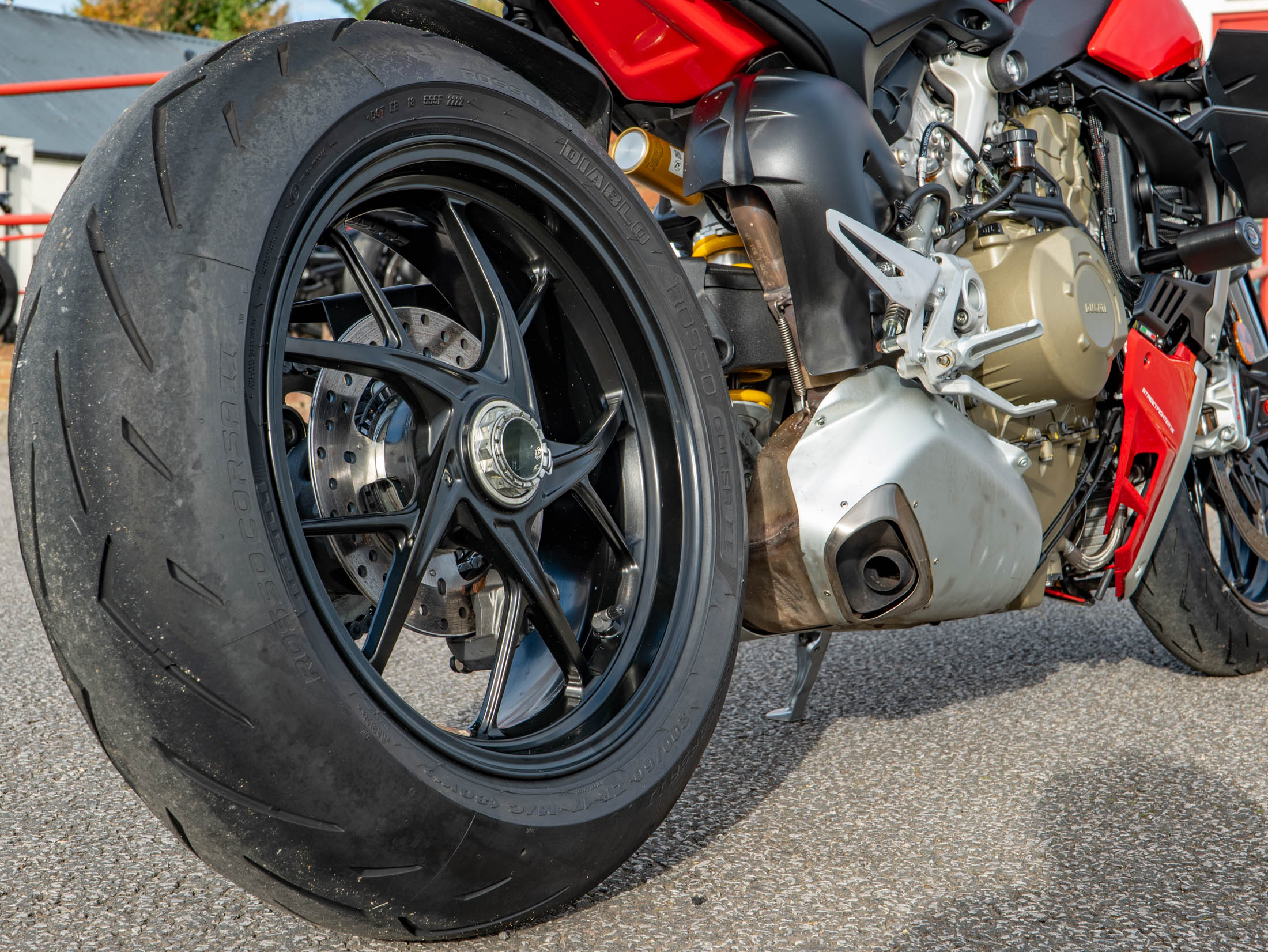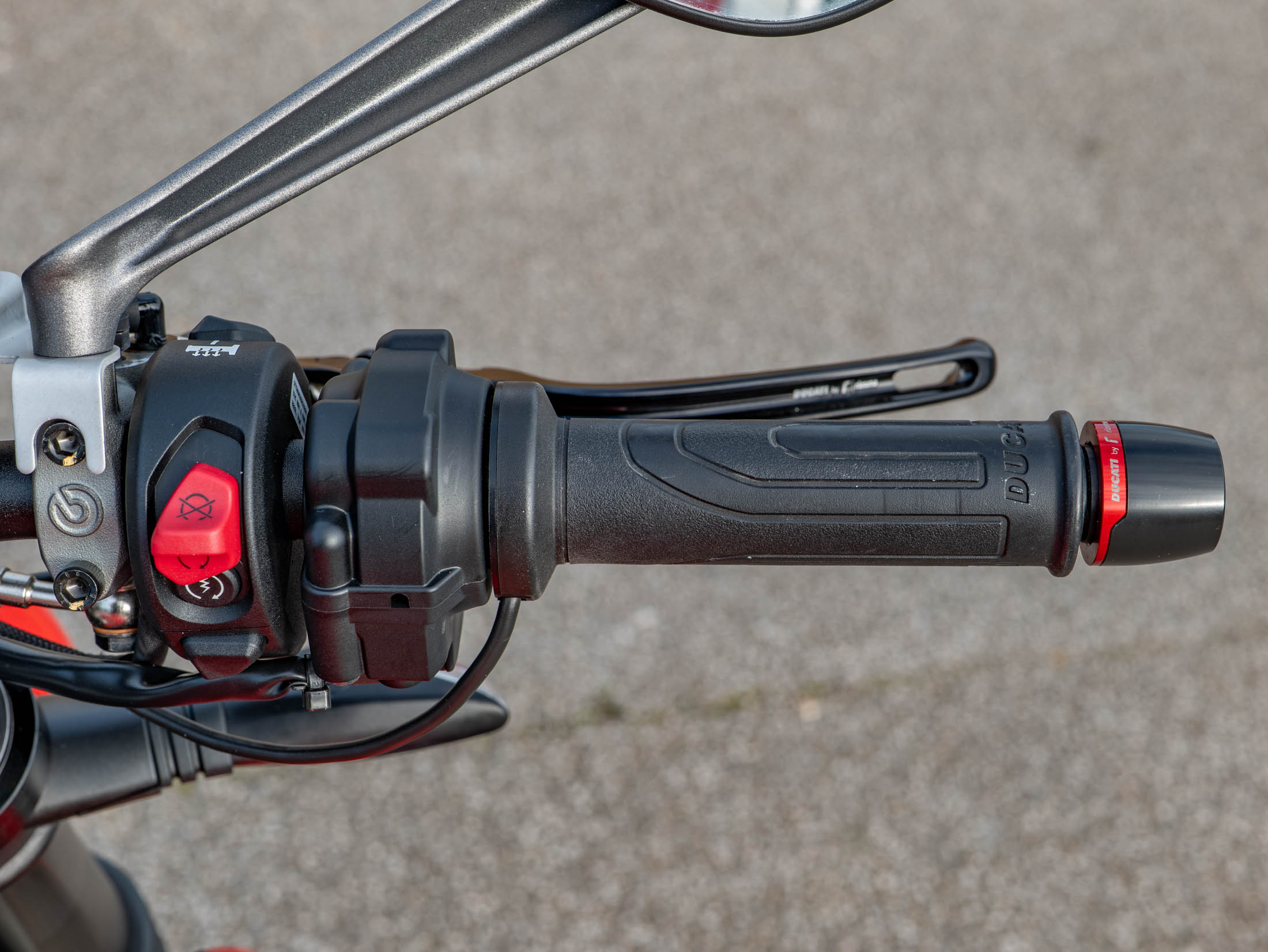 This specific Streetfighter V4 has been enhanced with several choice, tasteful upgrades. It features the essential visual upgrade of a factory Ducati Tail Tidy to sharpen the rear end, along with a sporty Rizoma Filler Cap. For added protection, the bike is fitted with R&G Crash Bobbins (crash bungs) and Spindle Sliders on the front to safeguard the key components. The inclusion of a QuadLock Phone Mount offers modern convenience, while essential details like the Fly Screen and Tank Pad complete the package. Despite being a powerful superbike, it also includes factory Heated Grips for added comfort.