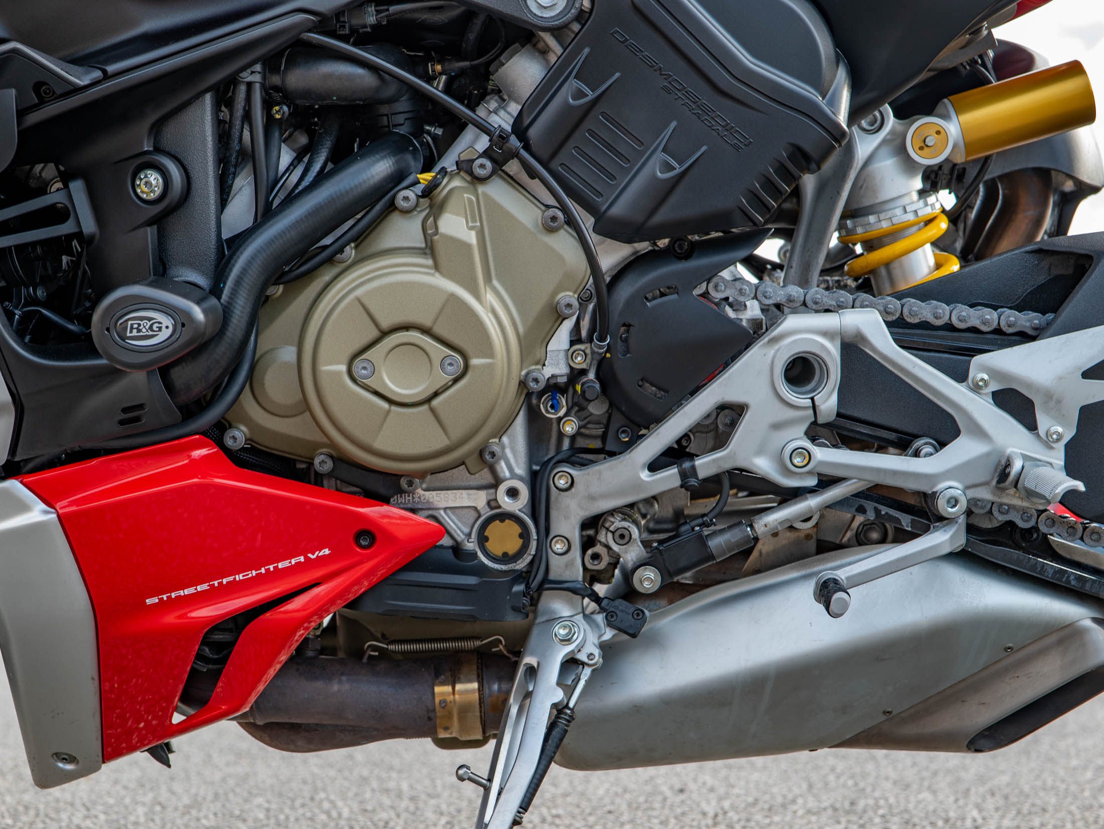 The Streetfighter V4 is driven by the race-derived, liquid-cooled 1103cc Desmosedici Stradale V4 engine, unleashing a devastating 208 hp through a six-speed manual transmission. This machine is a technical masterpiece, featuring a full suite of cutting-edge electronics, including Cornering ABS, multi-level Traction Control (DTC EVO 2), multiple selectable Riding Modes, and the lightning-fast bi-directional Quickshifter (DQS EVO 2). Control is assured by a hydraulic clutch, a Steering Damper, and high-quality Adjustable Levers.