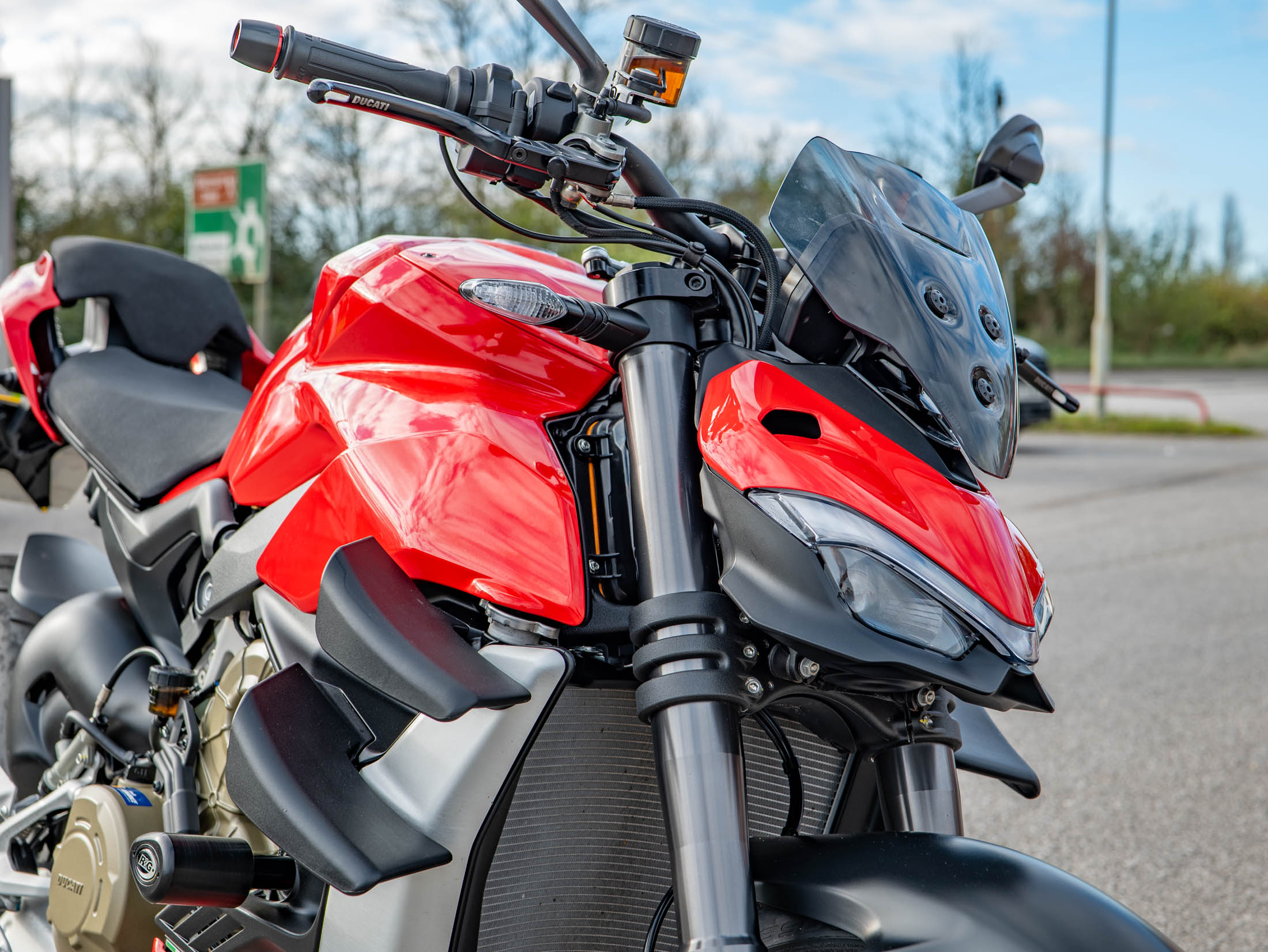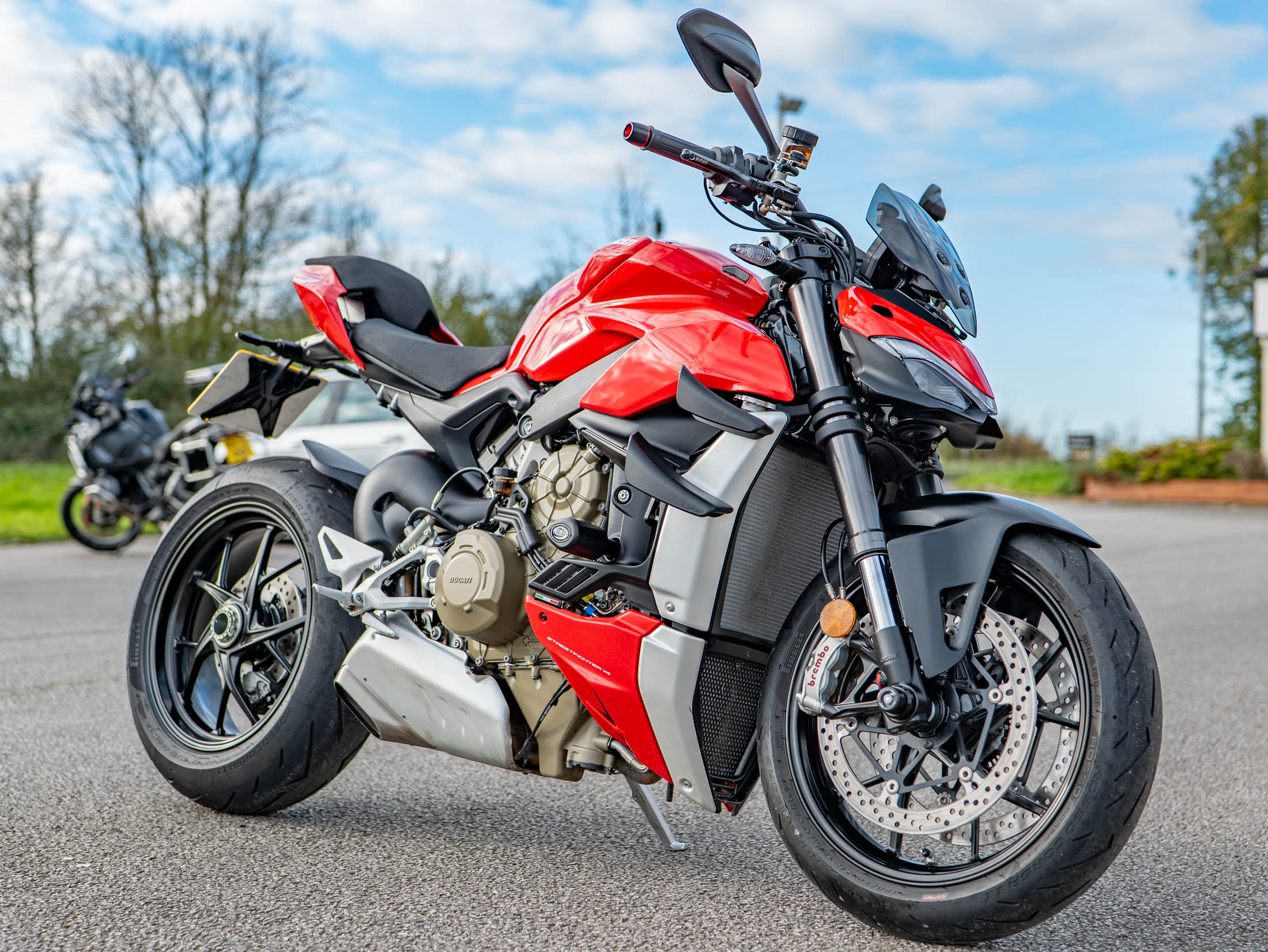 Available immediately is this phenomenal, one-owner Ducati Streetfighter V4, the uncompromising naked superbike that delivers unmatched performance and aggressive style. This stunning 2022 '72 Reg machine, finished in the iconic Ducati Red, has covered a genuine super low mileage of just 978 miles from new. Presenting exceptional provenance, this bike has been cherished by its one previous owner and has just benefited from a recent service, ensuring it is ready to ride away today with a full 12 months MOT.