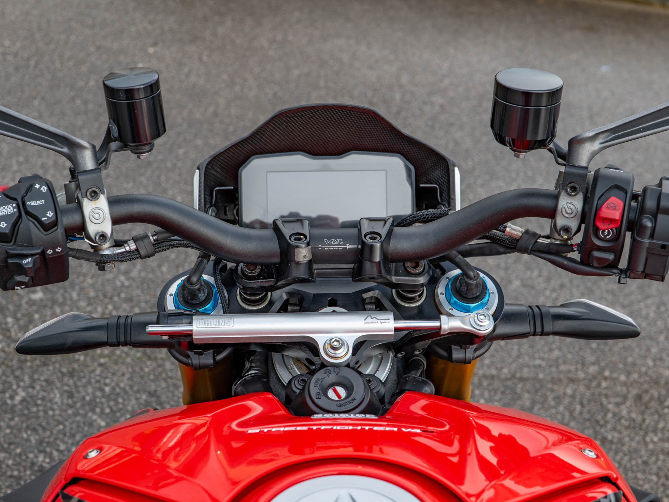 The Streetfighter V4 S is essentially a Panigale V4 stripped of its fairings and equipped with high, wide handlebars. Its 1103cc Desmosedici Stradale engine produces a staggering 208 hp, delivering an adrenaline-fueled experience that few bikes can match. As the "S" model, it features premium Öhlins electronic suspension (NIX30 forks and TTX36 shock) and lightweight Marchesini forged aluminium wheels, which significantly sharpen the handling and reduce unsprung weight. This isn't just a motorcycle; it’s a high-tech powerhouse designed for riders who want the absolute best in Italian engineering.