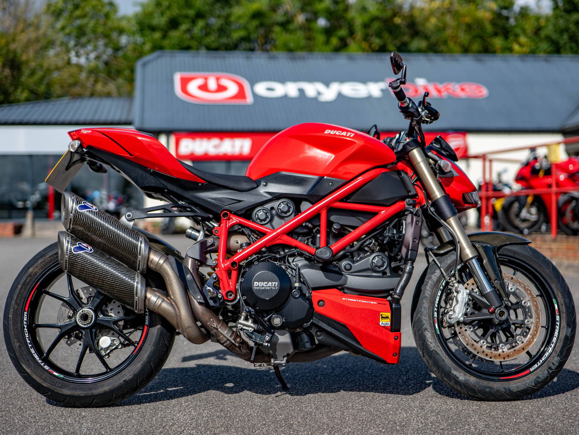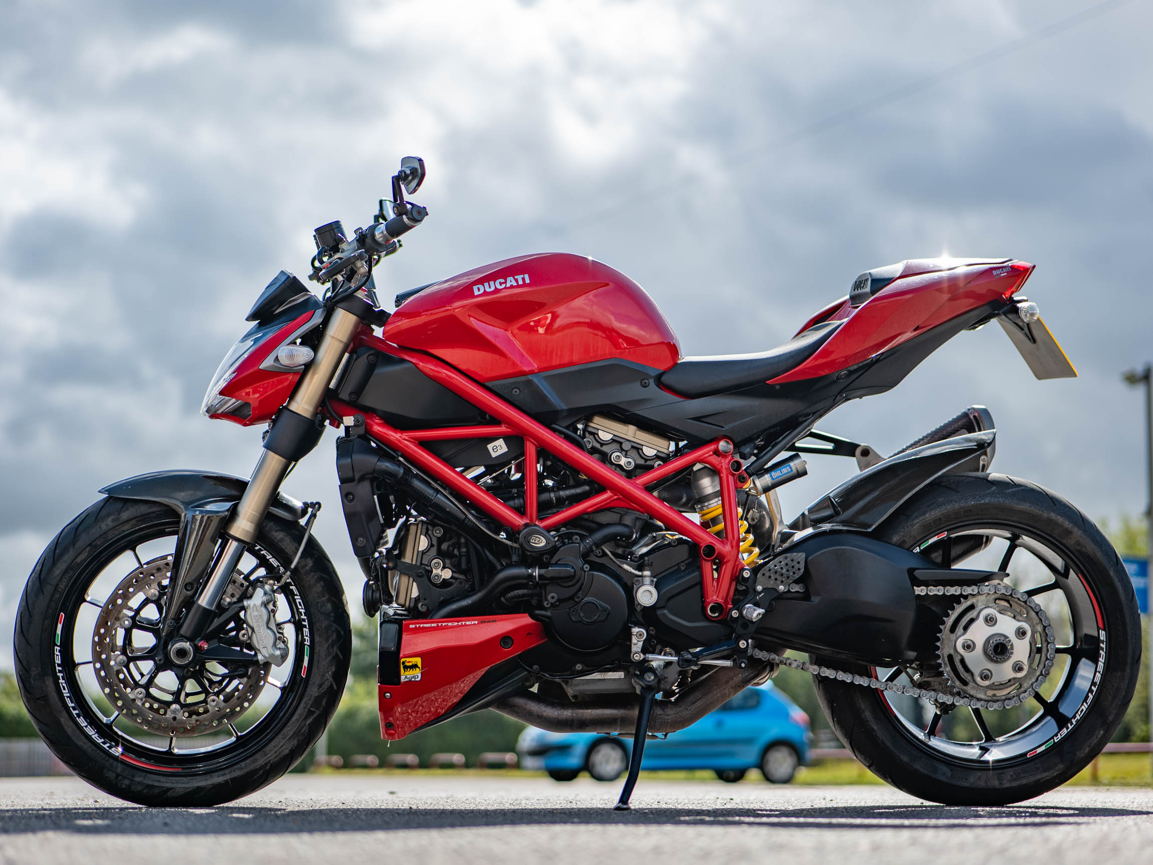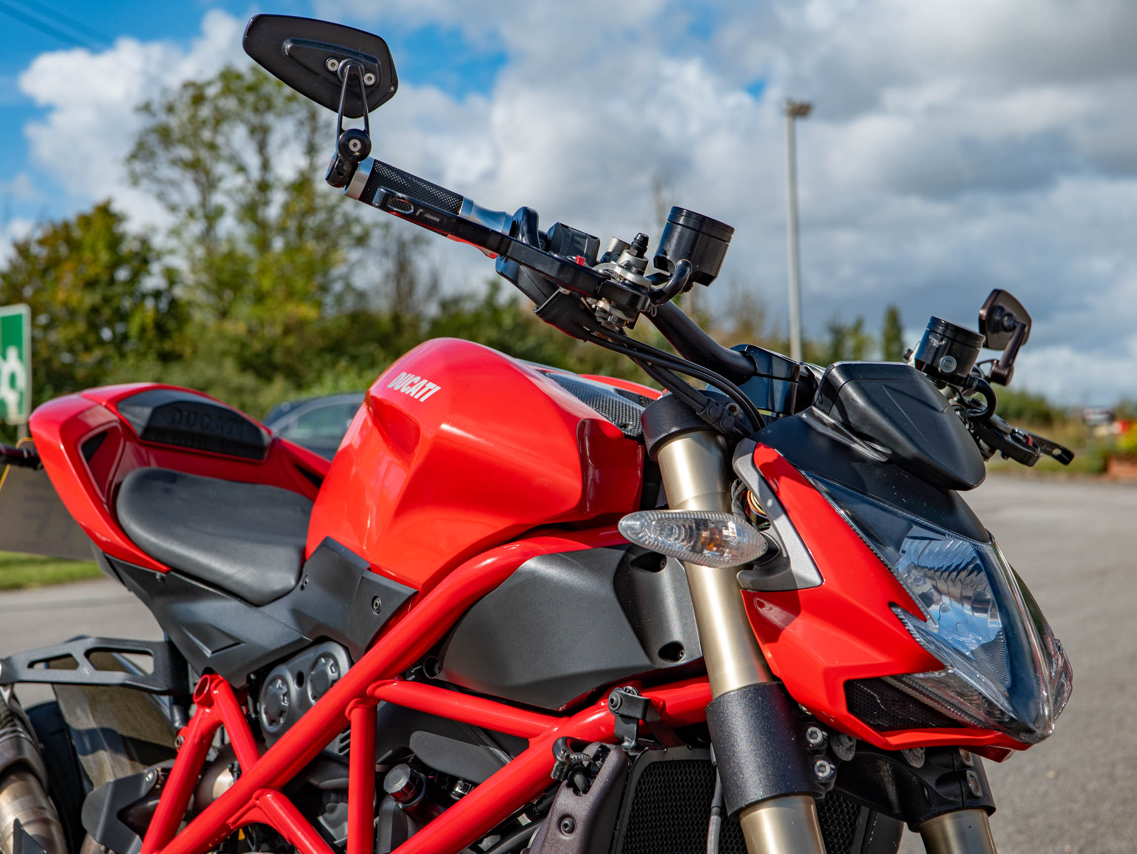 The Streetfighter 848 is all about raw, purposeful design and incredible performance. Its lightweight chassis and sharp handling make it a joy to ride, whether you're navigating urban traffic or carving through your favourite country lanes. This specific bike has been further enhanced with a number of high-quality aftermarket upgrades, including a carbon front and rear mudguard, Rizoma grips, and R&G crash bungs. These not only improve the bike's aesthetics but also provide crucial protection. The addition of a tail tidy and bar-end mirrors also contributes to its aggressive, minimalist look.