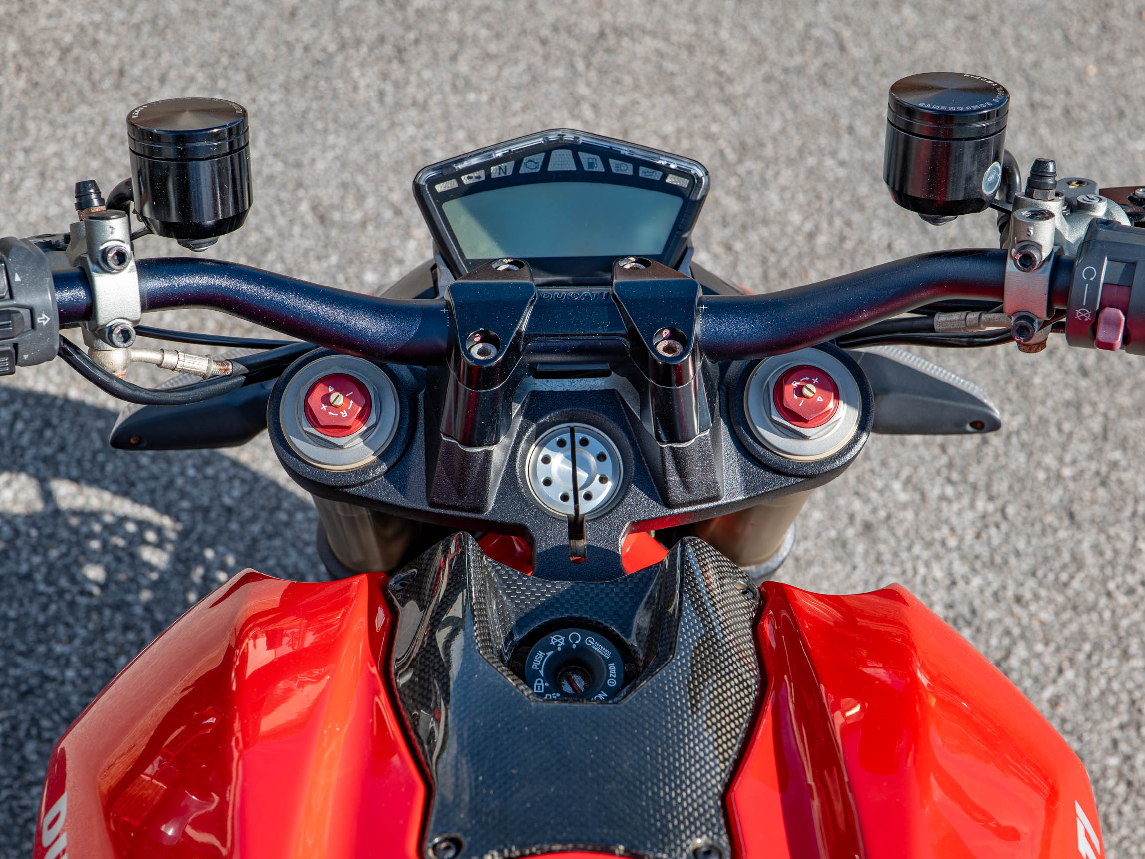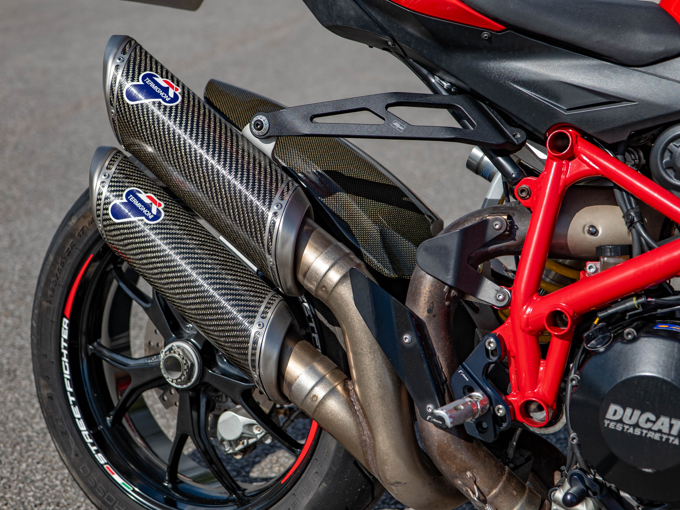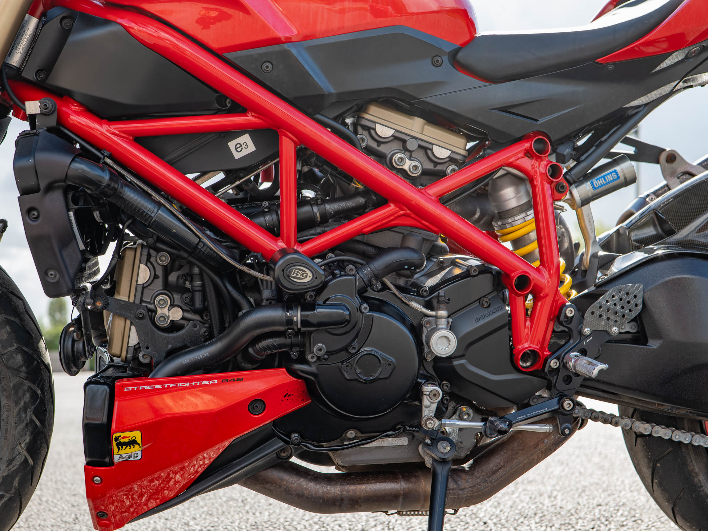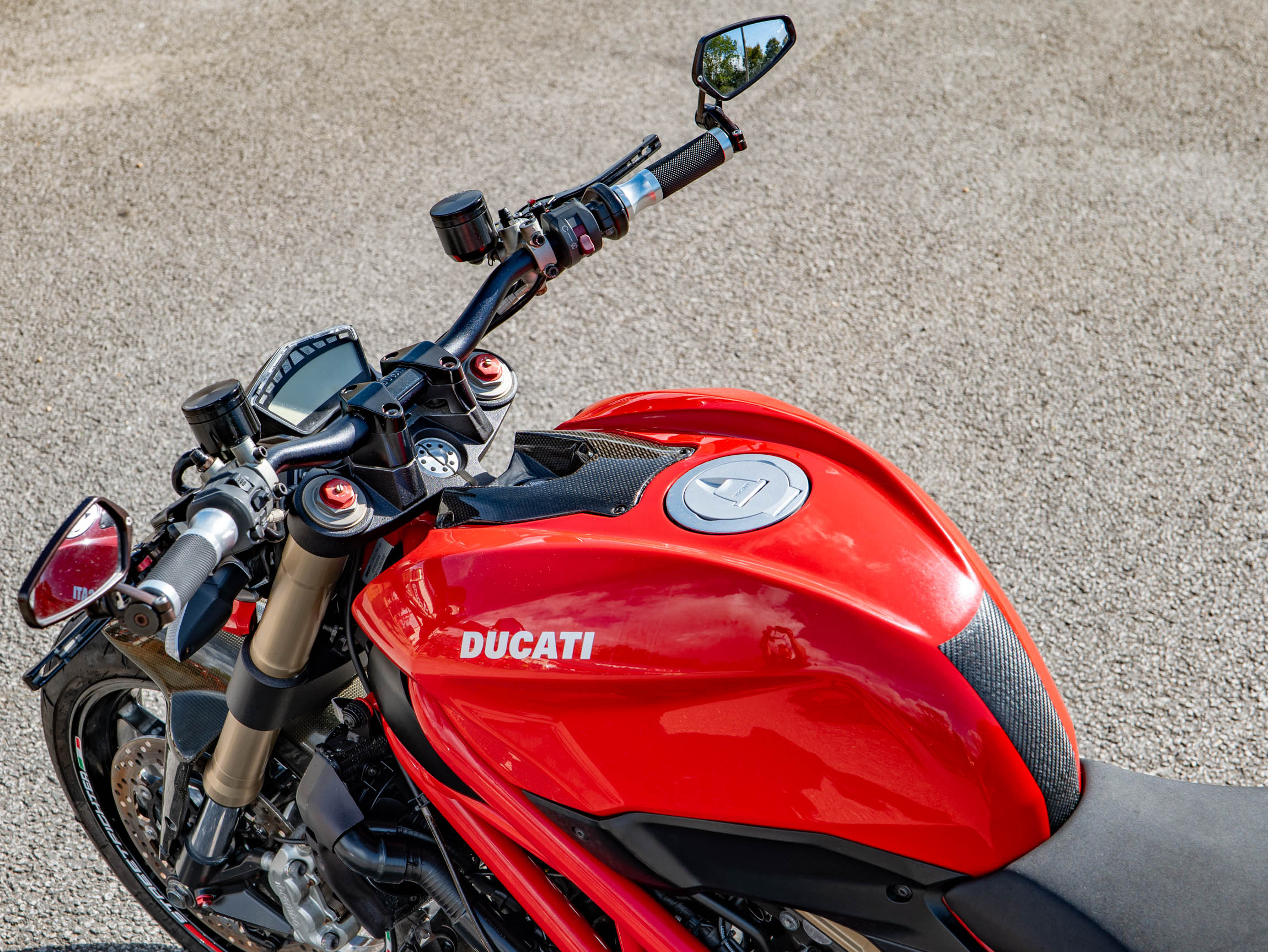 The Streetfighter 848 is all about raw, purposeful design and incredible performance. Its lightweight chassis and sharp handling make it a joy to ride, whether you're navigating urban traffic or carving through your favourite country lanes. This specific bike has been further enhanced with a number of high-quality aftermarket upgrades, including a carbon front and rear mudguard, Rizoma grips, and R&G crash bungs. These not only improve the bike's aesthetics but also provide crucial protection. The addition of a tail tidy and bar-end mirrors also contributes to its aggressive, minimalist look.