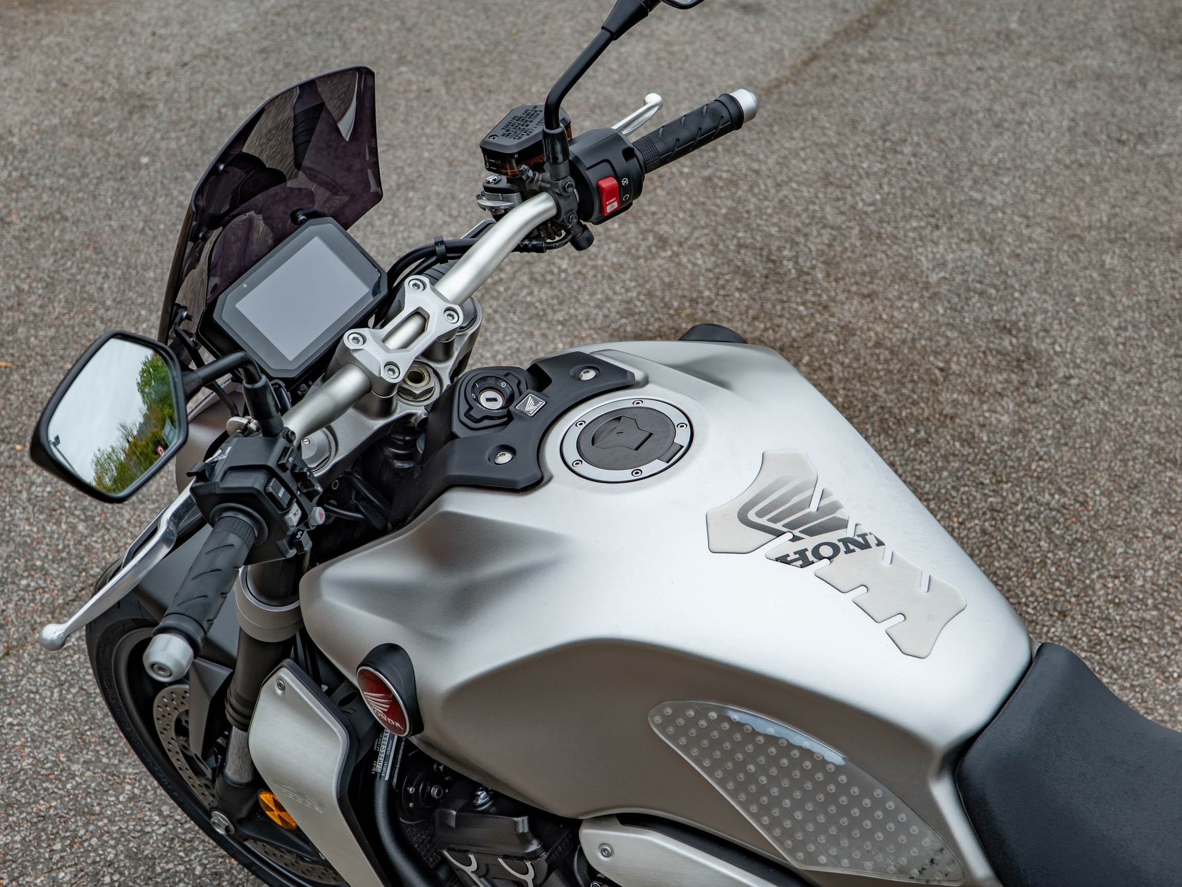 Practical protection and style are added with R&G Crash Bobbins, a Rad Guard, and a Tank Pad. Rider aids include standard ABS, multiple Riding Modes, and a factory-fitted Quickshifter for seamless, clutchless gear changes. With its unique, minimalist styling and excellent list of features, this CB1000R offers an unforgettable riding experience.