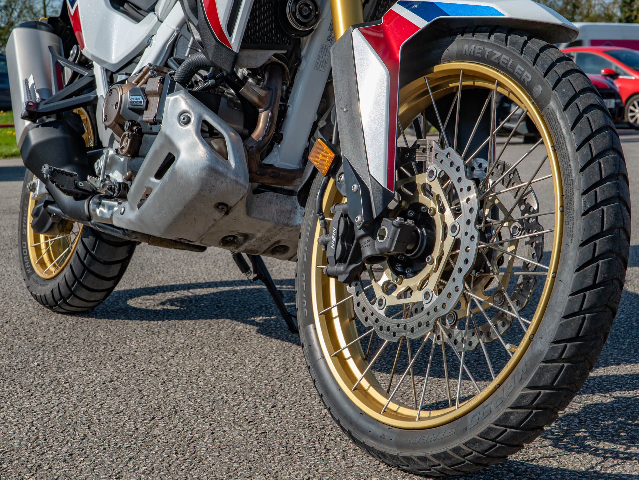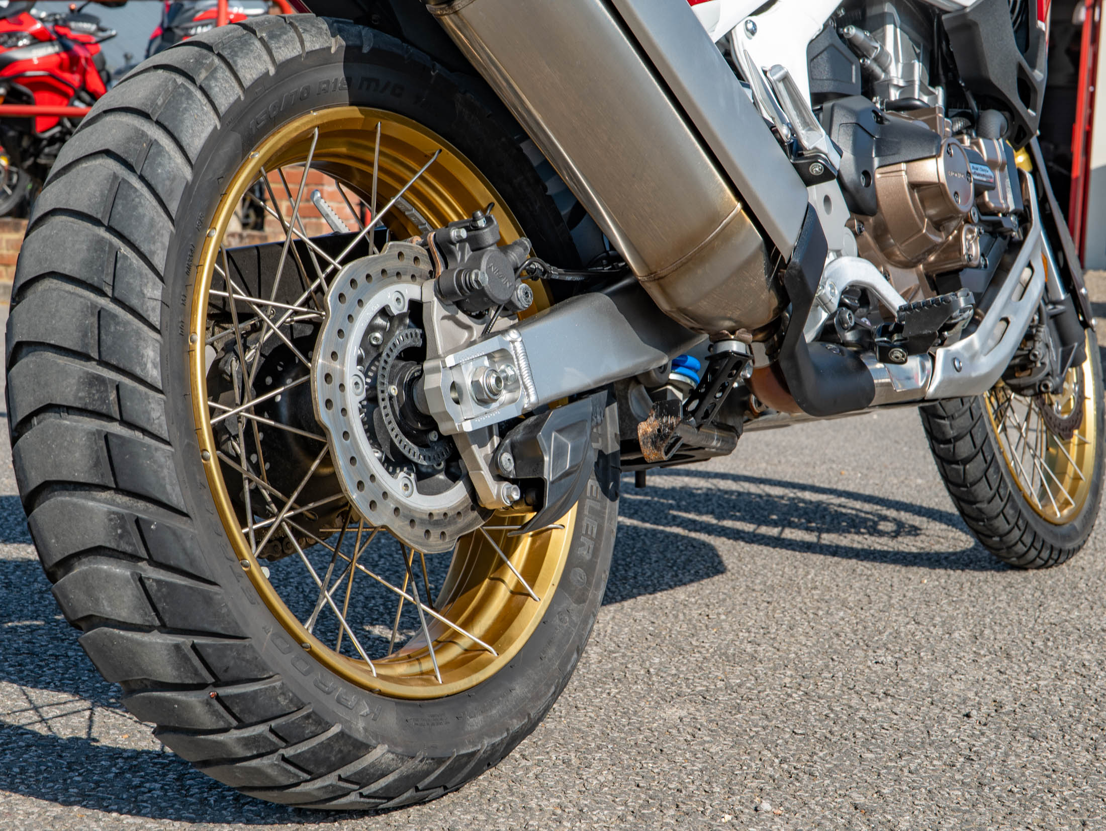 The heart of the CRF1100L is the characterful 1,084cc parallel-twin engine, delivering a muscular 101 hp. For the 1100 generation, Honda significantly increased torque and power over its predecessor, making this 101 hp powerplant incredibly tractable across the rev range. The DCT system has been specifically tuned for "True Adventure," with G-switch functionality for off-road traction and three levels of 'S' mode for more spirited road riding. With its 21-inch front and 18-inch rear wheel setup, the Africa Twin remains the benchmark for go-anywhere capability.