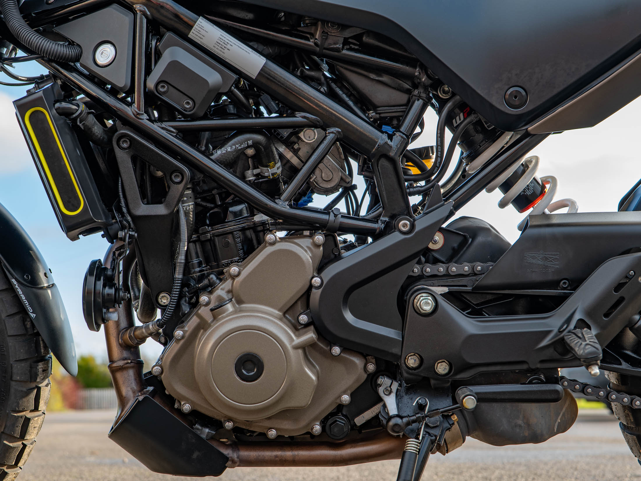 The Svartpilen 401 is powered by a punchy 373 cc single-cylinder engine, which delivers 44 hp—a highly engaging amount of power for A-roads and city streets. The bike comes equipped with a number of essential modern features for performance and safety, including ABS and a super-smooth Quickshifter (Easy Shift) for clutchless up and down gear changes.