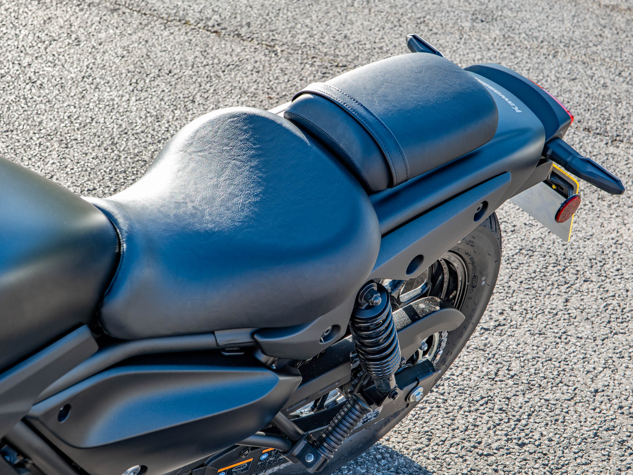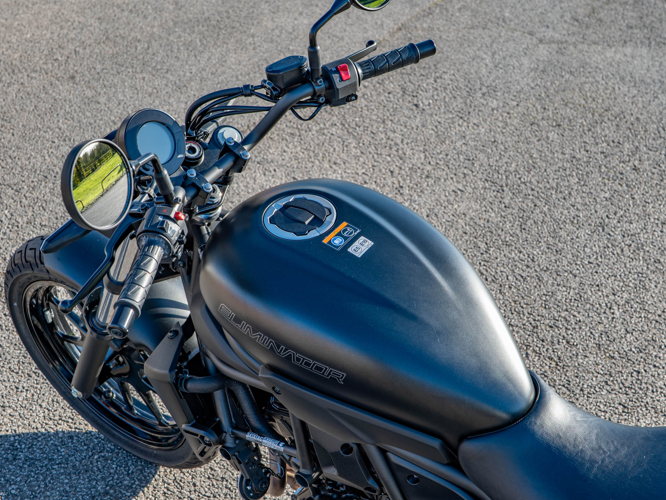 The Eliminator 500 is specifically designed to be light and easy to handle, appealing to new riders and those looking for a manageable, confidence-inspiring cruiser. The low 735mm seat height ensures a reassuring reach to the ground for most riders, making city navigation effortless. Its liquid-cooled 451cc parallel twin engine, shared with the Ninja 500, delivers a strong, usable 45 hp, providing punchy acceleration and a thoroughly enjoyable ride both in urban environments and on open main roads. The light clutch action and smooth 6-speed transmission enhance the stress-free riding experience this bike is known for.