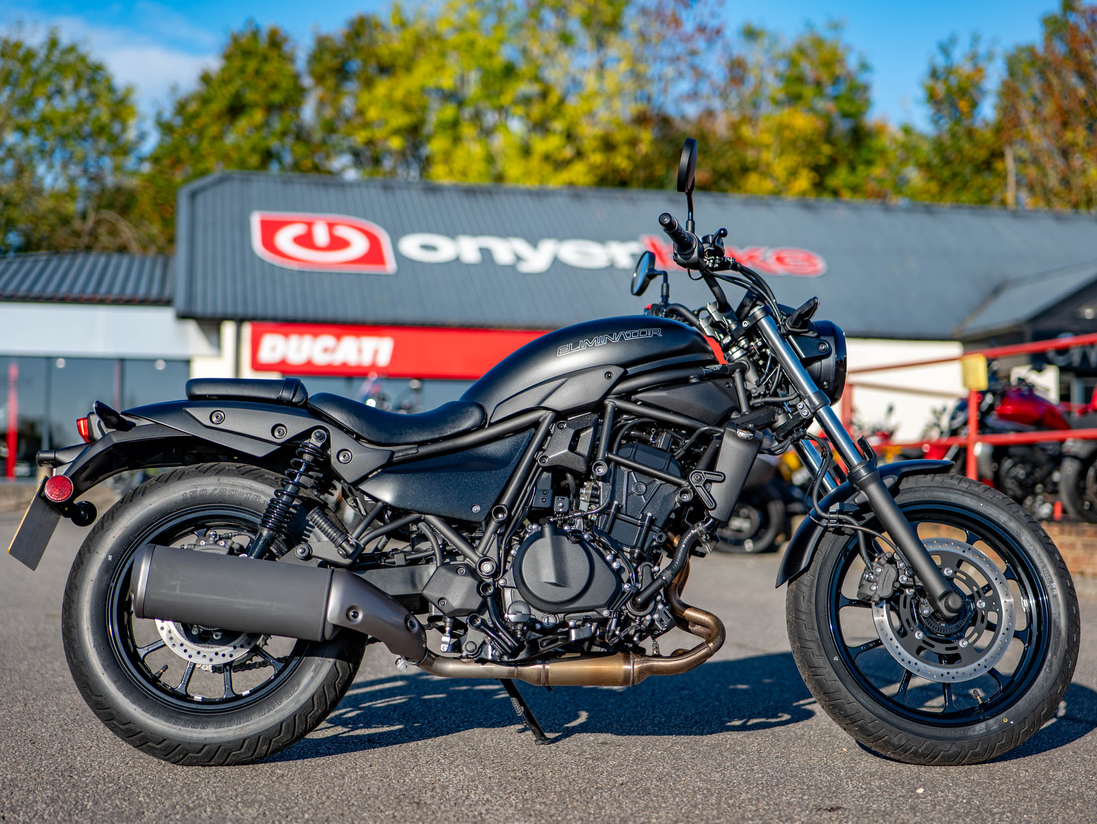 Experience the perfect blend of cruiser styling and sporty, modern performance with this stunning ex-demonstrator Kawasaki Eliminator 500. This highly accessible and lightweight A2 compliant machine is presented in the sleek, deep Black finish and is available now from On Yer Bike, your official Kawasaki dealer located near Aylesbury, UK. This particular bike offers a massive saving over new, having covered a mere 240 miles, making it an incredible opportunity to own a virtually new motorcycle for less. Crucially, this Eliminator is VAT Qualifying, which is a major advantage for business purchasers or those looking to export the bike outside the UK, offering the potential for significant tax savings.
