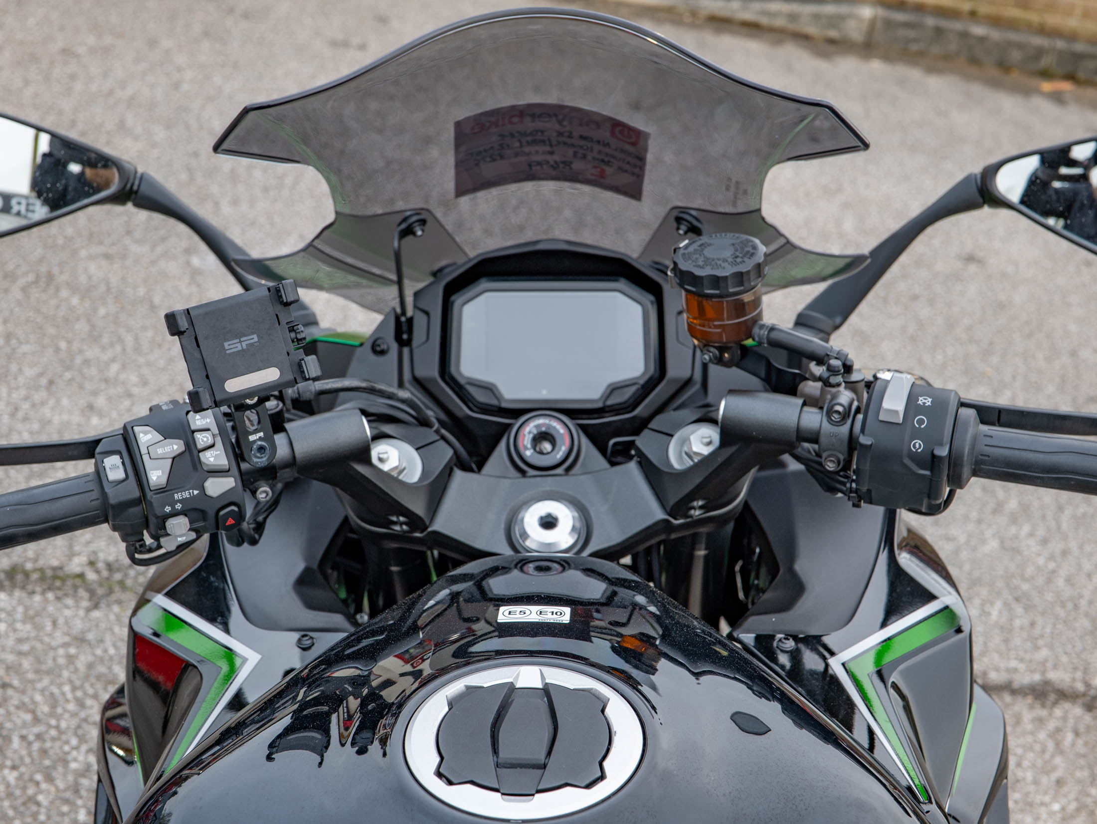 Riding the Ninja 1000SX is an exercise in effortless versatility, providing the soul of a superbike with the comfort required for cross-continental travel. The smooth 1043cc inline-four engine delivers a muscular 142 hp, offering a linear and engaging power delivery that makes light work of both technical B-roads and long motorway stretches. The upright ergonomics and adjustable windscreen allow you to stay in the saddle for hours without fatigue, while the refined chassis provides the sharp, predictable handling the Ninja name is famous for. It is a bike that feels just as comfortable on a spirited Sunday blast as it does loaded with luggage for a week-long tour.