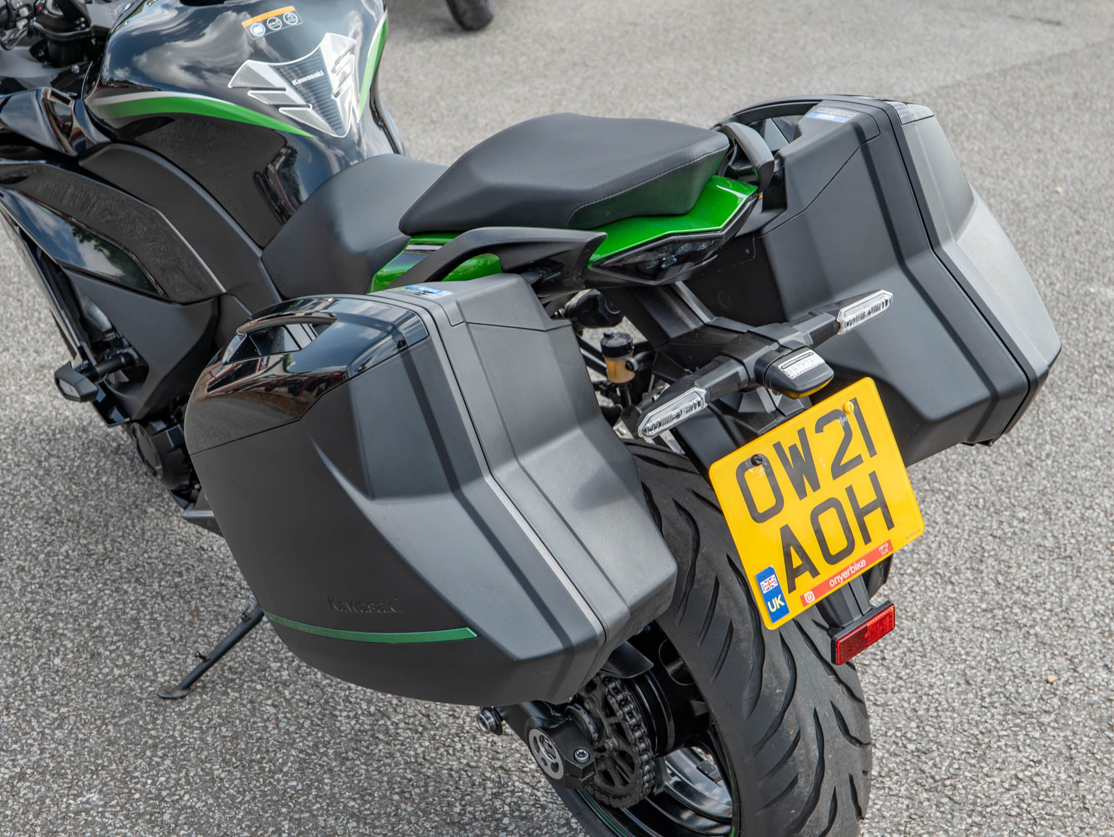 This Ninja 1000 SX is equipped with an impressive array of features to enhance every ride. It benefits from a full tourer specification, designed for comfort and practicality on extended trips, including convenient and secure panniers for all your luggage needs. Rider aids include electronic Cruise Control, Integrated Riding Modes (Sport, Road, Rain, Rider-configurable), and a Kawasaki Quick Shifter (KQS) for seamless clutchless up and down changes. The bike also features multi-level Kawasaki Traction Control (KTRC) and Kawasaki Intelligent anti-lock Brake System (KIBS), which includes Cornering ABS functionality thanks to its 6-axis IMU. All essential information is clearly displayed on a crisp 4.3-inch TFT colour instrumentation with smartphone connectivity. An adjustable windscreen and full LED lighting further improve the touring experience.