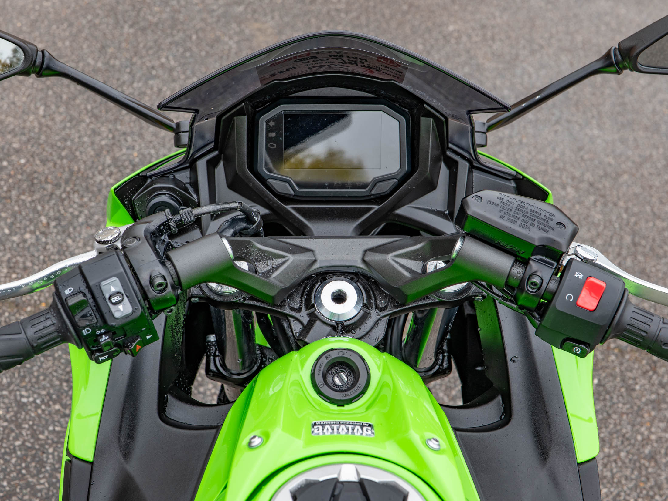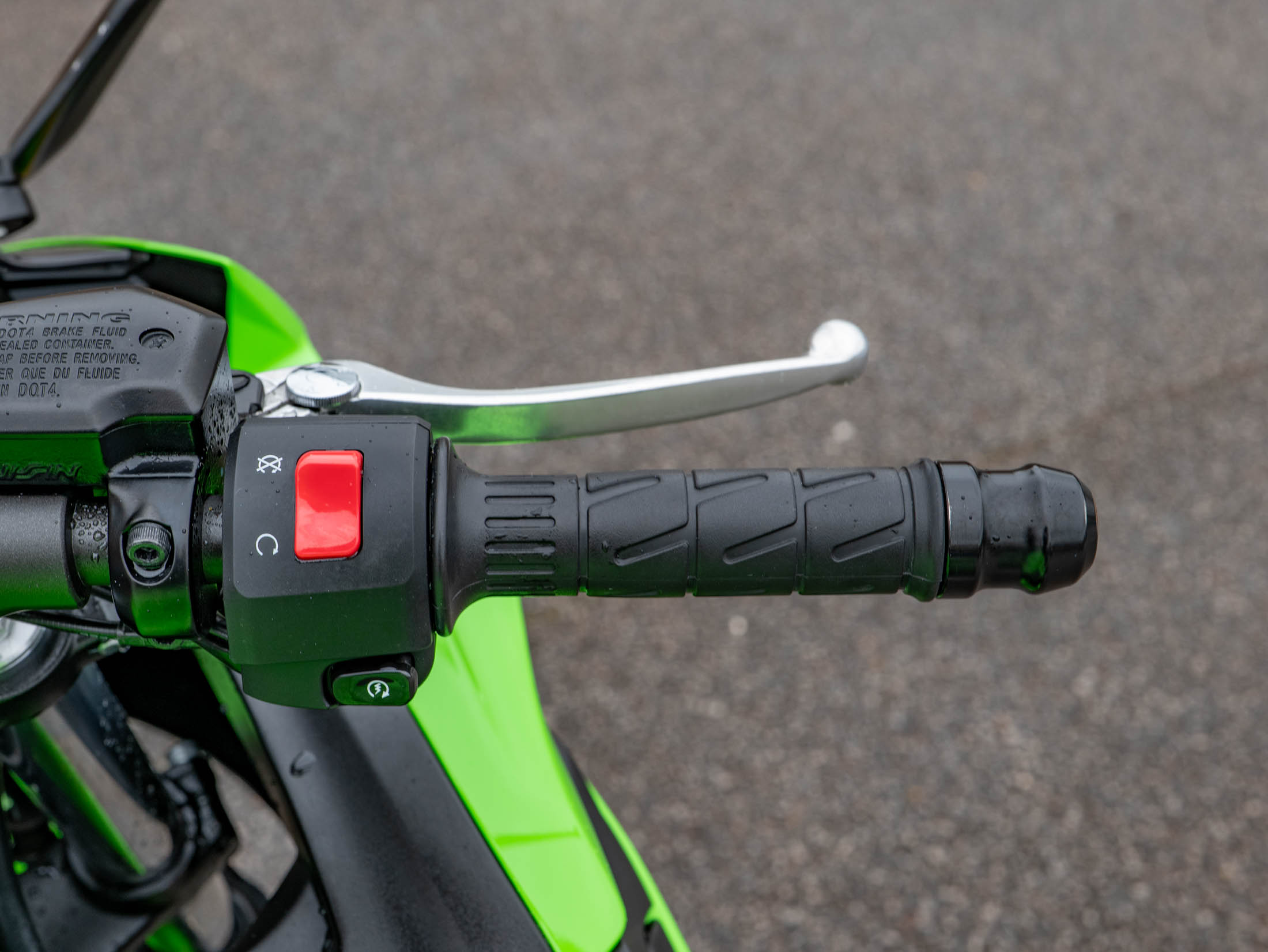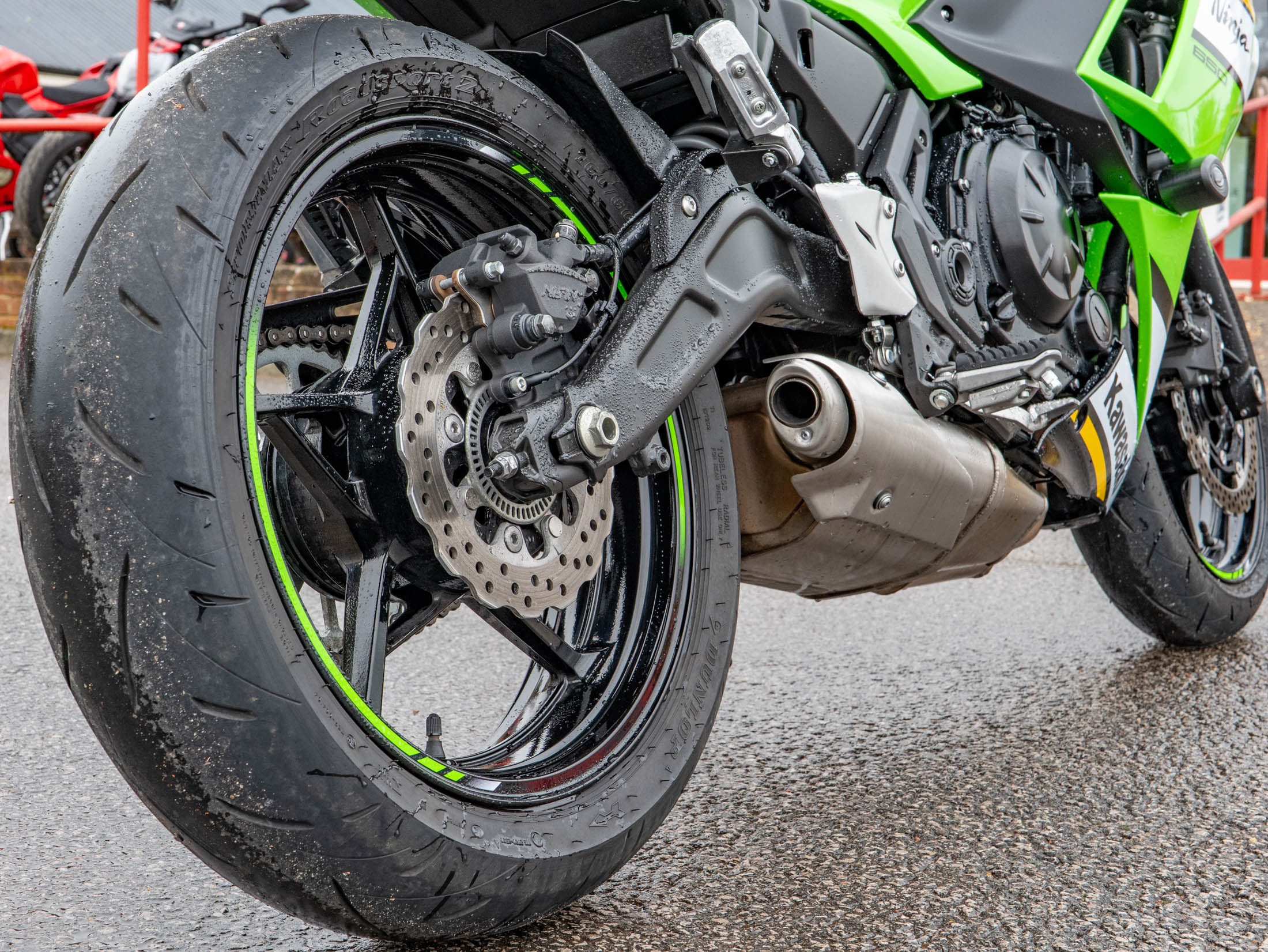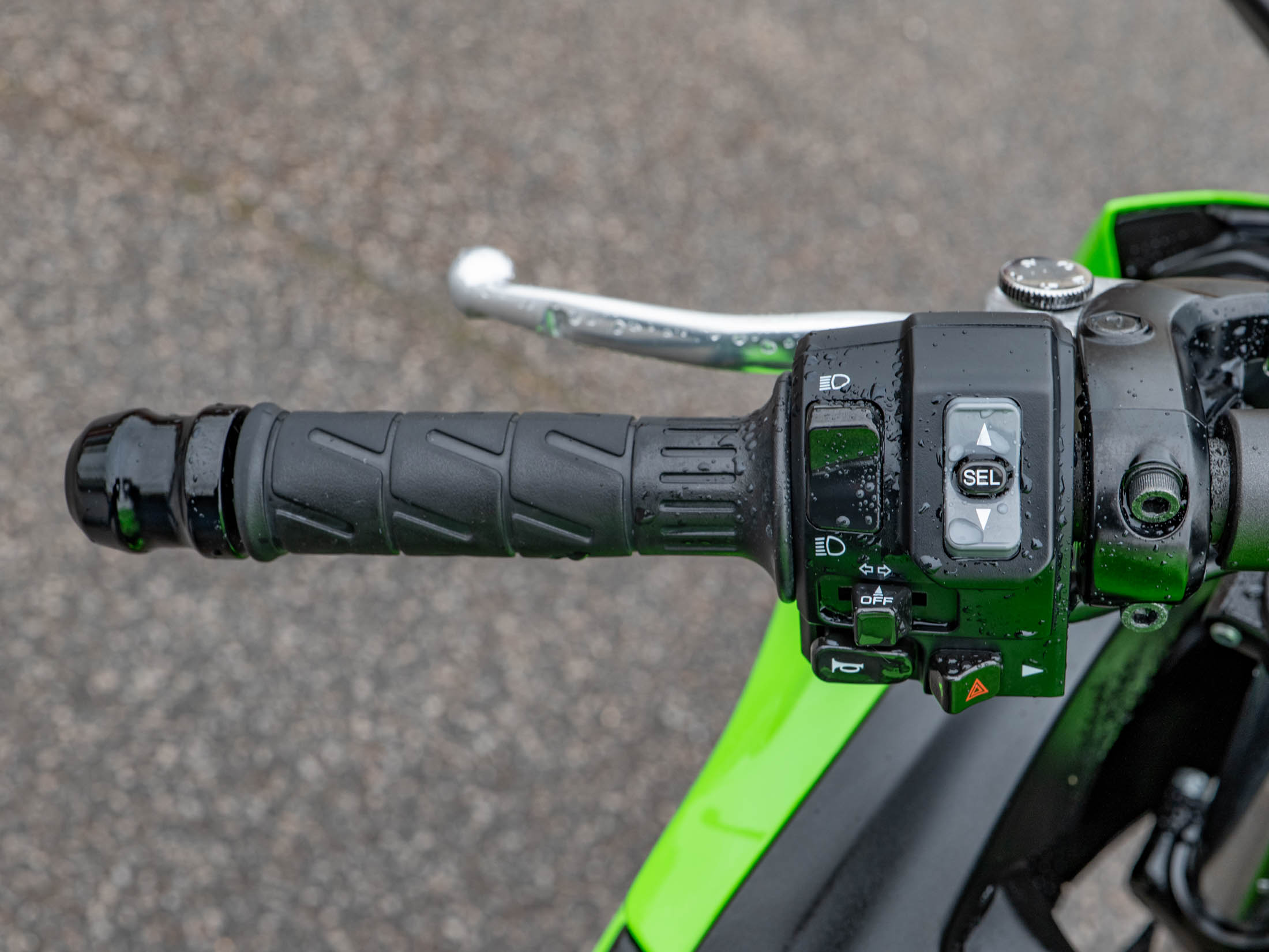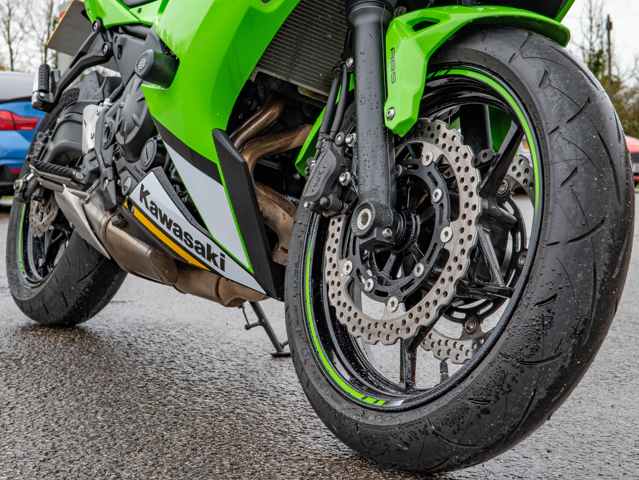 This example is fitted with key, high-quality protective and styling accessories: R&G Crash Bungs provide essential protection for the fairings and engine casing in the event of a drop; a Tail Tidy cleans up the rear end for a sharper, more focused aesthetic, and a Tank Pad protects the beautiful Green paintwork from jacket and zip abrasions.