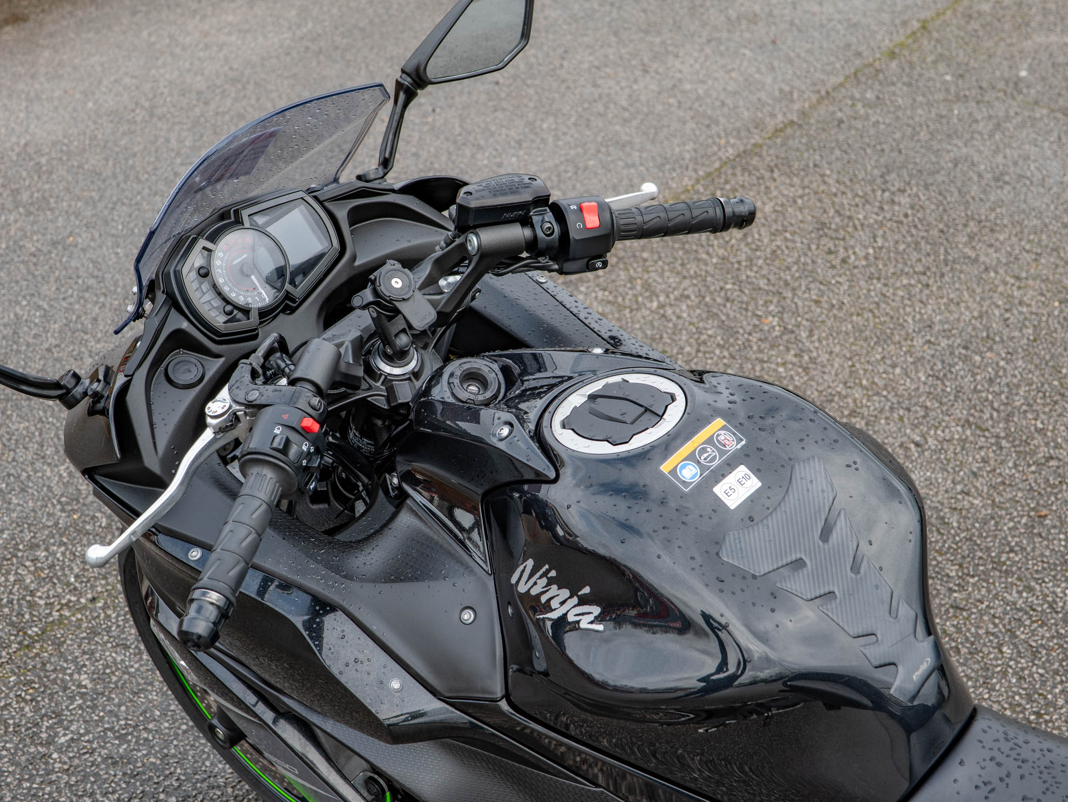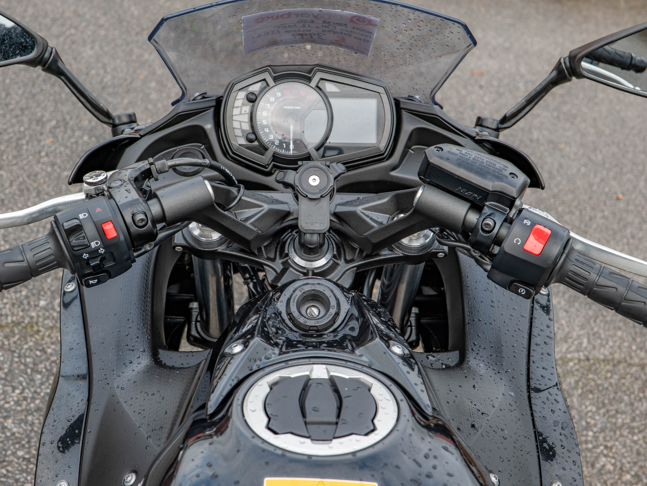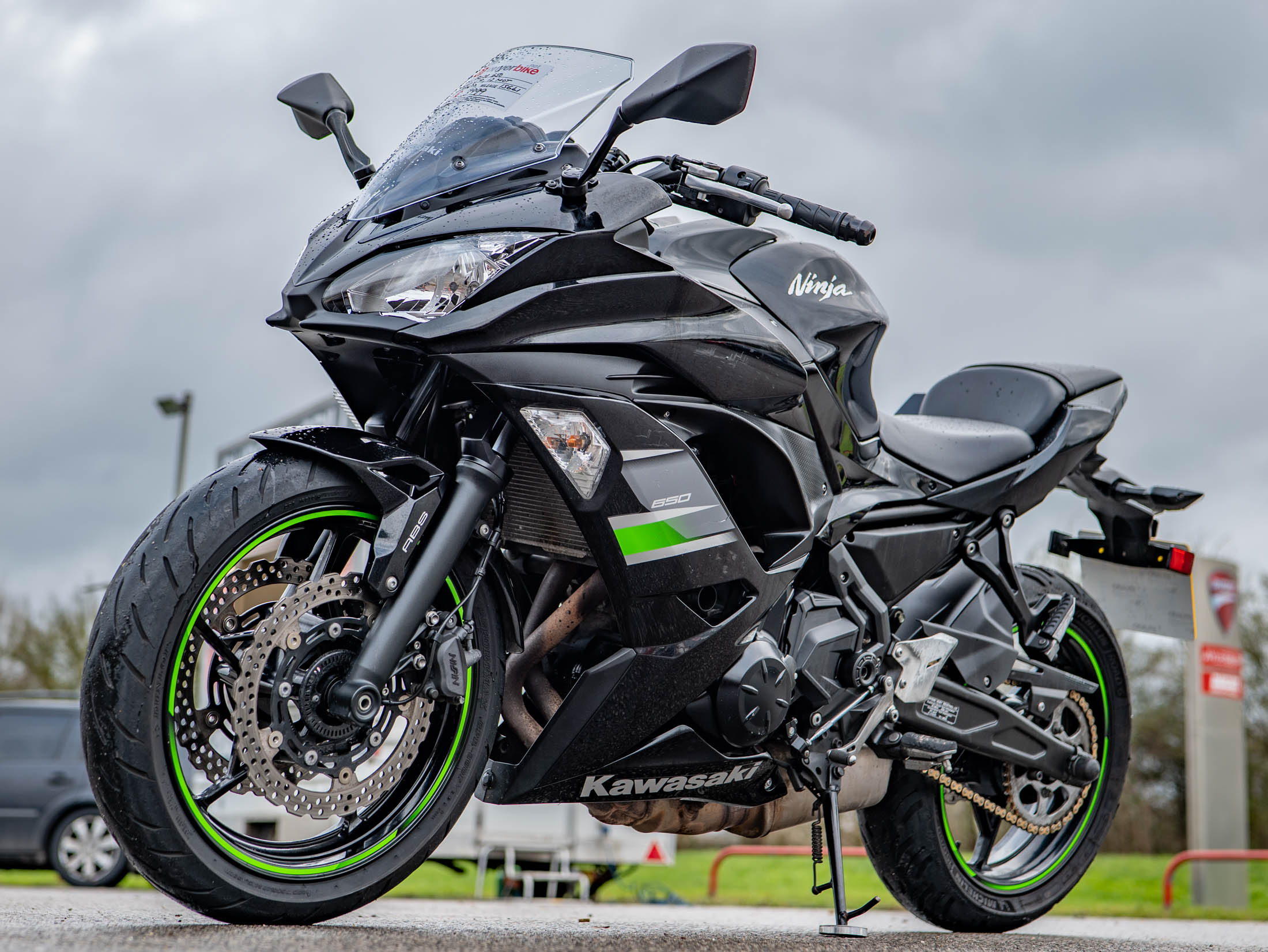Riding the Ninja 650 is an intuitive and rewarding experience, powered by a characterful 649cc parallel-twin engine that produces a punchy 68 hp. The engine is renowned for its strong low-to-mid range torque, making it incredibly responsive in city traffic and engaging on open roads. The lightweight trellis frame and slim chassis contribute to its nimble handling, while the low seat height ensures confidence for riders of all sizes. This model features the updated 4.3-inch colour TFT digital instrumentation, which includes Smartphone Connectivity via the Rideology app, allowing you to access vehicle data and notifications directly from your phone.
