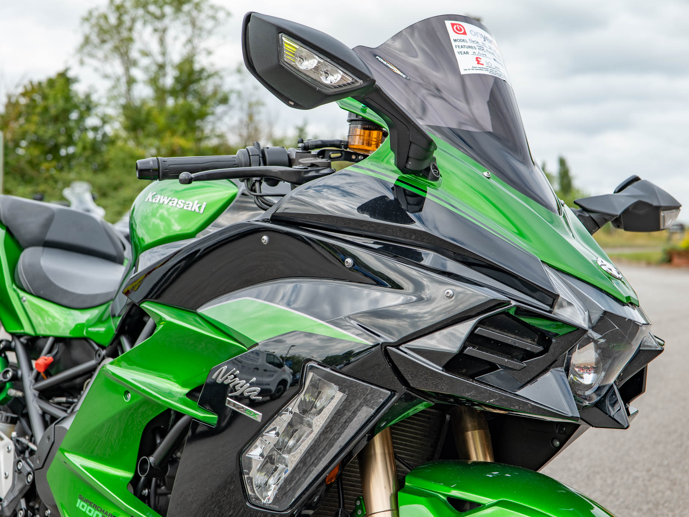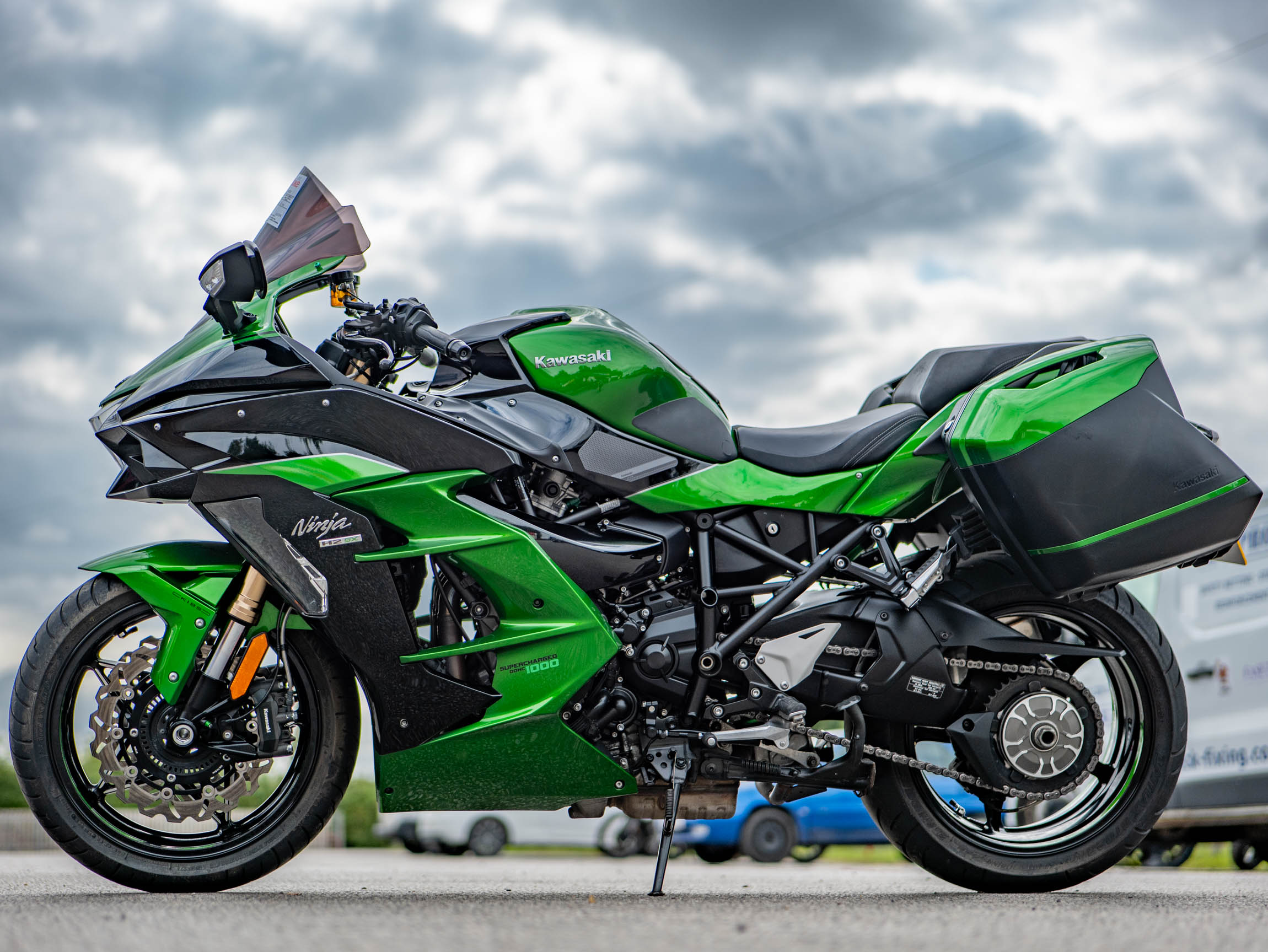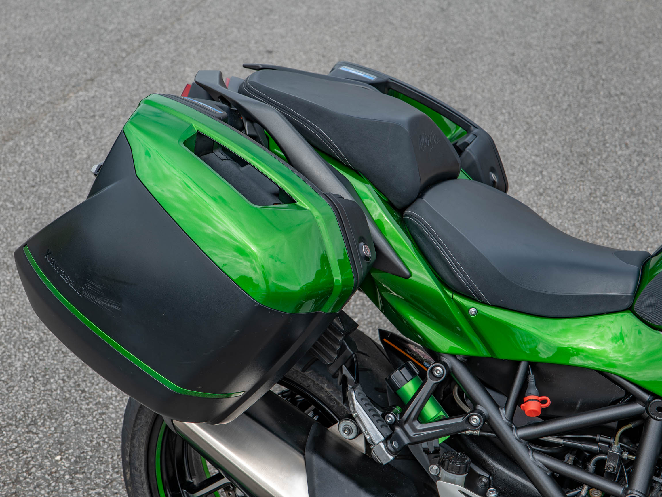 As the highest-spec "SE Tourer" model, this H2 SX is fully equipped for long-distance comfort and advanced performance. It features the incredible KECS (Kawasaki Electronic Control Suspension), which automatically adjusts to deliver a perfect balance of ride quality and handling. Rider comfort is enhanced by heated grips and an adjustable windscreen (not explicitly mentioned but standard). This bike comes with a full touring setup, including genuine panniers and a convenient centre stand. Additional accessories include a dark screen, tank pad, and an integrated USB port for charging on the go.