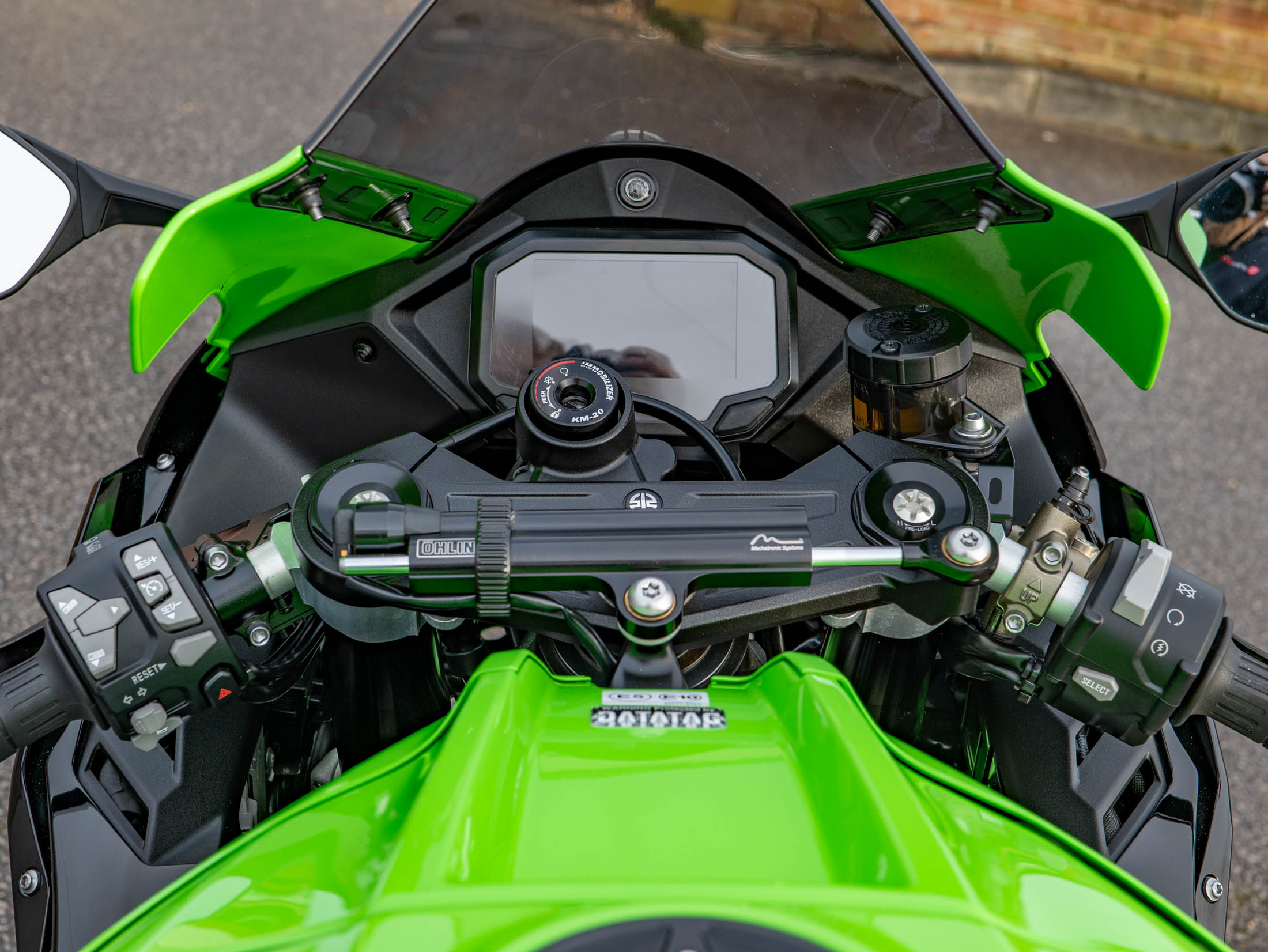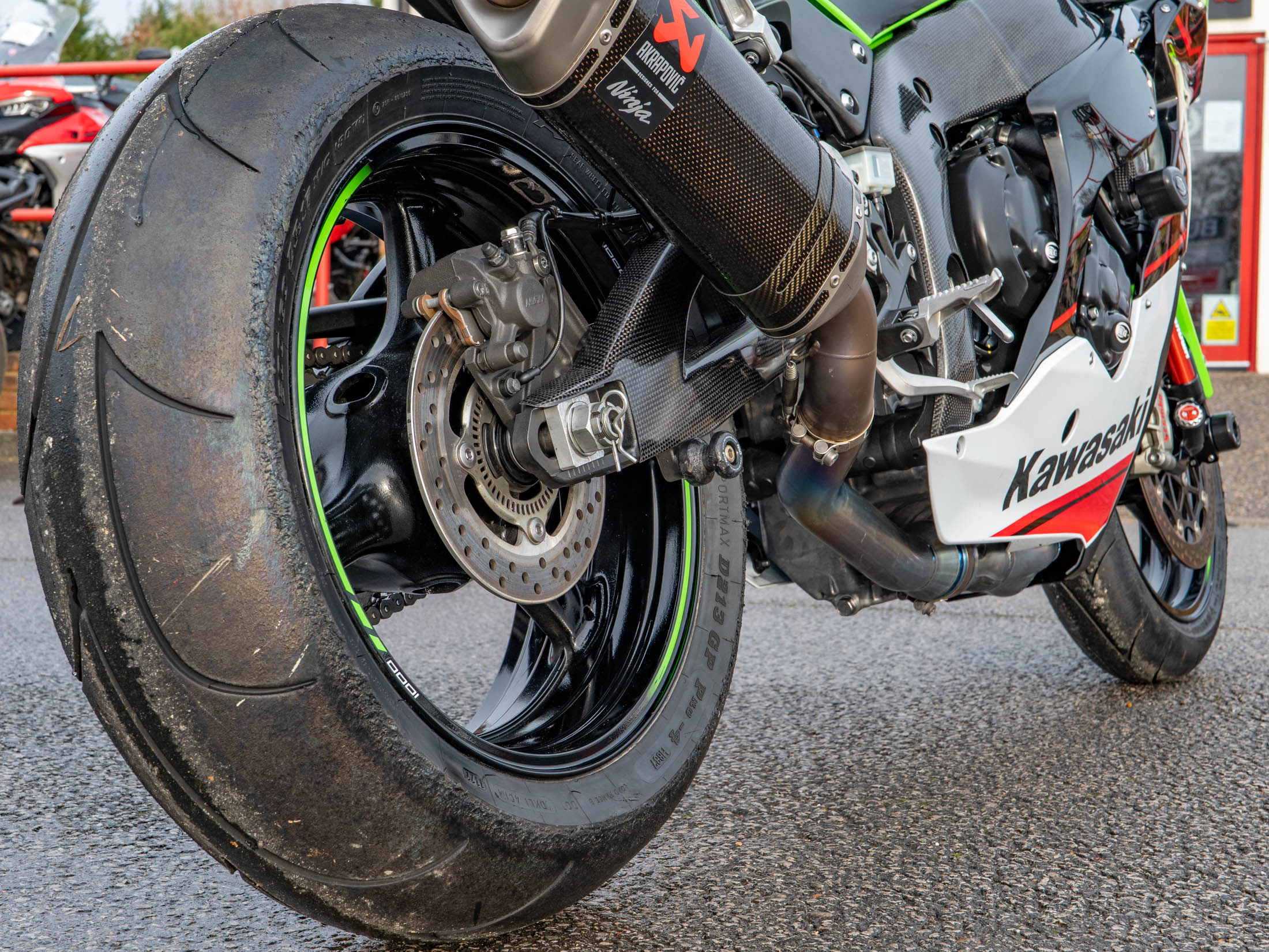 The 2023 Kawasaki Ninja ZX-10R Performance in the iconic KRT Lime Green and Ebony is a masterclass in superbike engineering, boasting a breathtaking 203 hp from its 998cc inline-four engine. This 1-owner example is presented in superb condition with just 2,301 miles on the clock, backed by a Full Service History (FSH). As a Performance edition, it is already a formidable machine, but this specific bike has been significantly enhanced with a premium full Akrapovič exhaust system, delivering a spine-tingling soundtrack and optimised power delivery across the rev range.