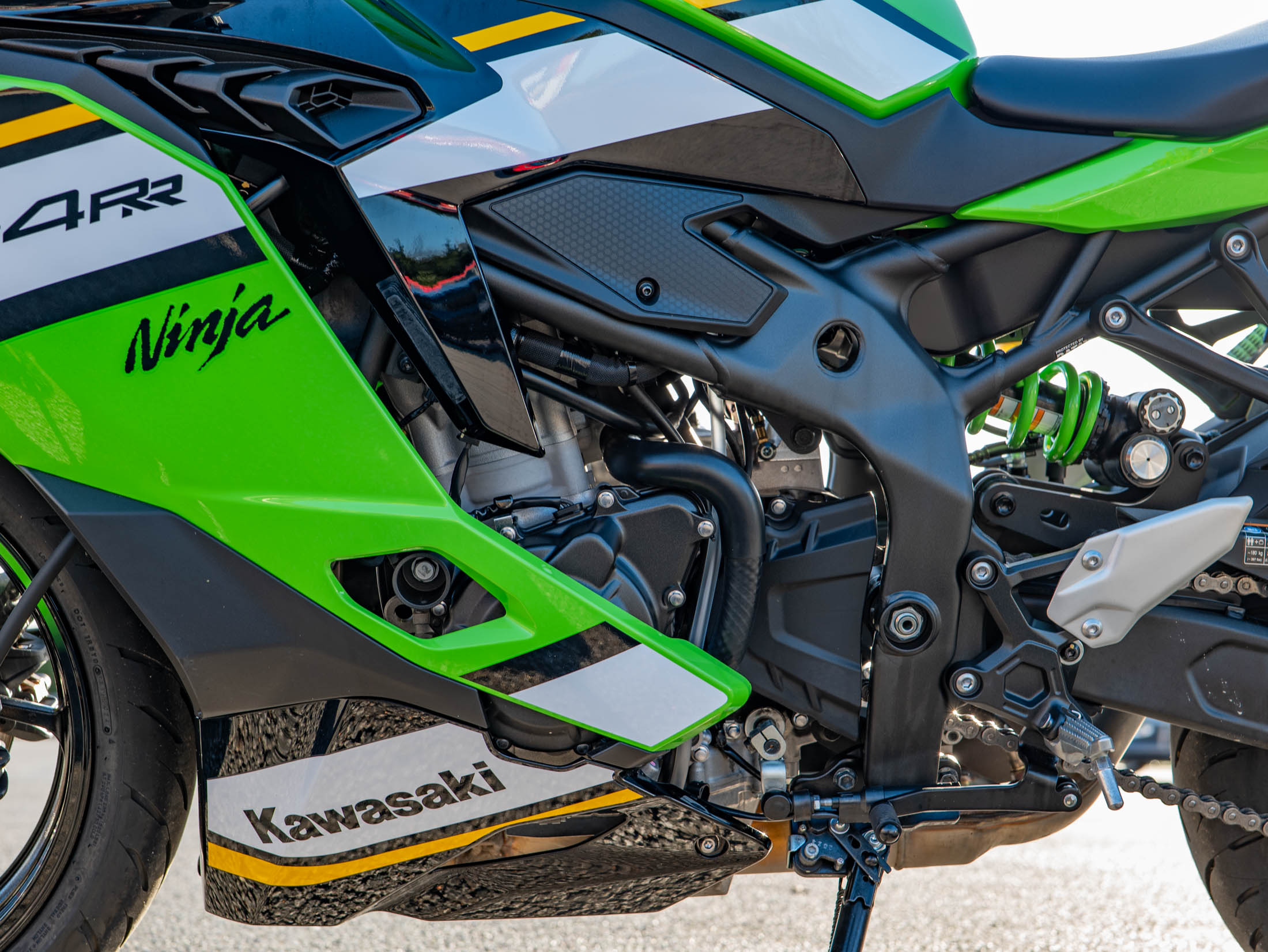 The ZX-4RR is unique in its class, offering a high-revving 399cc inline four-cylinder engine which provides an addictive soundtrack and thrilling top-end power delivery that is unheard of in the small sports bike segment, putting out an impressive 77 hp. The lightweight chassis and high-spec suspension are designed for surgical precision and fantastic cornering capability, allowing you to attack bends with confidence and speed. This machine provides an incredibly engaging and dynamic feel, reminiscent of its larger stablemates, making every single journey feel like a special occasion.