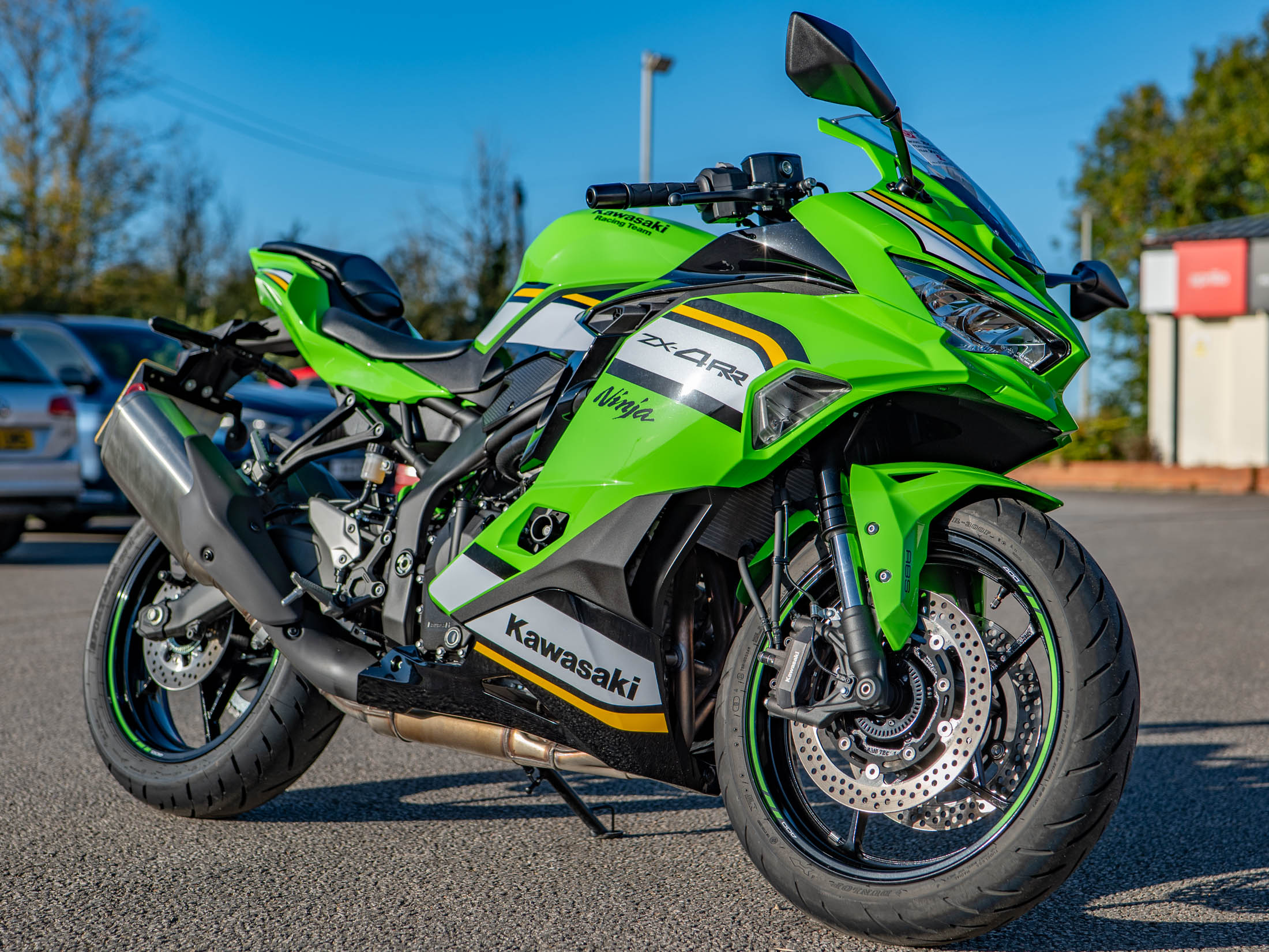 Unlock the thrill of the track with this outstanding ex-demonstrator Kawasaki Ninja ZX-4RR, a pure sports bike experience now available at On Yer Bike, your official Kawasaki dealer near Aylesbury, UK. This is an exceptional opportunity to acquire a virtually brand-new machine that has only covered 287 miles, many of which were running-in miles completed carefully by a Kawasaki brand manager. This specific Ninja ZX-4RR is presented in the iconic Kawasaki Green and boasts the highly sought-after features of a Quickshifter and multiple Riding Modes, delivering a truly premium and exhilarating ride straight out of the box.