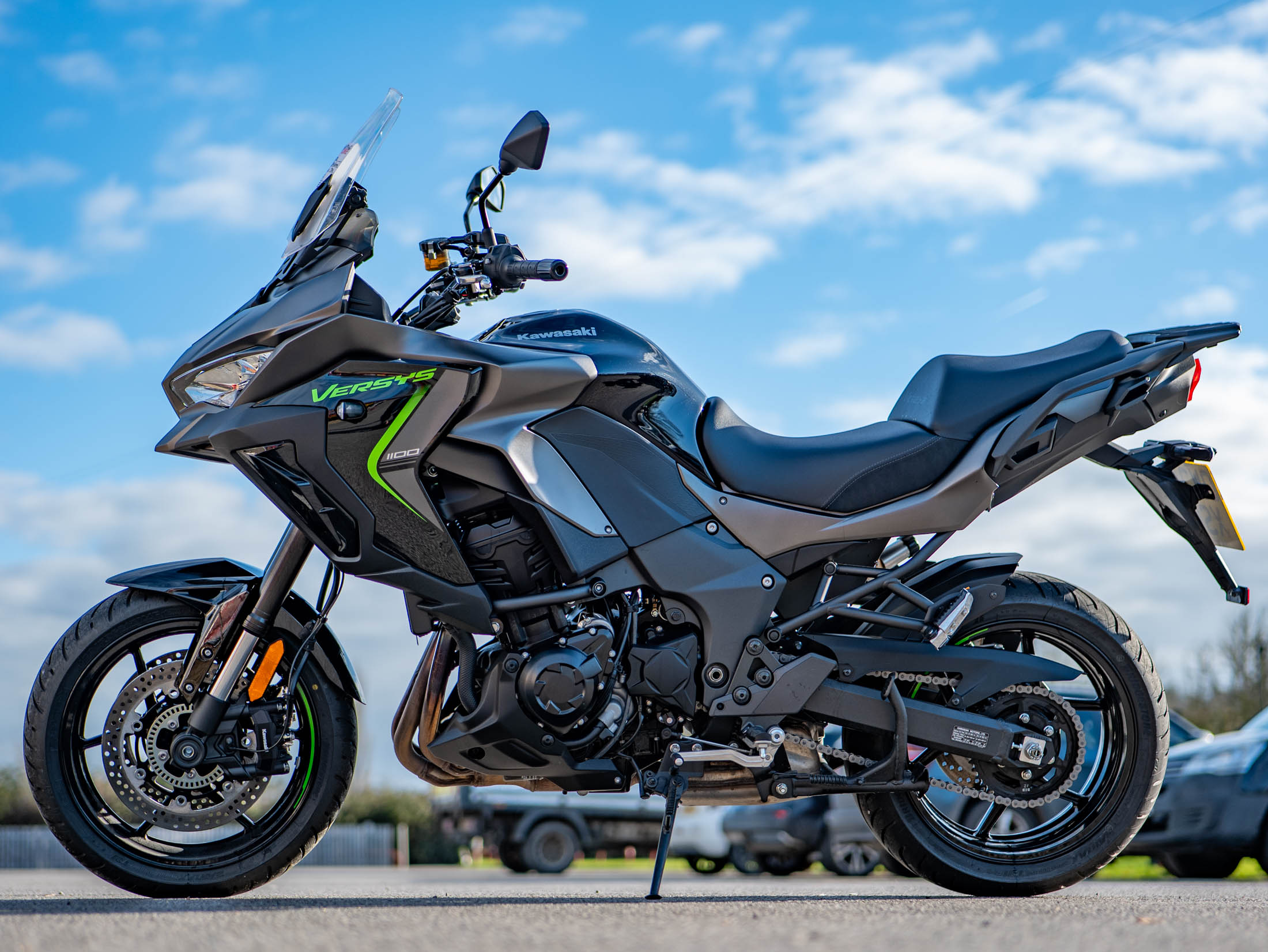 Maximise your touring capability by adding the optional, dealer-fitted touring kit for only 900 extra. This kit includes 2 x high-capacity Panniers with inner liners, Hand Covers for weather protection, a custom Tank Pad, and a large touring screen. This super low mileage Versys 1100 is available to view at On Yer Bike, your official dealer for Kawasaki, Aprilia, Moto Guzzi, and Ducati, located near Aylesbury, UK. Contact our dedicated sales team today to secure this brilliant machine and ask about our efficient delivery service across mainland UK.