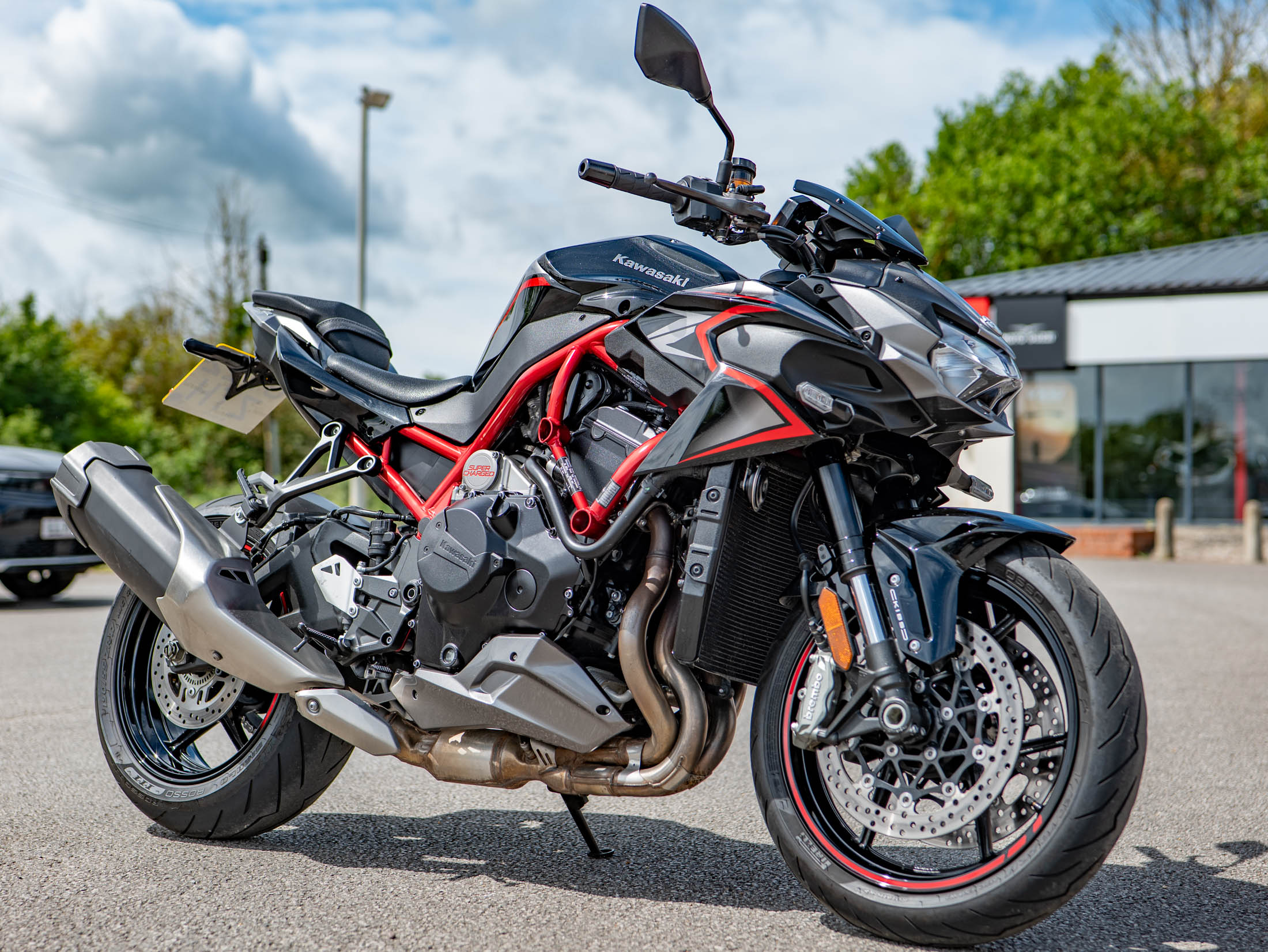 Unleash raw power and sophisticated control with this superb Used 2022 22 Reg Kawasaki Z H2, presented in its menacing Black / Grey / Red colour scheme. This incredible hypernaked machine has covered a mere 3,936 miles and comes with the significant advantage of KMUK Manufacturer Warranty until l... READ MORE