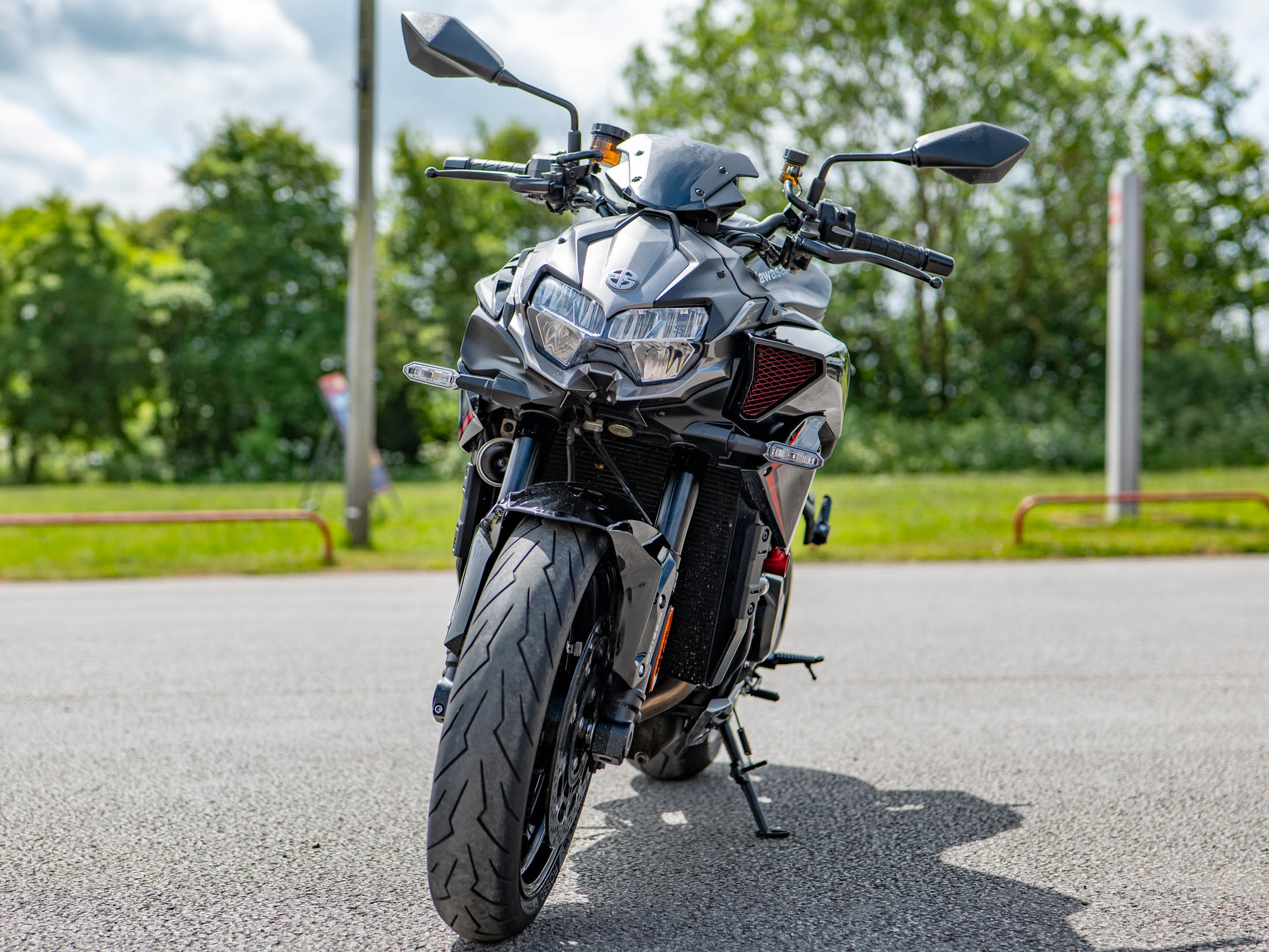 The Z H2 is packed with a formidable array of advanced electronics: Kawasaki Traction Control (KTRC), Kawasaki Quick Shifter (KQS) for seamless up and down changes, Kawasaki Cornering Management Function (KCMF), and multiple Integrated Riding Modes (Sport, Road, Rain, and a customisable Rider mode). Enjoy effortless long journeys thanks to Electronic Cruise Control, and stay fully informed with the vibrant full-colour TFT instrumentation that boasts smartphone connectivity via Kawasaki's Rideology the App. With its powerful ABS braking system, Assist & Slipper Clutch, and distinctive Sugomi styling, this low-mileage Z H2 is in excellent condition and ready to thrill its next owner.