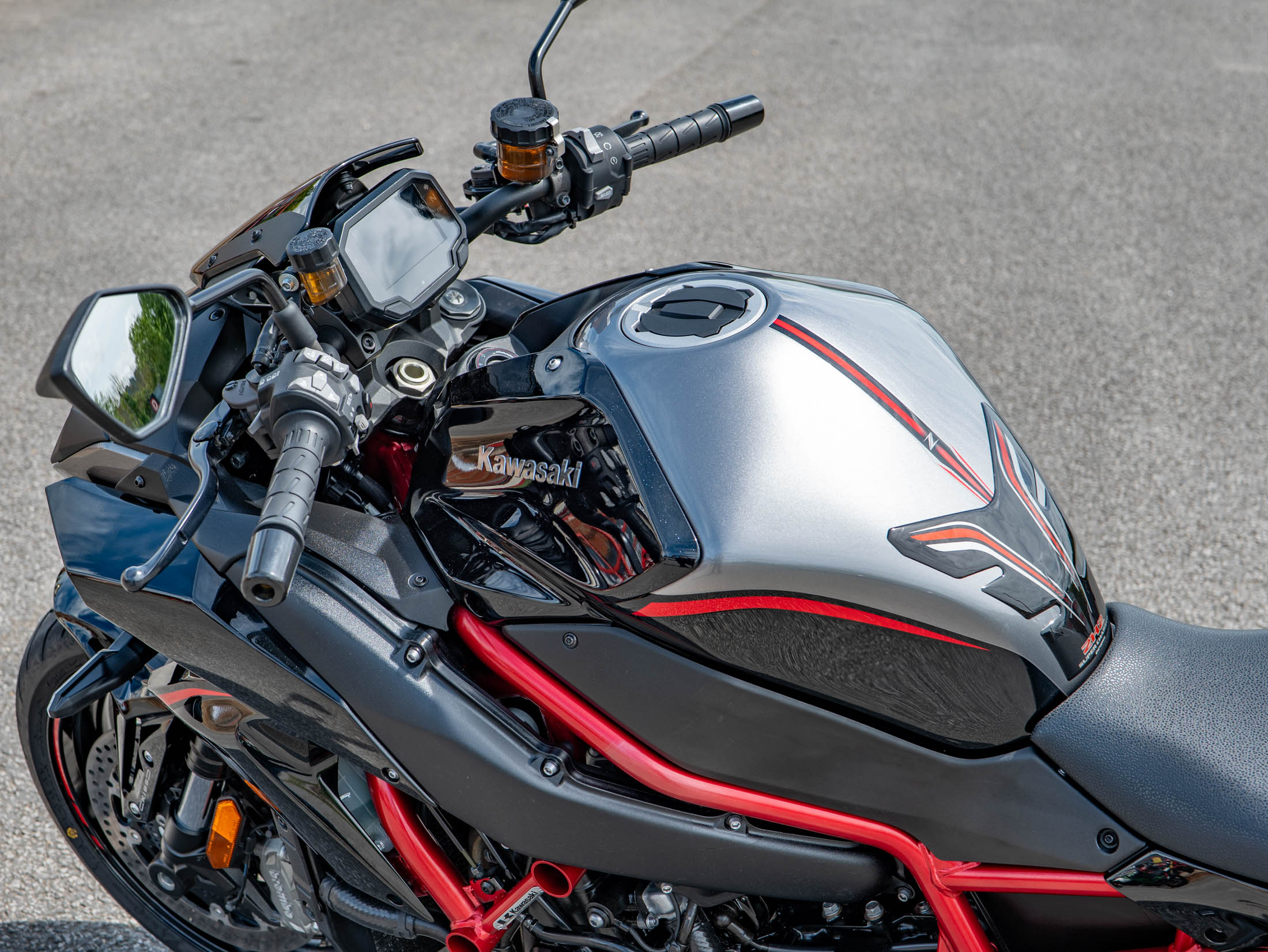 At its heart beats the astonishing 998cc Supercharged inline-four engine, a powerhouse delivering a breathtaking 200 hp (147.1 kW) for mind-bending acceleration and an unforgettable riding experience. This example is further enhanced with a sleek Tail Tidy, cleaning up the aggressive rear end.