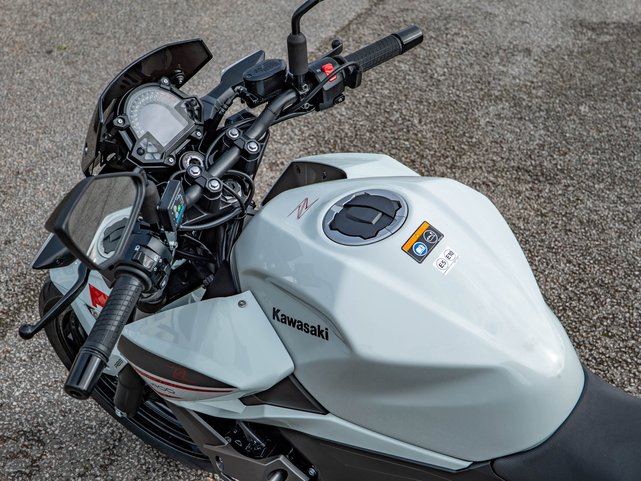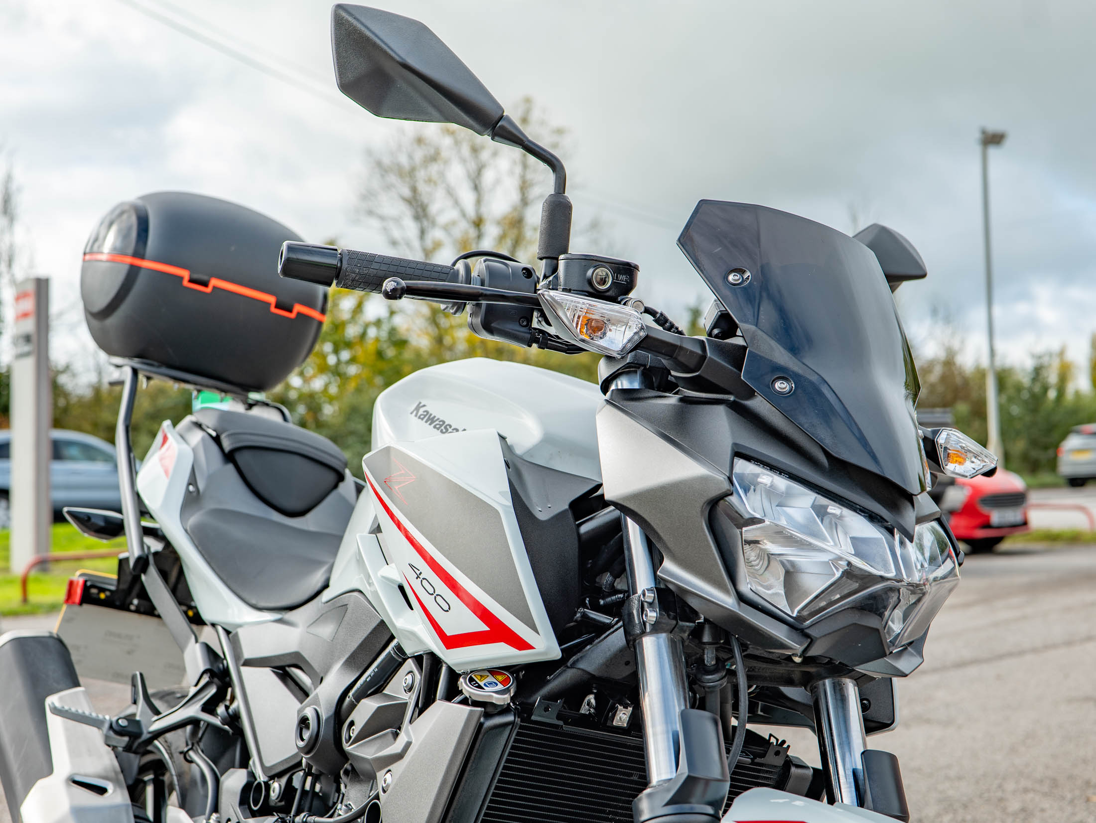 The Z400 is the ultimate lightweight Supernaked machine, perfectly blending thrilling performance with every day practicality. Its 399cc parallel twin engine provides a punchy 45 horsepower, delivered through a smooth six-speed manual gearbox. The power is highly accessible and predictable, making it a fantastic choice for A2 licence holders, as well as experienced riders seeking an agile and fun urban commuter or weekend back-road weapon. With its lightweight trellis frame and excellent chassis geometry, the Z400 is renowned for its light, natural, and confidence-inspiring handling. Maneuvering in traffic is effortless, and the bike remains stable and composed when the roads open up. It truly feels like an extension of the rider.