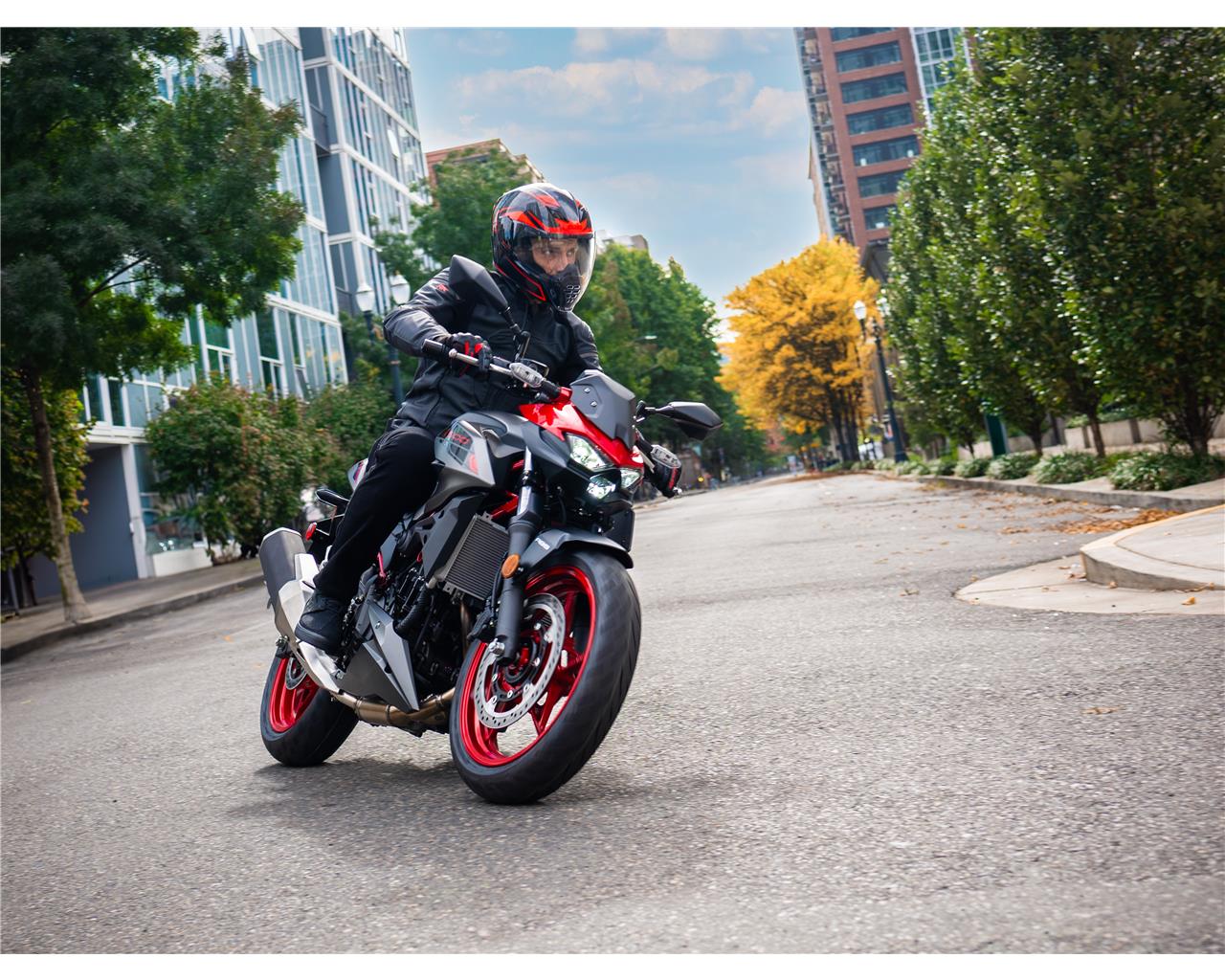 At its core lies Kawasaki's responsive 451cc liquid-cooled, 4-stroke parallel twin engine, producing a lively 45 hp (33.4 kW) at 9,000 rpm. This smooth and engaging powerplant offers robust torque for spirited urban riding and confident motorway stretches, all managed through a precise 6-speed manual transmission with an Assist & Slipper Clutch for light lever action.