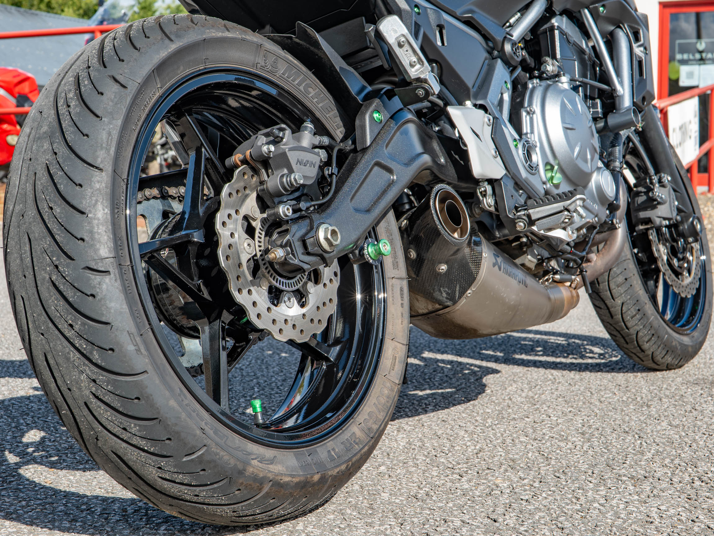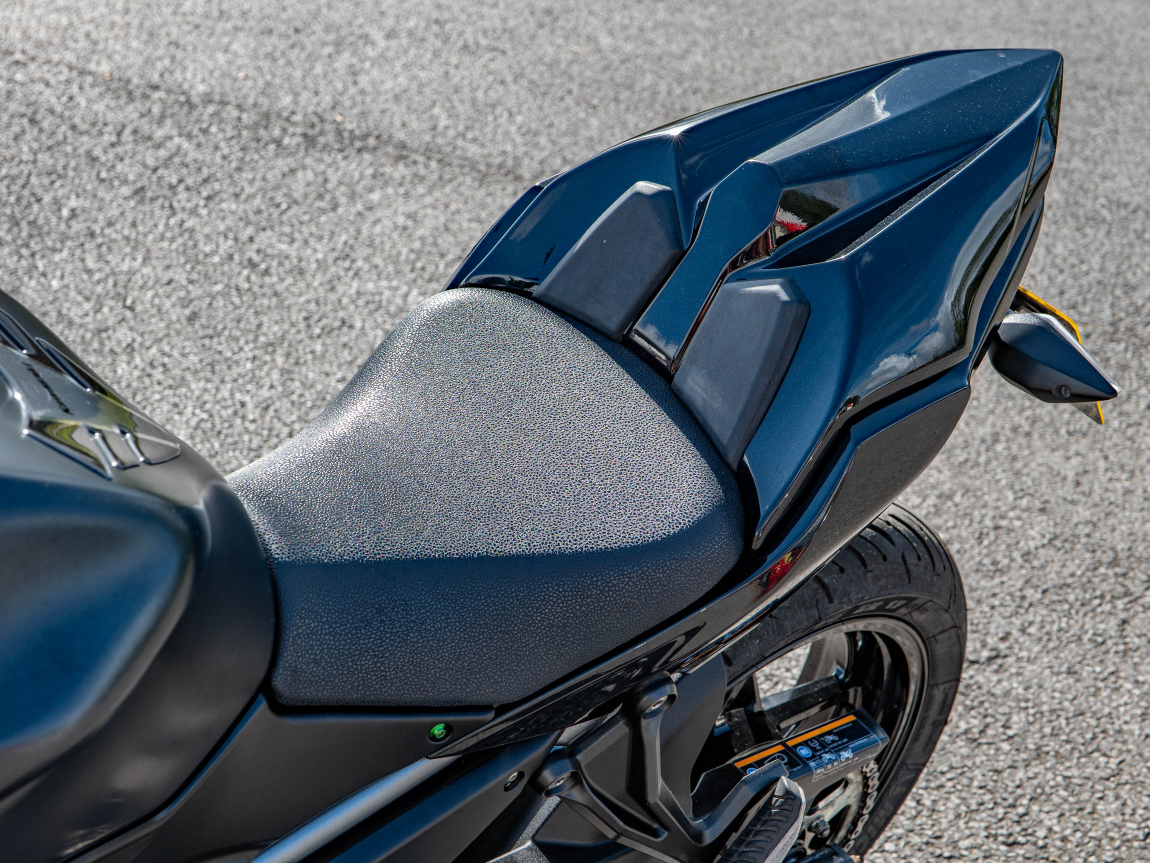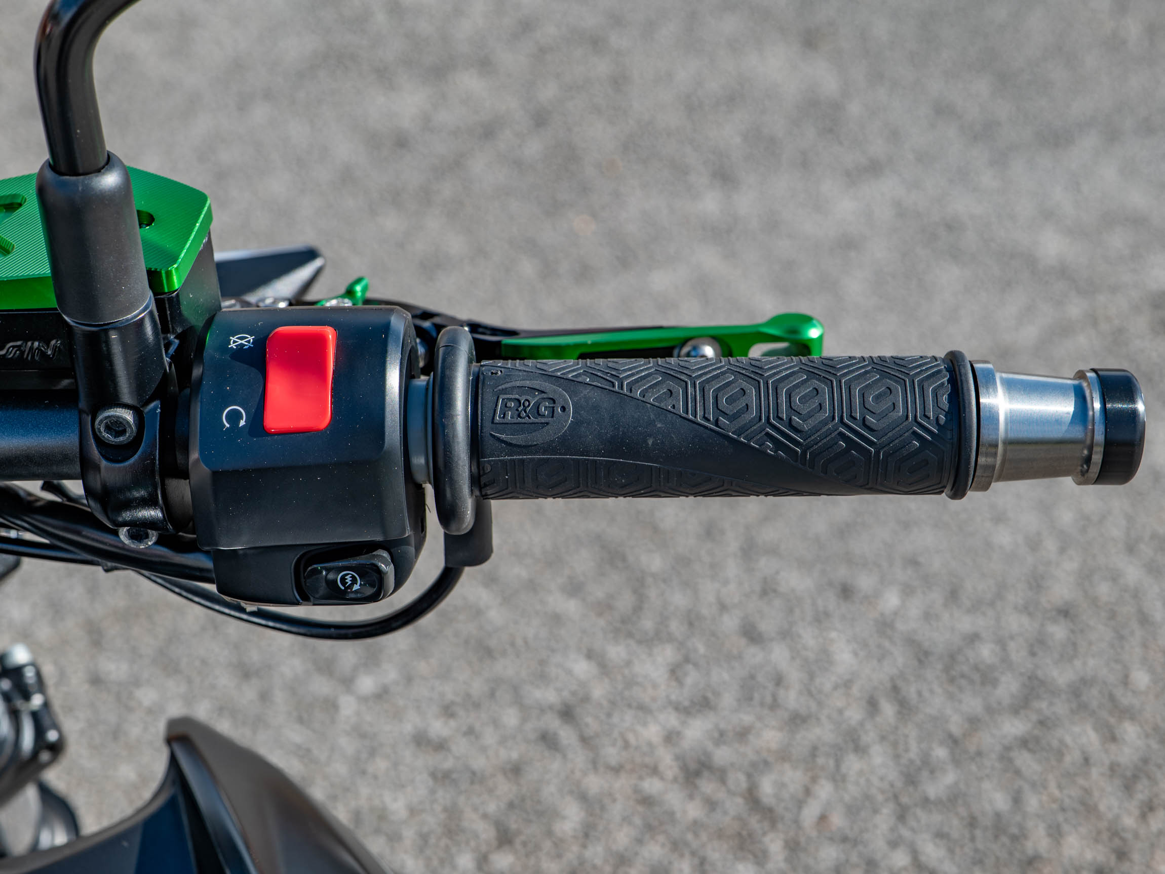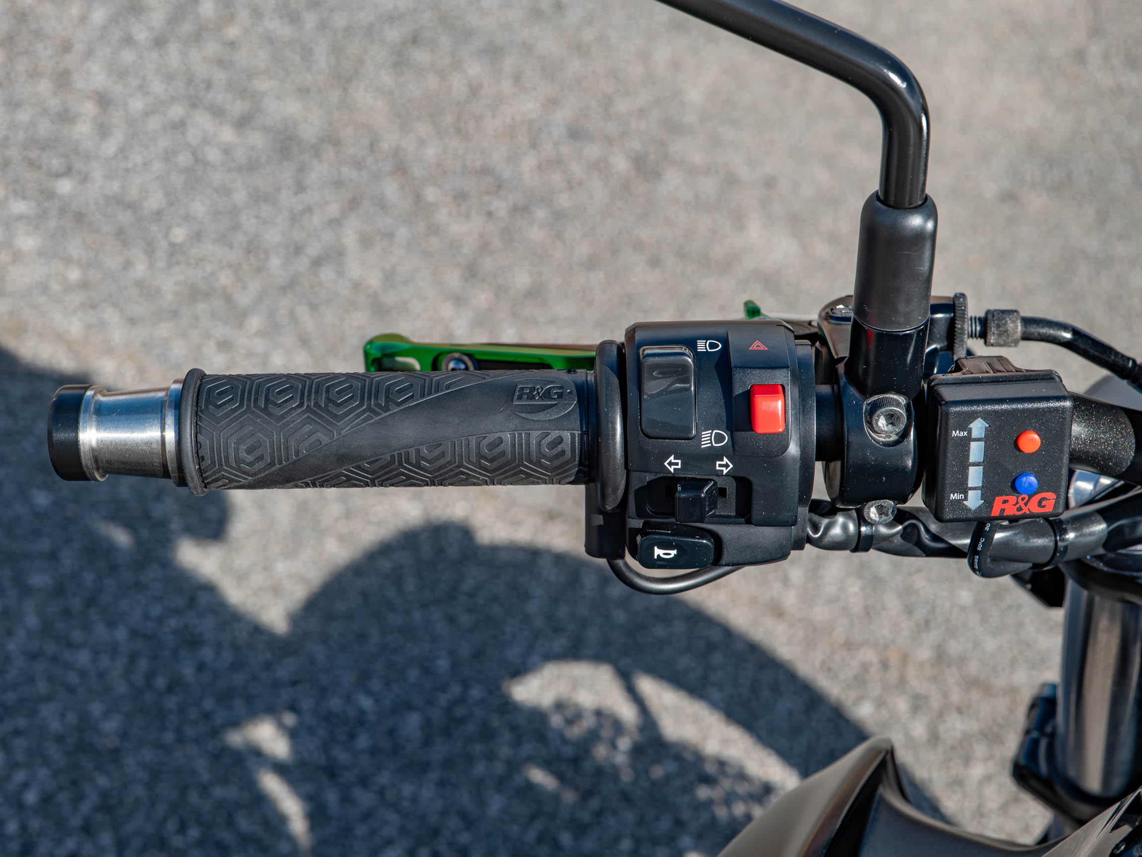 The "Performance" edition comes with a number of key upgrades as standard, most notably a full Akrapovic exhaust system. This premium exhaust not only reduces weight but also gives the bike a much richer and more aggressive sound, perfectly complementing its "Sugomi" inspired styling. This specific bike has also been enhanced with a screen for improved wind protection, R&G heated grips for comfortable riding in all conditions, a stylish seat cowl, and a pillion seat is also included. The bike's overall condition is superb, a true testament to its careful ownership and the quality of the parts fitted.