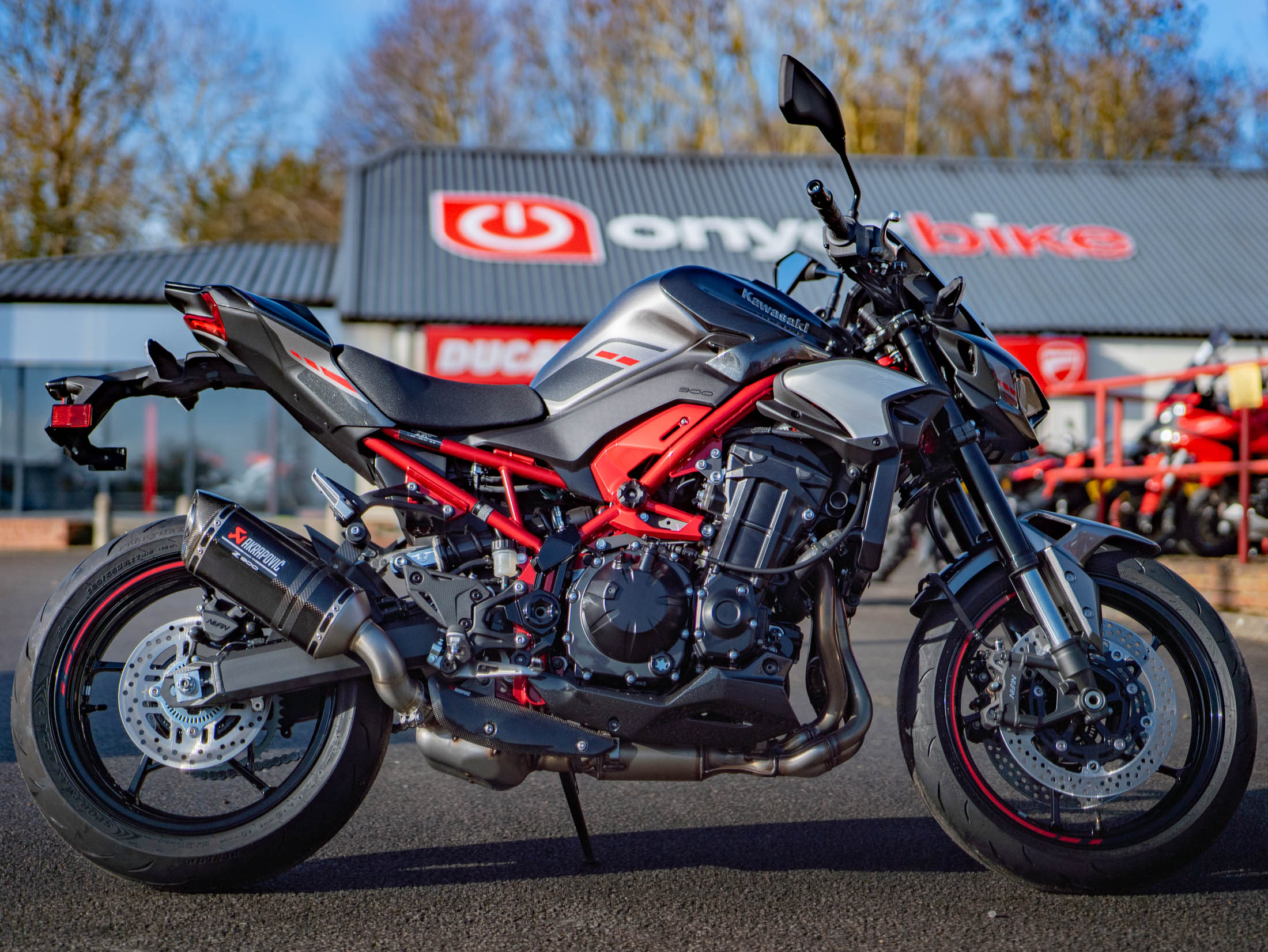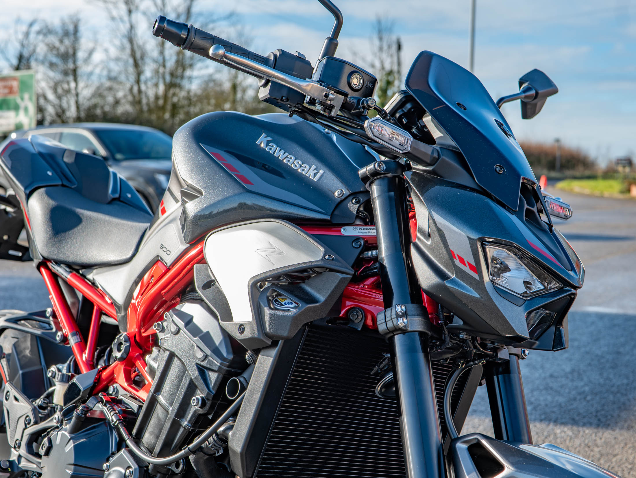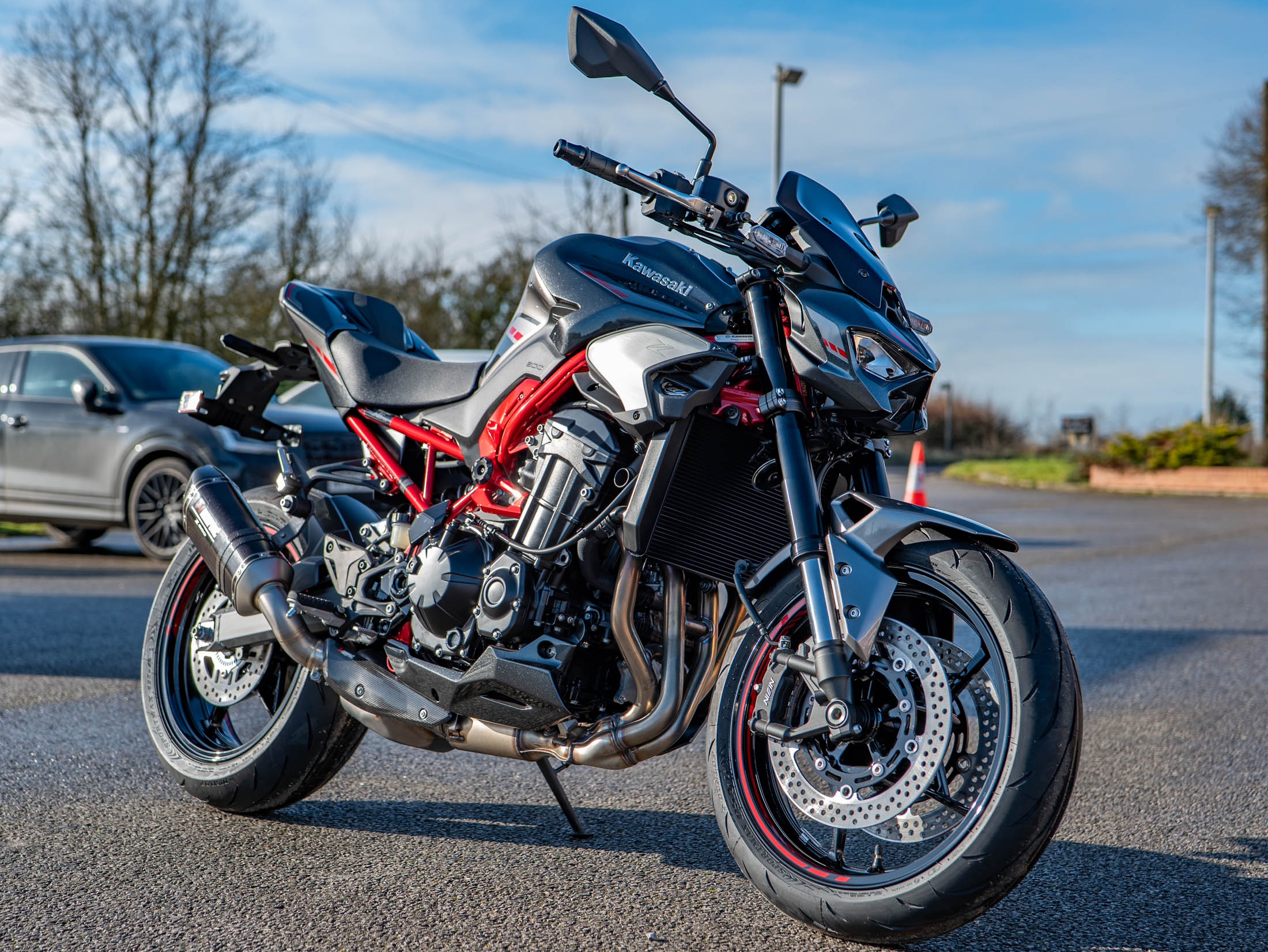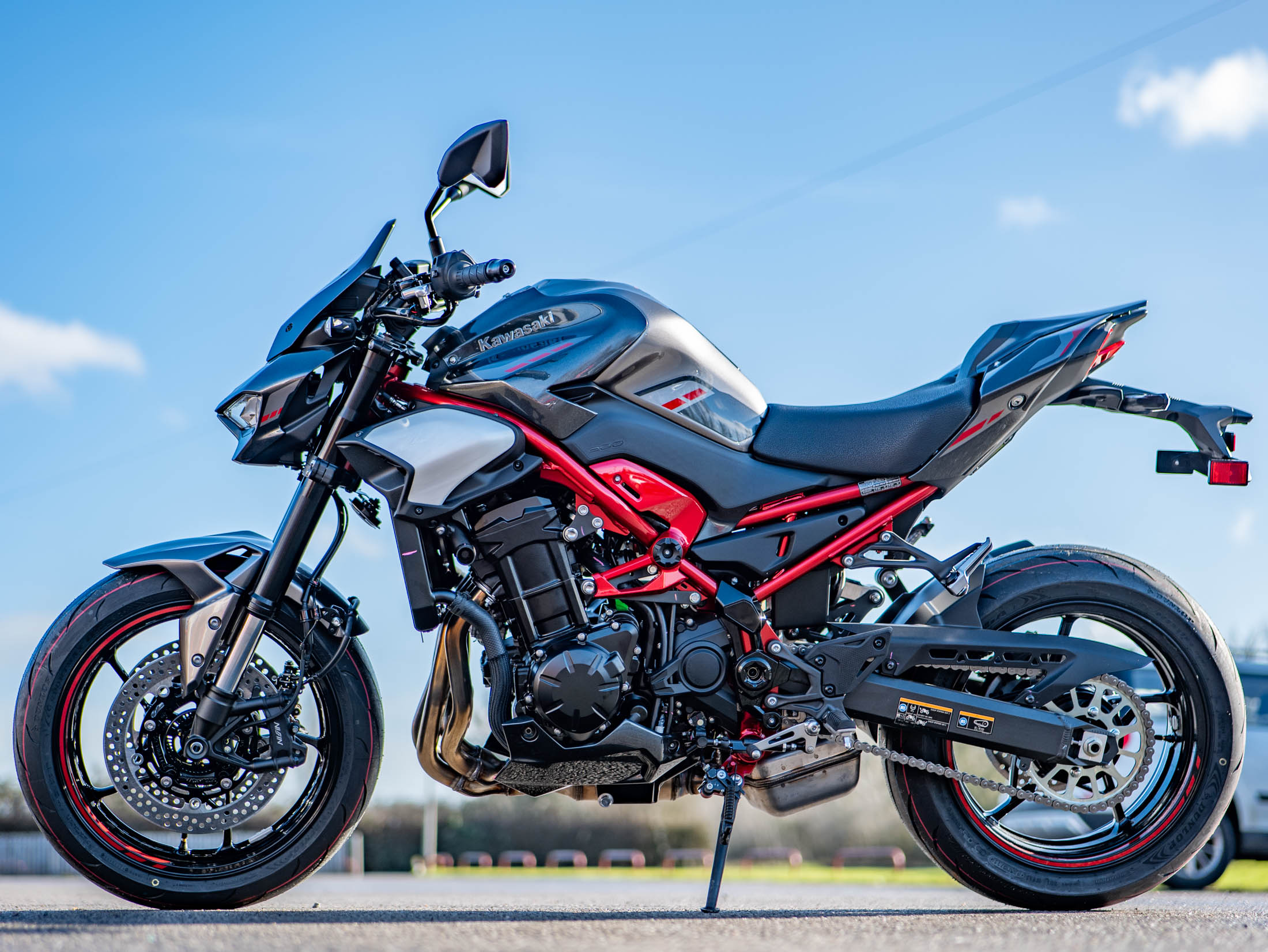 This brand-new 2025 Z900 Performance is finished in the striking Metallic Carbon Gray and Metallic Phantom Silver with Candy Persimmon Red highlights. The Z900 Performance Edition includes the full suite of genuine Kawasaki accessories, but are offering it at the exact same price as the standard model. It remains the ultimate choice for riders seeking a balanced, high-performance four-cylinder streetfighter with all the premium extras already fitted.