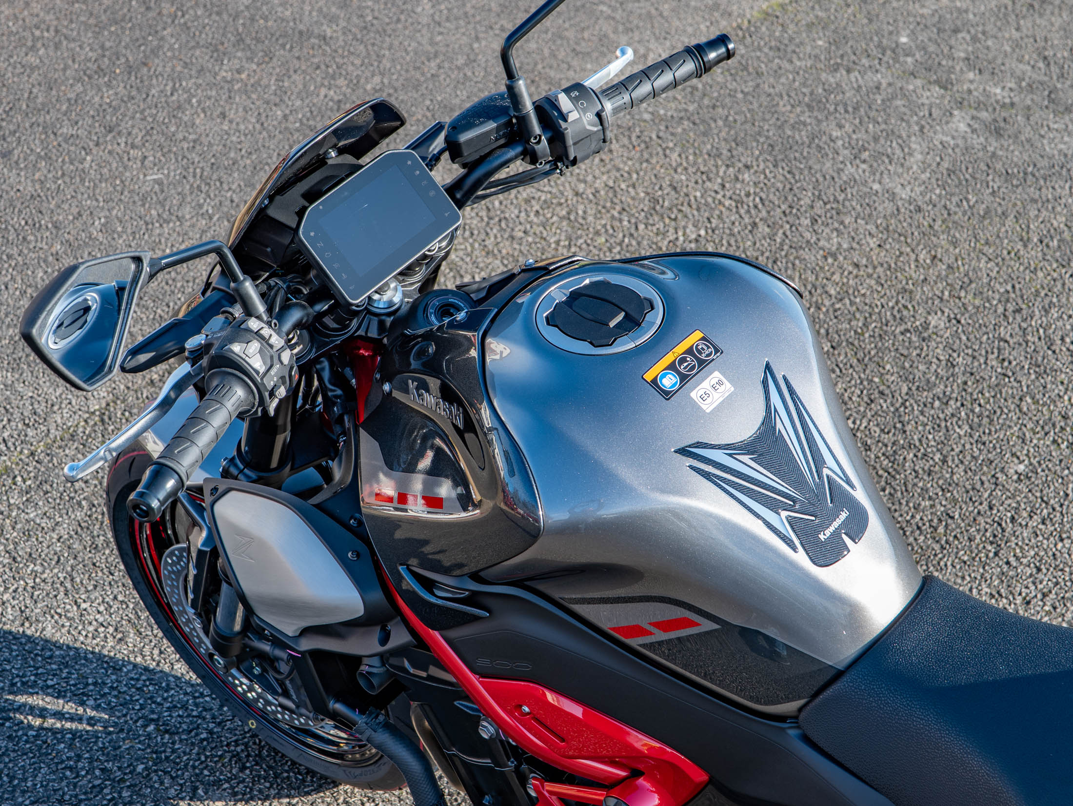 The "Performance" upgrade on this 2025 model adds a significant level of aggression and functionality. At the rear, the bike features a carbon fibre Akrapovic sports exhaust silencer, which not only saves weight but provides a deeper, more visceral soundtrack to the 948cc inline-four engine. The sporty silhouette is further enhanced by a colour-coded pillion seat cowl and a large smoke-tinted fly screen for improved wind protection. To ensure the bike stays in showroom condition, we have also fitted a genuine Kawasaki tank pad and a protective screen protector for the new TFT dashboard. This is a rare opportunity to get over a £900 worth of genuine performance parts included in the standard RRP.
