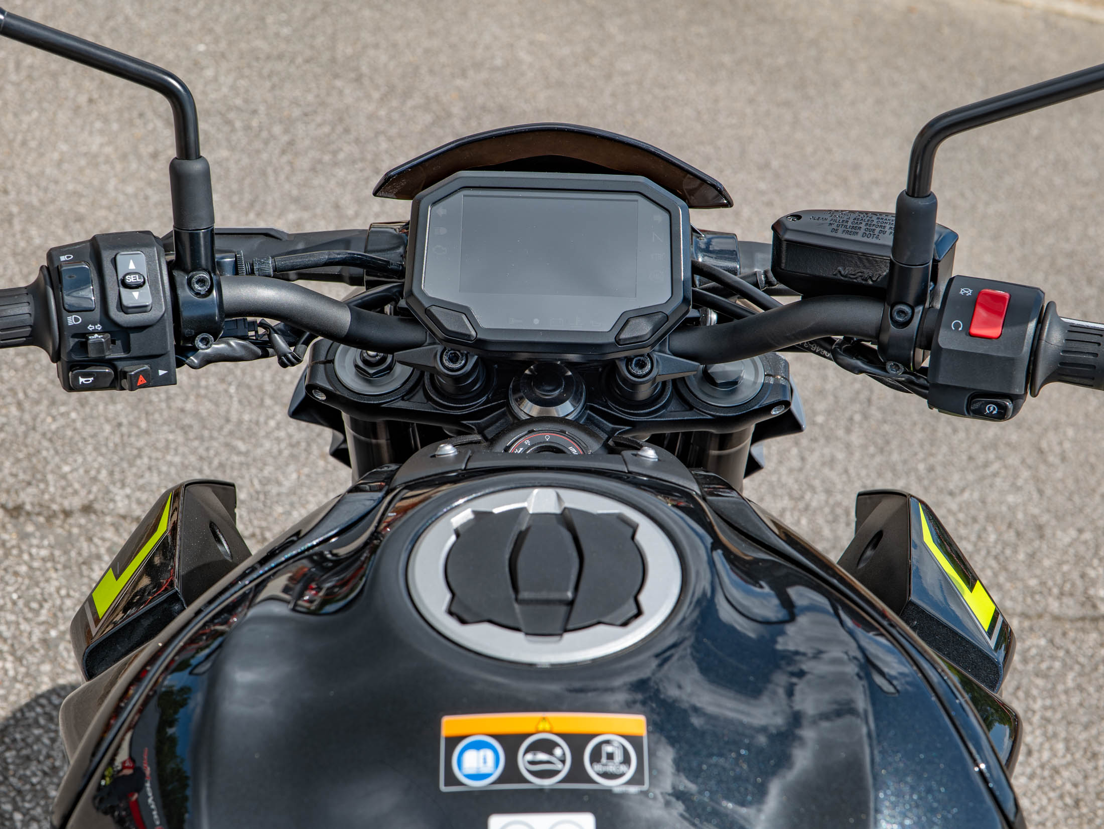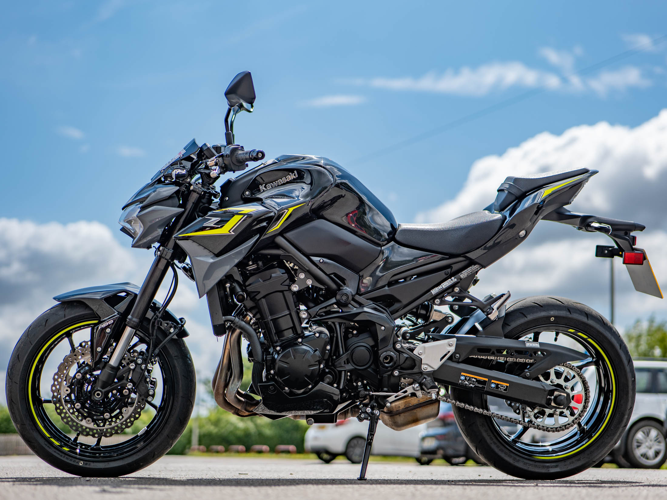 The Z900 is packed with modern technology to enhance your ride. It features multi-mode Kawasaki Traction Control (KTRC) and selectable Power Modes (Full/Low), allowing riders to tailor the bike's response to their preference and conditions. These settings are easily managed through Integrated Riding Modes (Sport, Road, Rain, and a customisable Rider mode). Safety is further enhanced by Kawasaki Intelligent anti-lock Brake System (KIBS) with ABS. The rider interface is a crisp 4.3-inch full-colour TFT display with smartphone connectivity via "RIDEOLOGY THE APP", providing comprehensive information at a glance. Full LED lighting throughout ensures excellent visibility.