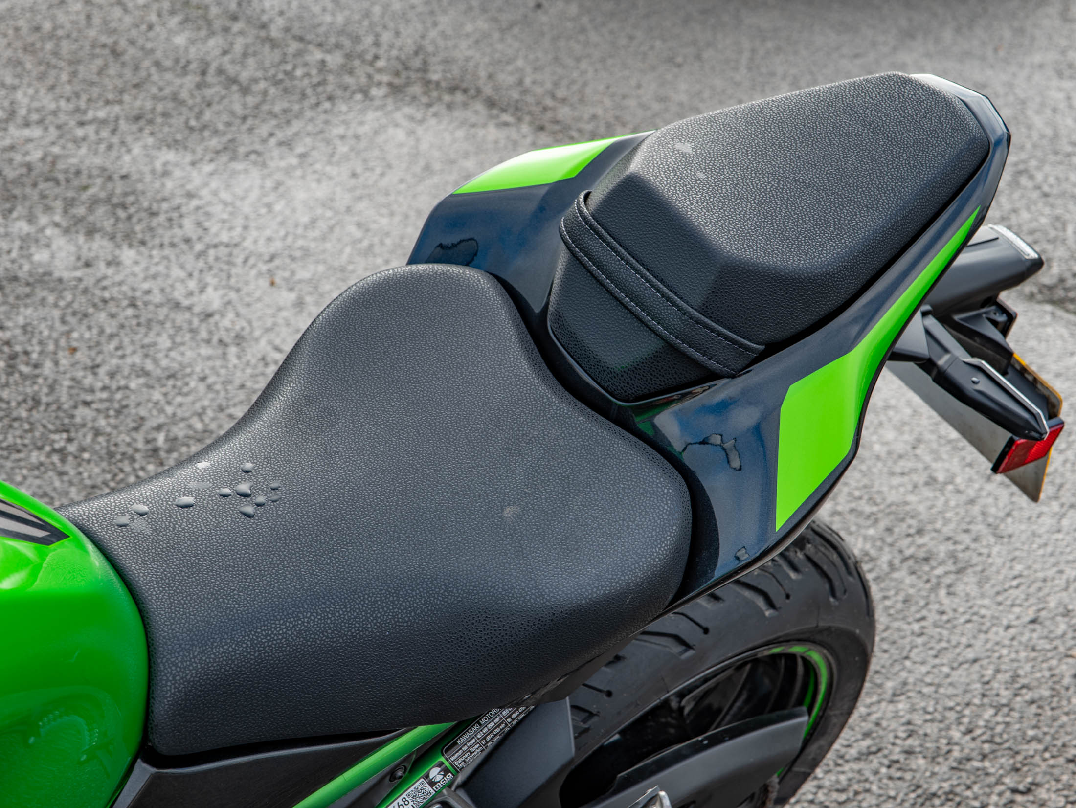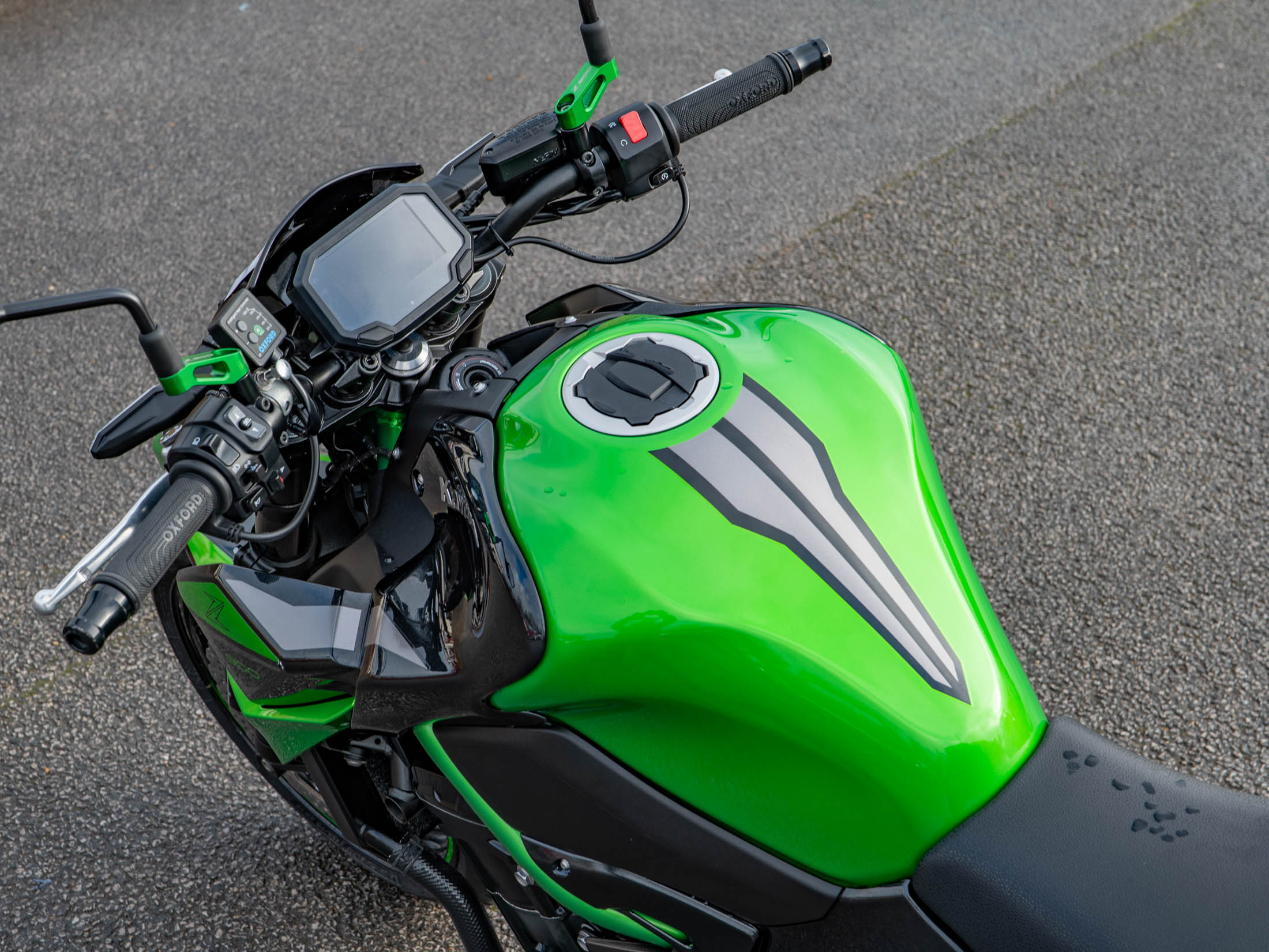 This specific example is equipped for year-round riding comfort with the addition of heated grips, making those chilly morning starts much more manageable. The bike is packed with modern technology, including a crisp TFT colour instrument display that features Smartphone Connectivity via the Rideology app. Safety is paramount, with a comprehensive electronics suite that includes Kawasaki Traction Control (KTRC), selectable Riding Modes, and a sophisticated ABS system. The bike also benefits from DataTag security and an engine immobiliser for added peace of mind.