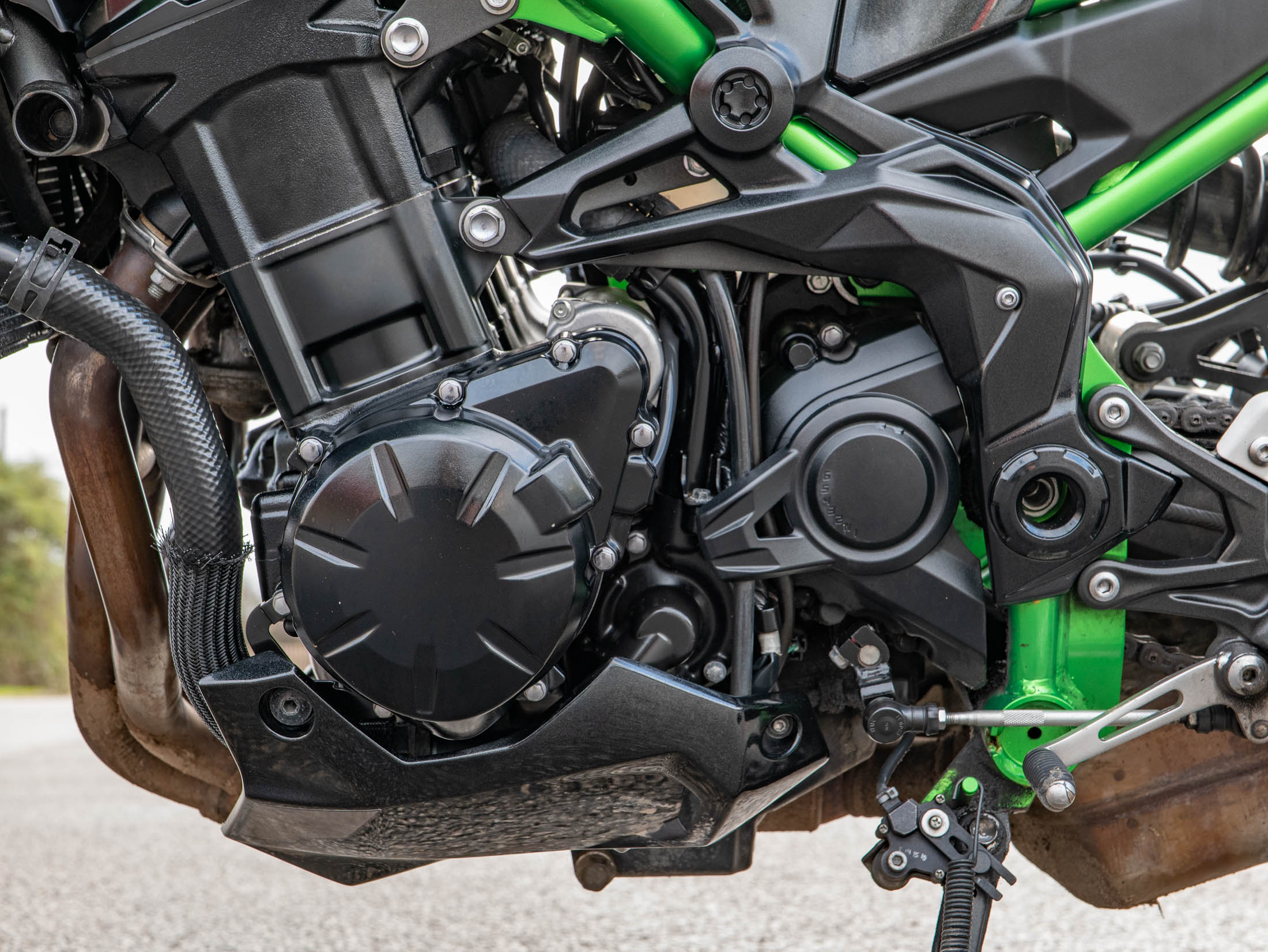 The Z900 is renowned for its exhilarating 948cc inline-four engine, which produces a muscular 123.3 hp. The power delivery is characterised by a strong mid-range pull and a smooth, linear climb to the redline, making it as capable of relaxed commuting as it is of spirited Sunday morning rides. The lightweight trellis frame provides agile, predictable handling, while the slipper clutch ensures smooth downshifts during aggressive riding. This model features a distinct intake note—tuned by Kawasaki engineers specifically to enhance the rider's auditory experience during acceleration.