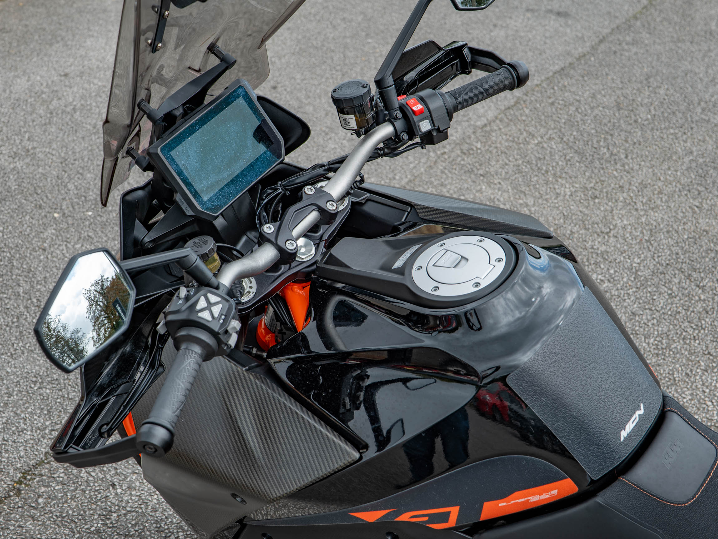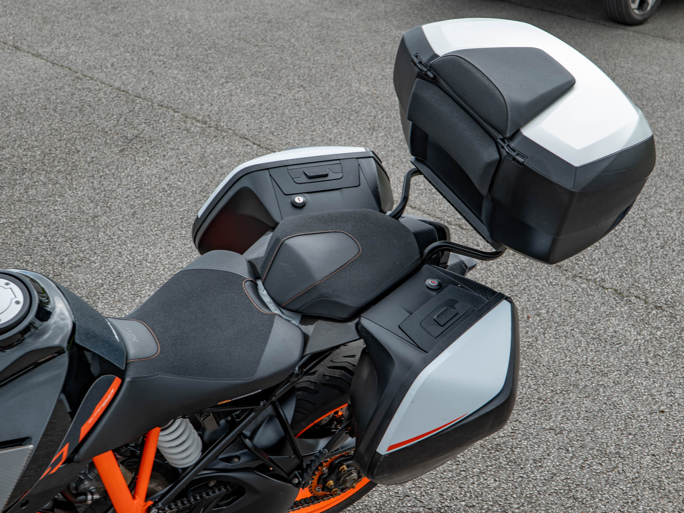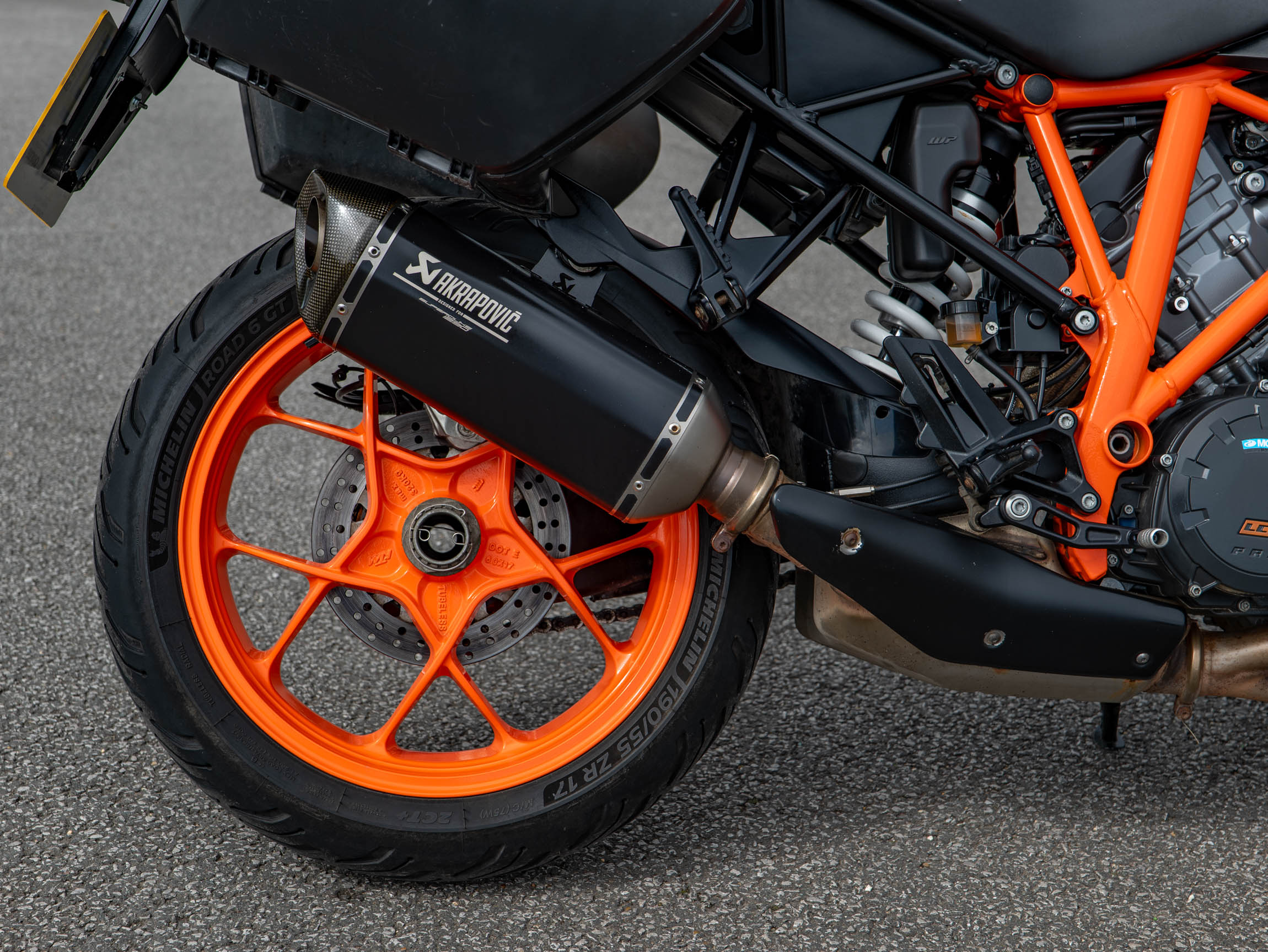 At its core is a powerful 1301cc V-twin engine that produces an impressive 175 hp, offering immense power for both long-distance touring and spirited riding. This bike has been upgraded with an Akrapovič slip-on exhaust, which not only improves performance but also provides a thrilling soundtrack. The original exhaust is also included with the bike. For added comfort, the bike has both heated grips and a heated seat, making it ideal for all-weather riding. It also features a top box and panniers for substantial luggage capacity. An R&G radiator guard has been fitted to protect the bike, while a tank pad and hand guards complete the package.