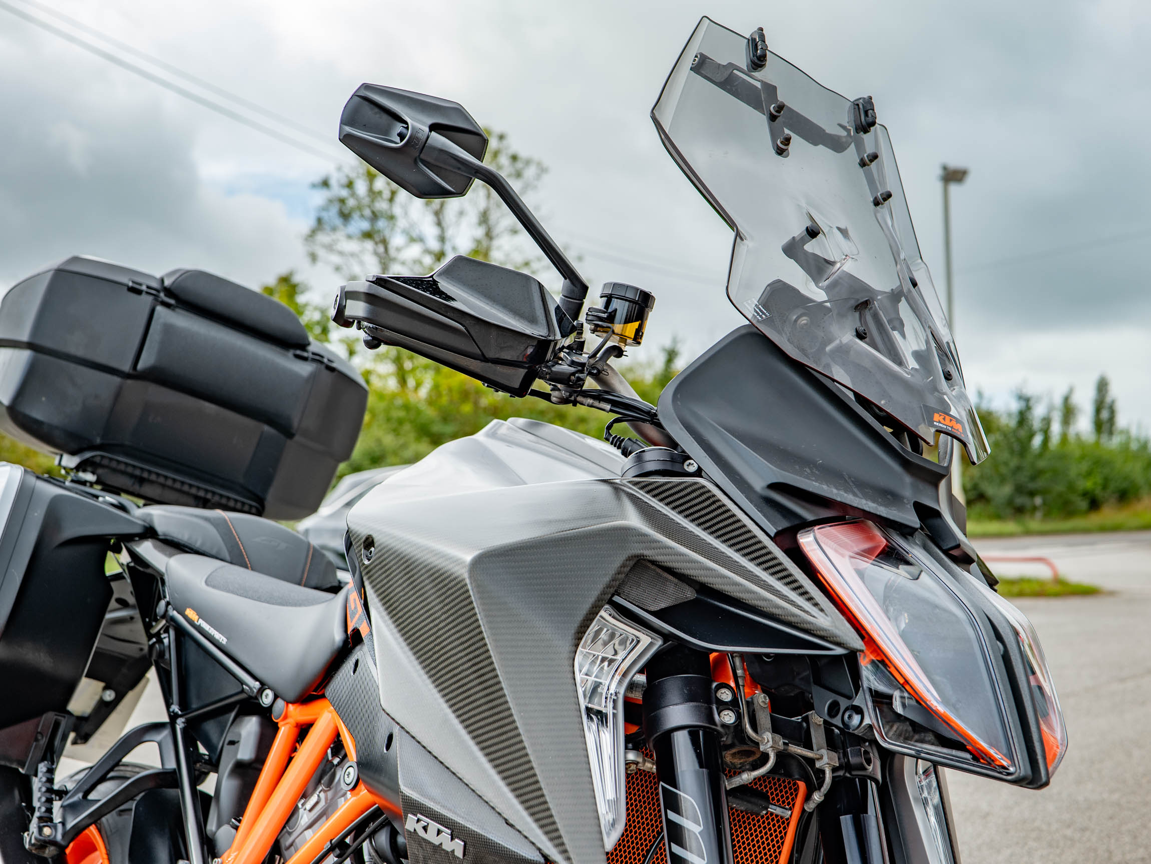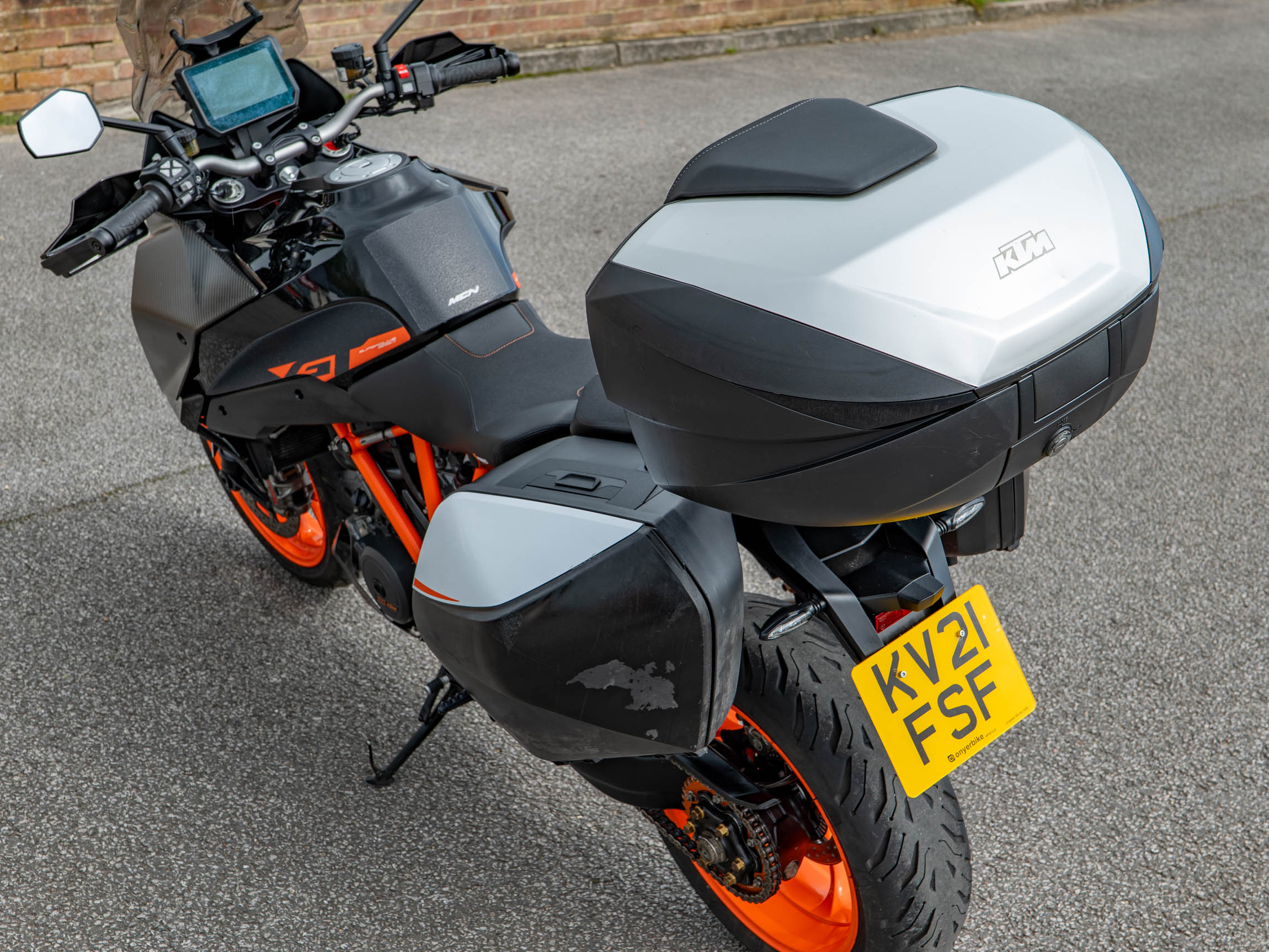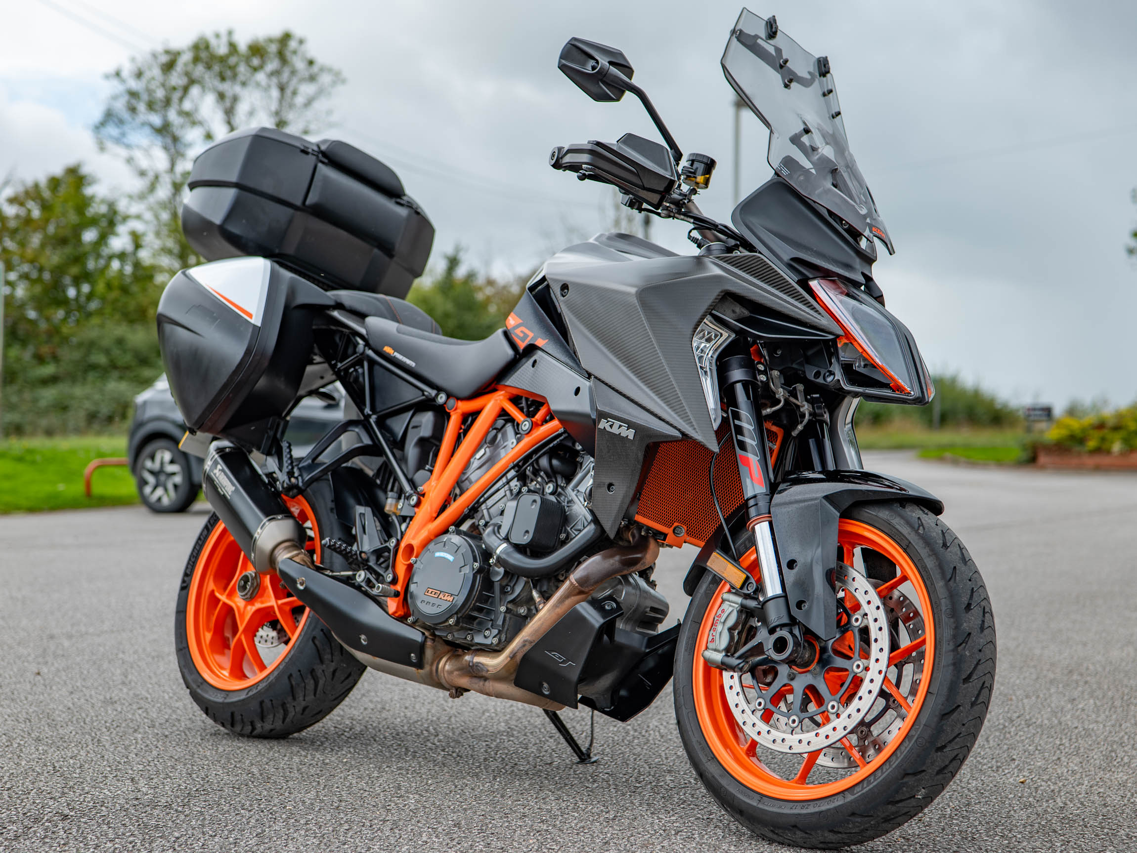 This is an excellent example of a 2021 KTM 1290 Super Duke GT, a high-performance sports tourer in fantastic condition. With 20,000 miles on the clock, this bike has been well-used and meticulously maintained, as confirmed by its full KTM dealer service history (FDSH). This mileage is a testament to the bike's capability and reliability, and the extensive list of added accessories enhances its touring credentials.
