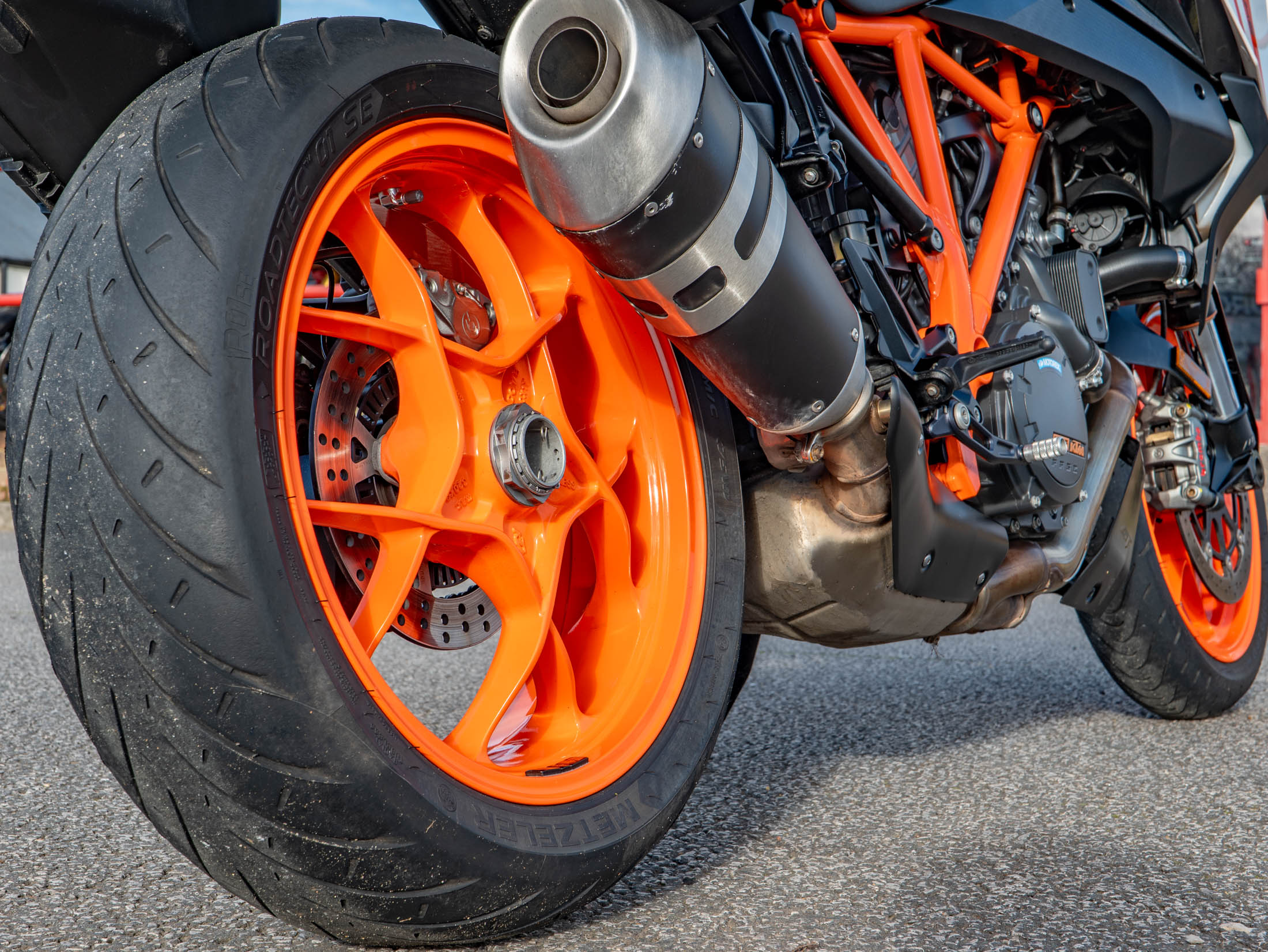 The Super Duke GT is driven by KTM's massive, liquid-cooled 1301cc LC8 V-Twin engine, which unleashes an astounding 175 hp through a precise six-speed manual transmission. This engine provides phenomenal, accessible torque from low down and blistering top-end power, making every journey, whether a quick commute or a cross-continental tour, incredibly thrilling. The bike is built around a lightweight trellis frame and features semi-active WP suspension for exceptional handling and comfort.